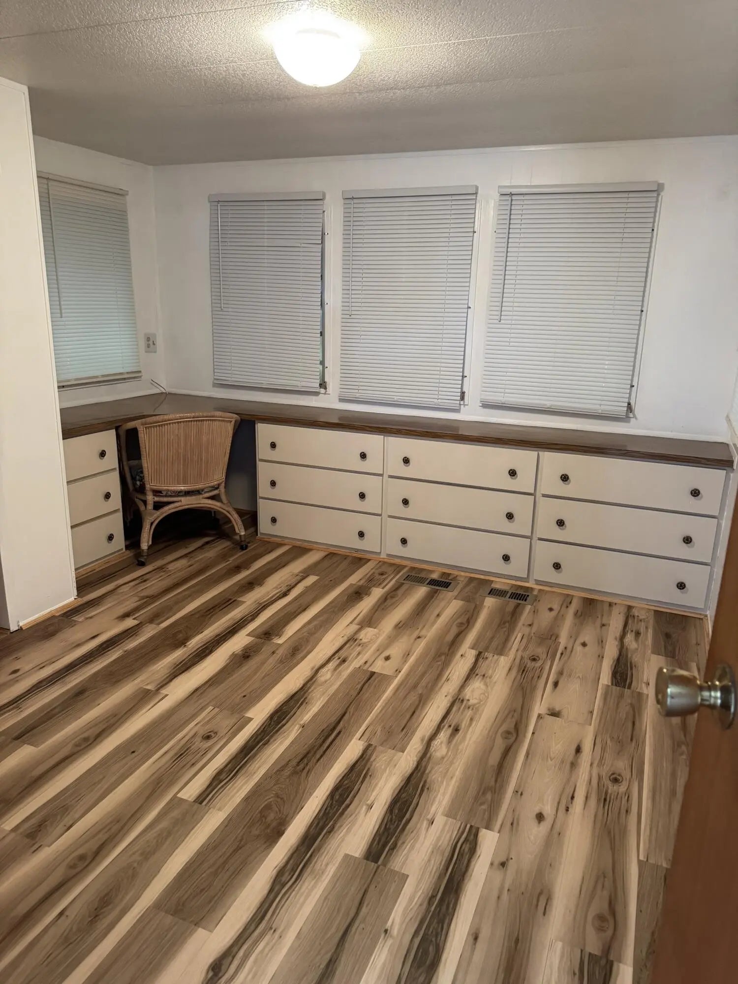 WOW! Welcome to this charming and well-maintained 2-bedroom, 1-bath home located in the highly sought-after Woodbridge community. Designed for easy, low-maintenance living, this home features wood flooring throughout and a nicely sized kitchen that offers both functionality and comfort. Enjoy added privacy with your own private backyard, complete with a shed included in the sale, perfect for extra storage or hobbies. The layout is efficient, inviting, and ideal for those looking to downsize without sacrificing everyday comfort. Set within a quiet, well-kept 55+ community, this home is a must-see for buyers seeking affordability, simplicity, and a welcoming place to call home.