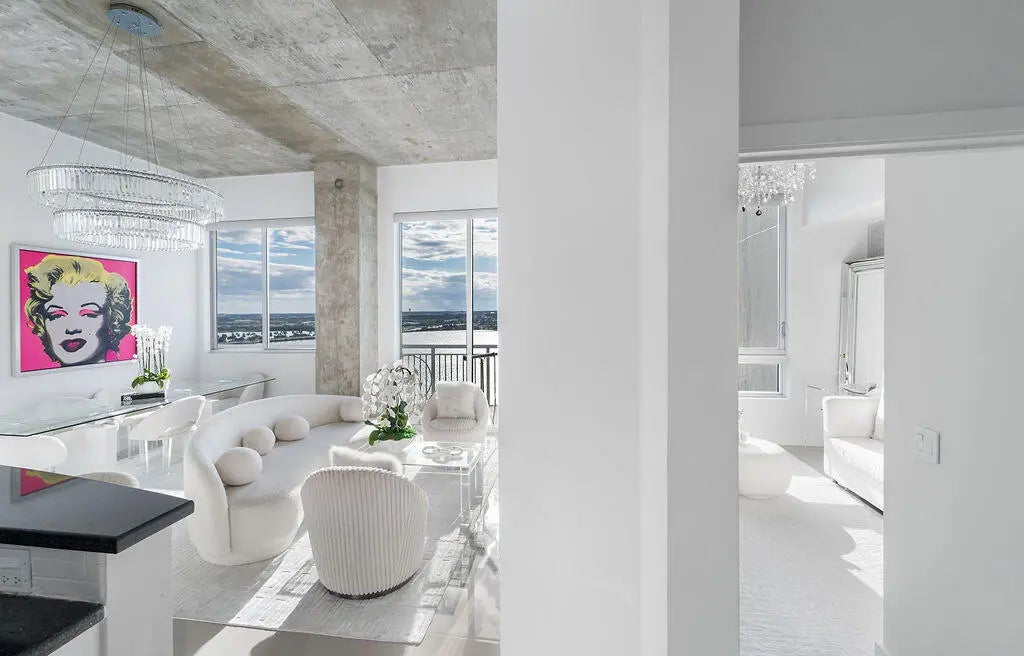 Luxurious 2/2 loft style PENTHOUSE with 12' concrete ceilings! Enjoy expansive views of the lake on your private terrace and watch amazing sunsets! Beautiful light fixtures can be seen throughout the residence. Featuring a gorgeous living and dining room area with chic stylish furnishings, a fireplace and Lutron shades w/smart home technology, Designer features include tile floor, luxury kitchen with SS appliances, granite counter tops with tile backsplash. The sleek primary bedroom en-suite has floor to ceiling blackout curtains, large walk-in closet and flat screen TV. The Edge has a 24hr lobby attendant, garage parking and fabulous amenities, including a rooftop Olympic sized pool, club house, fitness center, Zen/Yoga room and spa. Located downtown close to everything you need! ***Rented 12/1/2025-3/31/2026 (not available Dec, Jan, Feb & Mar)