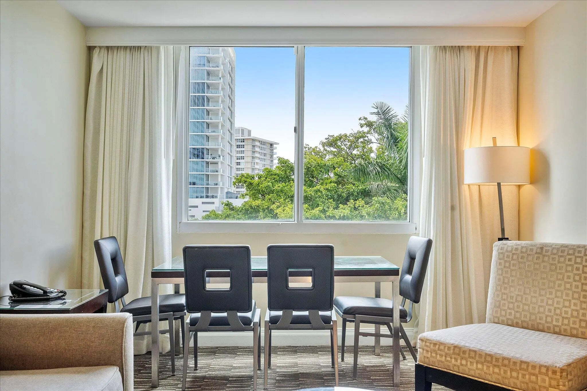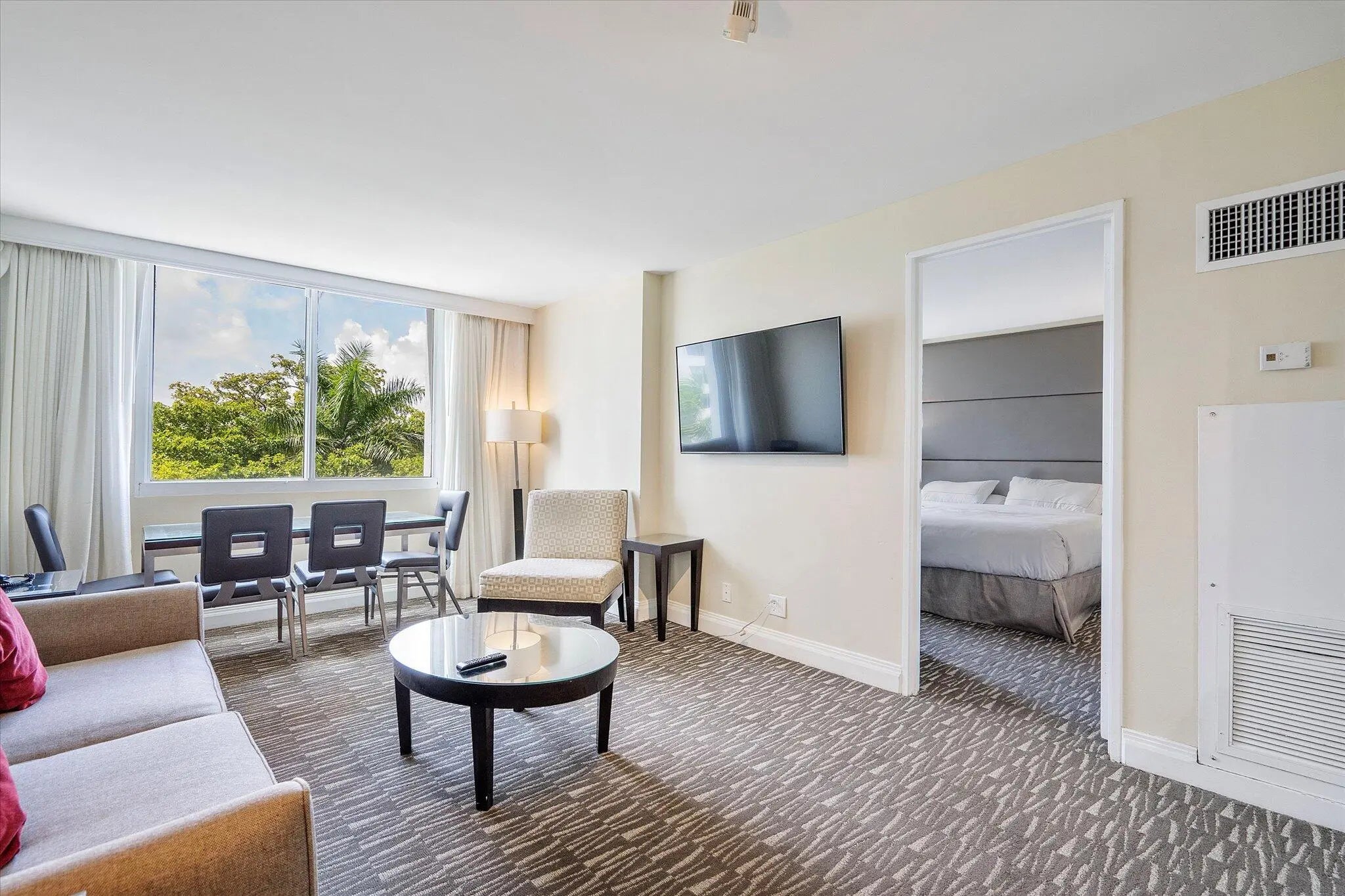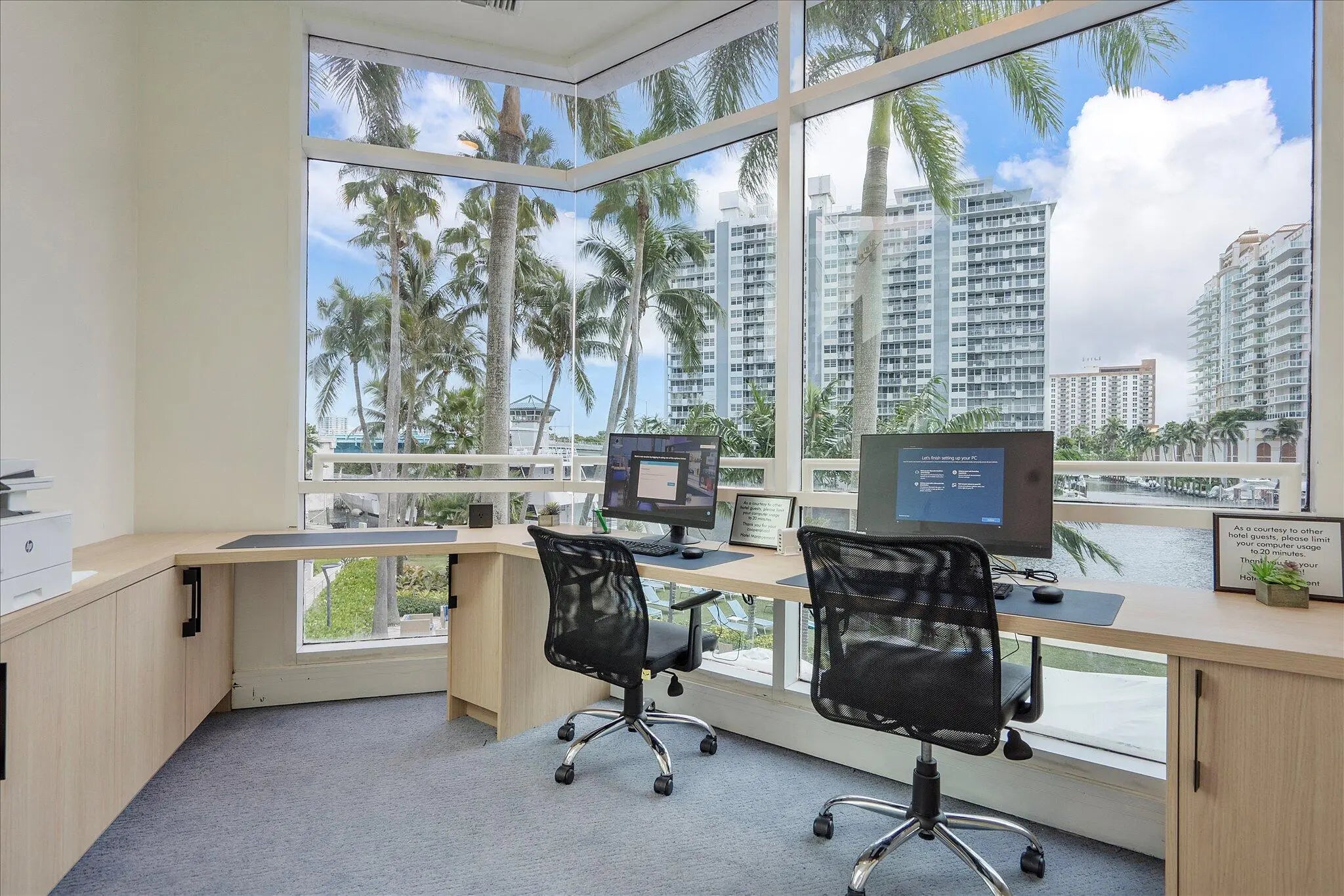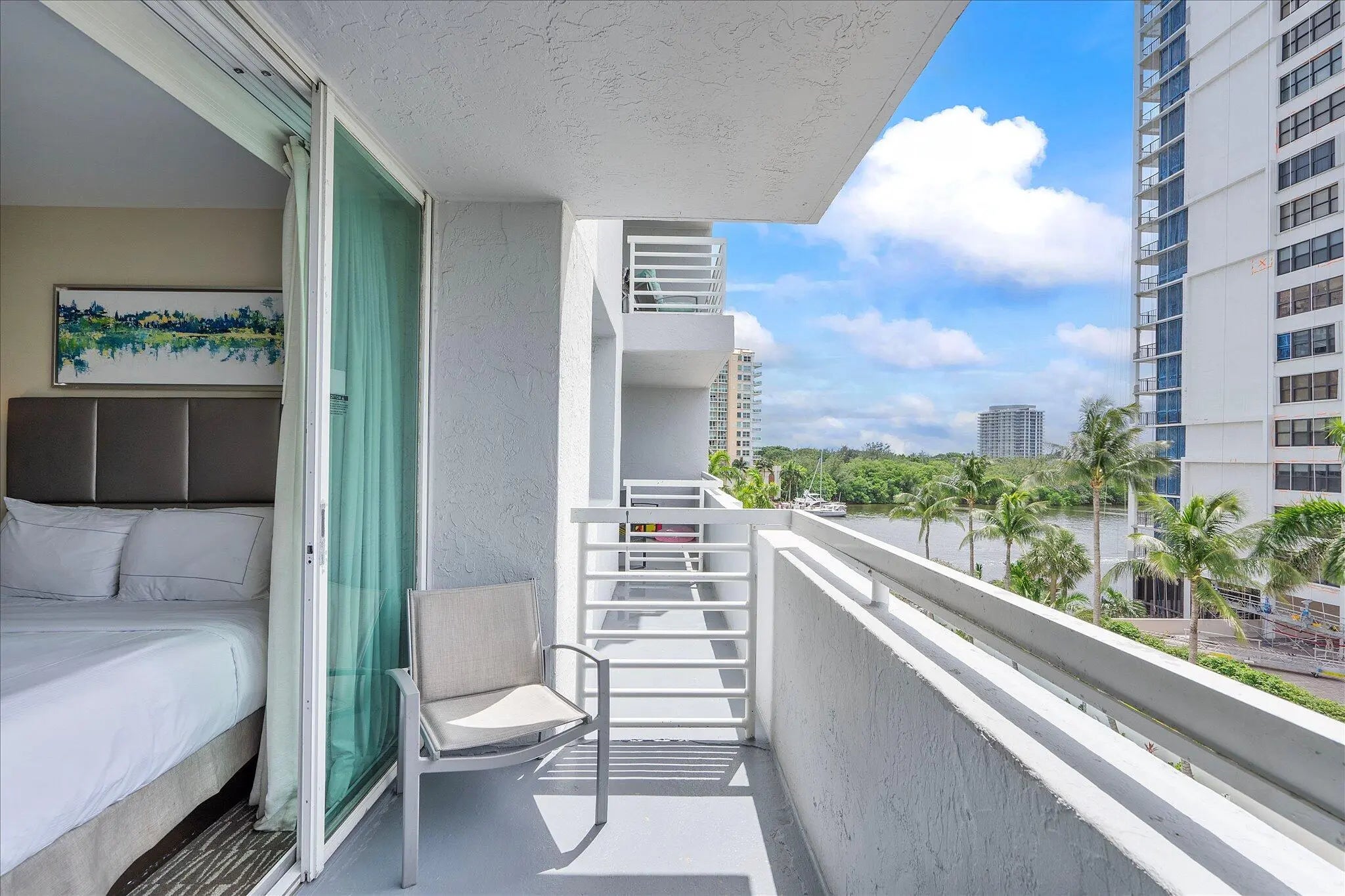 Enjoy intracoastal views in a location that's tough to beat! This fully furnished, pool & intracoastal view, 2 bed, 2 bath condo hotel unit features 3 queen beds and can be rented out daily (currently in hotel program). Located next to the Galleria Mall and minutes from the beach, enjoy on-site amenities or catch the water taxi which stops at the property. All utilities including cable and internet are included in the monthly dues.