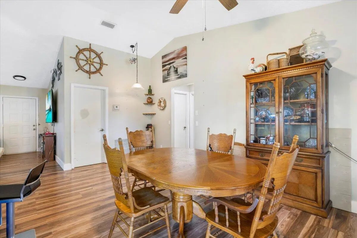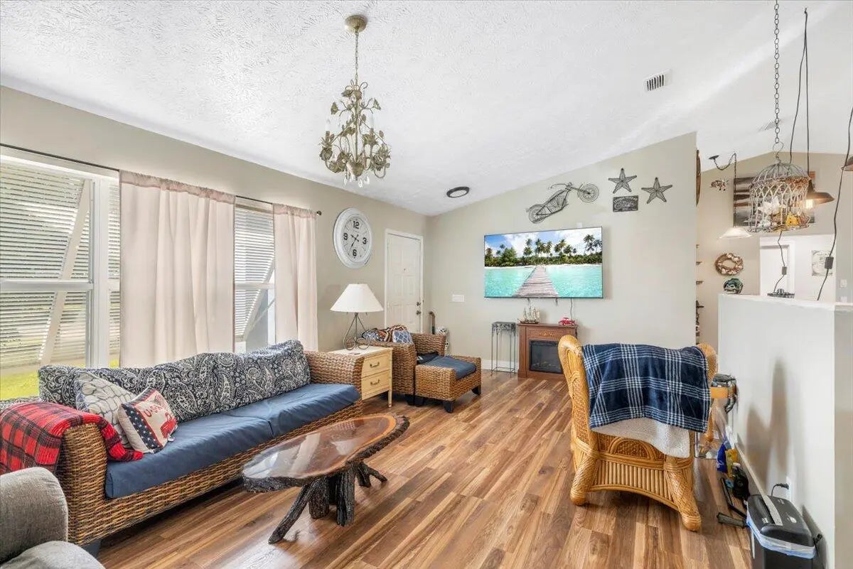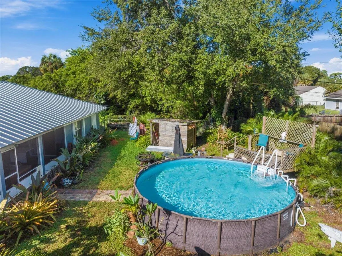No strict HOA so bring your RV, boat, motorcycles, and more! This 3-bedroom, 2-bath split-floor-plan home offers the perfect blend of comfort, style, and peace of mind. Enjoy Florida living at its best with a screened patio, fenced backyard, and a large above-ground pool—ideal for entertaining or relaxing weekends at home. Inside, a custom kitchen showcases solid wood cabinetry, butcher-block countertops, and luxury vinyl plank flooring throughout for easy care and modern appeal. Major updates include a 2021 metal roof, 2021 three-ton A/C, 2021 well, 2021 Bahama and accordion shutters, and a 2018 impact-rated garage door. Located in the desirable nature-friendly Lakewood Park- enjoy walking trails, tennis/pickleball & basketball courts, baseball & soccer fields, playgrounds, picnic areas, disc golf course, community library, and pool! Quick commutes to I-95 or US-1 for convenient travel! Neighboring beautiful Vero Beaches to the north and the famous Fort Pierce Inlet/Jetty to the south, you won't have to go far to feel like you're on vacation!