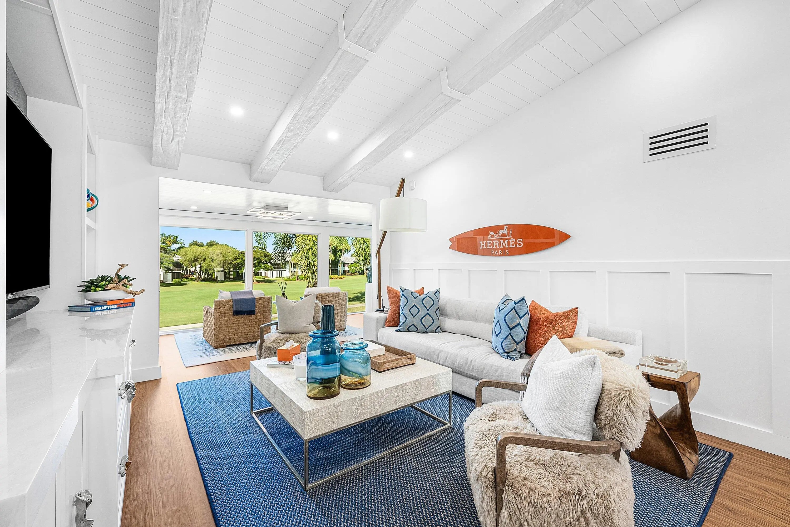 Welcome to this completely reimagined, fully furnished 2-bedroom, 2-bath condo nestled within the prestigious Gleneagles Country Club in Delray Beach, Florida. With meticulous attention to detail, this residence has been professionally transformed by award-winning Clive Daniel Home Design into a stunning coastal oasis. Upon entering, you'll be captivated by the bright & airy atmosphere that permeates every corner of this home. Enjoy magnificent views of the golf course through the expansive floor-to-ceiling windows that allow you to fully immerse yourself in the breathtaking views that surround the property. Architectural details have been thoughtfully incorporated as well, adding a touch of elegance to the condo. From the exquisite wall paneling & ceiling beams to the custom-built-ins in the living room, every element has been carefully selected to create a cohesive and luxurious aesthetic. Throughout the home, you will notice upscale accents, including a decorative Hermès surfboard, with accessories, striking the perfect balance between opulence and comfort. The custom kitchen is a true culinary masterpiece. No expense has been spared in creating a space that is as functional as it is visually stunning. Equipped with top-of-the-line Thermador stainless steel appliances, this kitchen sets the stage for gourmet cooking and effortless entertaining. The quartz countertops not only add a touch of elegance but also provide a durable and low-maintenance surface for food preparation and serving. The spacious countertop area allows for ample workspace, making it ideal for culinary enthusiasts who enjoy experimenting with flavors and techniques. With an abundance of storage space, including well-crafted cabinetry and a pantry, you'll have plenty of room to keep your kitchen organized and clutter-free. The thoughtfully designed layout ensures that all essential cooking tools and ingredients are within easy reach, maximizing efficiency and enjoyment while preparing meals. The attention to detail in the custom kitchen extends to the exquisite finishes and fixtures. From the designer lighting that illuminates the space to the carefully selected hardware that adds a touch of sophistication, every element has been chosen to elevate the culinary experience. The main bedroom is a serene retreat, featuring sophisticated furnishings and a stylish accent wall behind the bed that takes advantage of the high ceilings. The main bathroom has been meticulously upgraded and reconfigured, and includes raised ceilings and large mirrors. No detail has been overlooked in this remarkable renovation. A former wet bar has been transformed into a chic wine closet, boasting sleek porcelain and modern suspension. This space not only exudes sophistication but also perfectly complements the overall design. The condo also includes a brand-new roof, providing lasting value and peace of mind. Gleneagles Country Club is a prestigious, manned gated, mandatory membership community located in Delray Beach, Florida. Residents have access to an exceptional range of amenities and activities. Golf enthusiasts will find themselves in paradise with access to two 18 hole championship golf courses, a spacious practice facility featuring a driving range, chipping area, and putting green. Golf members can also participate in weekly league tournaments, and instruction from a staff of PGA Professionals is also available. Pickleball and tennis enthusiasts have access to 19 Har Tru tennis courts, 8 Pickleball Courts, complimentary use of a ball machine with the revolutionary PickupWall and an active tournament and social schedule. Complimentary clinics and professional instruction are also available. There is also a social membership available as well where members can enjoy all social amenities and activities, including all restaurants and lounges, the fitness center, pools and satellite clubhouses and the men's and ladies' card rooms. Living in Gleneagles Country Club means enjoying the best of both worlds - the serene and luxurious lifestyle within the community, as well as the excitement and convenience of Delray Beach's dynamic offerings. Experience the perfect blend of a serene retreat and easy access to a plethora of entertainment, dining, and shopping experiences just moments away from your doorstep. Don't miss the opportunity to own this one of a kind, fully furnished condo in Gleneagles Country Club. Experience the pinnacle of coastal living in this exquisite retreat.