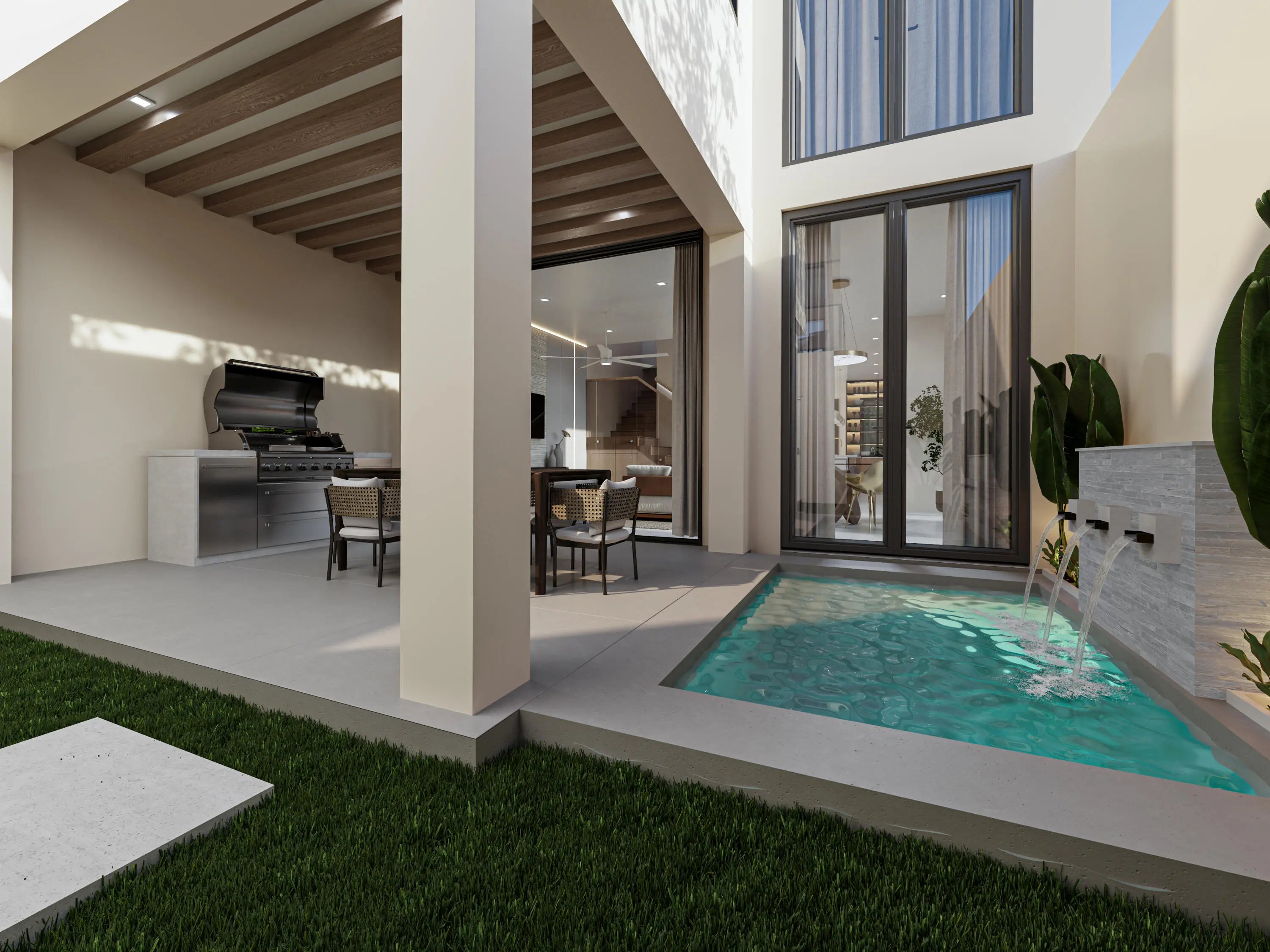 NOW UNDER CONSTRUCTION — NO HOA! Just 1.5 Blocks from Atlantic Avenue | Downtown Delray Beach Introducing Fifth Avenue Townhomes, an exclusive enclave of five luxury residences by renowned architect Randall Stofft, perfectly situated just one-and-a-half blocks from the vibrant heart of Downtown Delray Beach. Blending modern coastal design with timeless sophistication, these three-story homes redefine effortless, in-town living—all with no HOA restrictions.(SEE ADDITIONAL REMARKS) Each residence showcases a light-filled open layout, private elevator, and seamless indoor-outdoor flow. The first floor centers around a gourmet Thermador kitchen, with custom cabinetry, an oversized island, and open dining and living areas that extend to a covered patio and private saltwater plunge poolyour personal retreat in the heart of Delray. Upstairs, the primary suite features a spa-inspired bath and expansive walk-in closet, while guest suites offer ensuite baths and generous storage. The third-floor club room with wet bar and large terrace is perfect for entertaining or sunset lounging. A detached two-story, two-car garage includes a versatile second-level flex space complete with wet bar, full bath, and covered terraceideal for a private office, guest suite, or fitness studio. Curated by Decorators Unlimited, two designer finish packages bring the Coastal Modern aesthetic to life through refined materials, neutral tones, and elevated textures. Each home is prewired for smart-home automation and built for a lock-and-leave lifestyle without compromise. Completion: Late Spring 2027 Disclaimer: The information provided by the listing company and its representatives, including but not limited to prices, measurements, square footages, lot sizes, calculations, statistics, features, finishes, and videos, is deemed reliable but not guaranteed and is subject to errors, omissions, or changes without notice. The information has been derived from architectural plans or county records and should be independently verified by any prospective buyer before entering into a transaction. Due diligence is required to confirm the accuracy of the information presented. The listing company expressly disclaims any warranties or representations regarding the completeness or reliability of such information. Published prices may reflect list prices, sold prices, or last asking prices. No concessions will be made until title passes. In the event of a buyer default, no concessions will be paid to the Cooperating Broker on any deposits retained by the seller. The builder reserves the right to modify or adjust plans, specifications, features, colors, and pricing at any time. All plans and elevation renderings presented are artistic representations and may not be drawn to scale. A developer fee of 1.5% of the purchase price is due at closing.© 2025 by the listing company. All Rights Reserved.