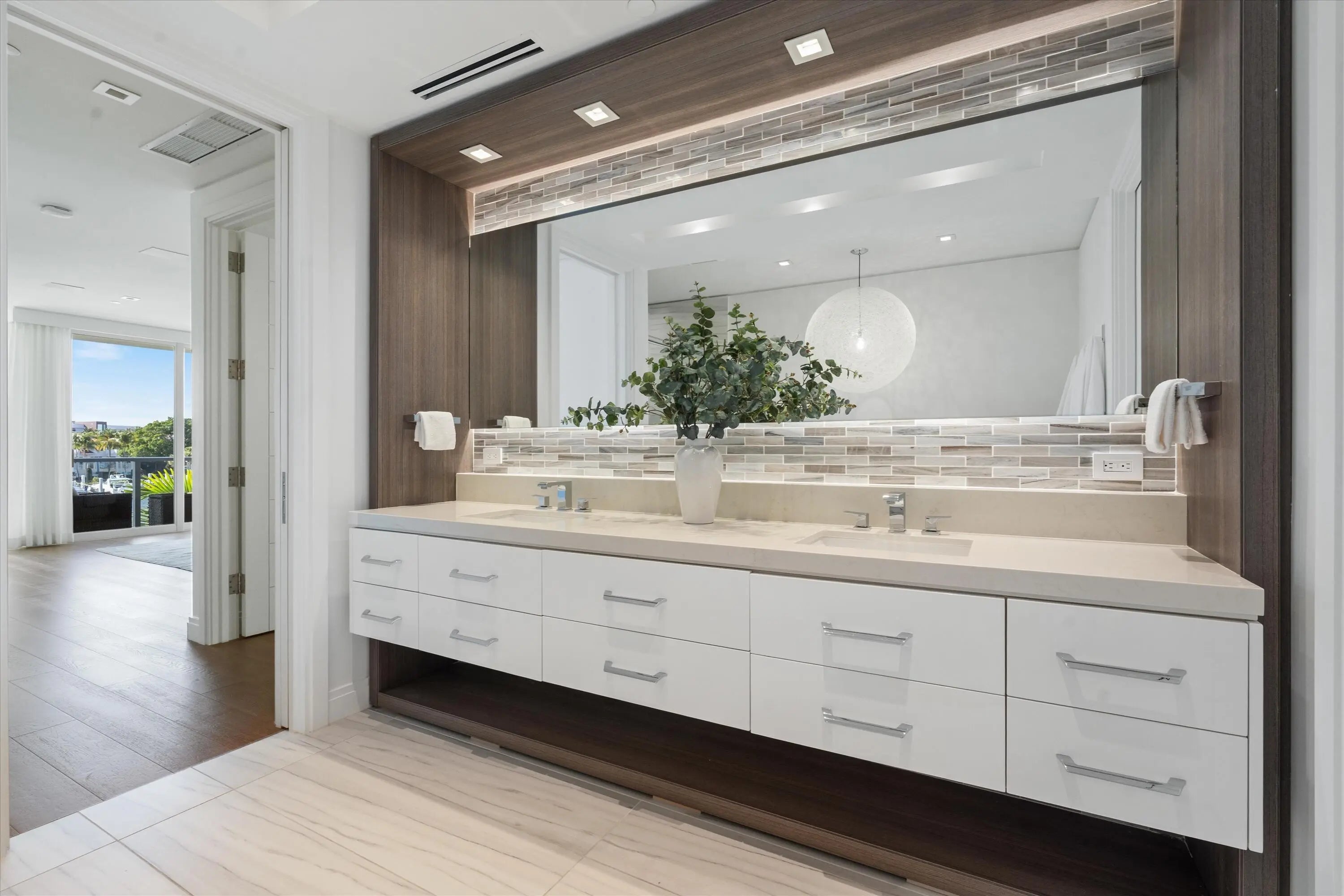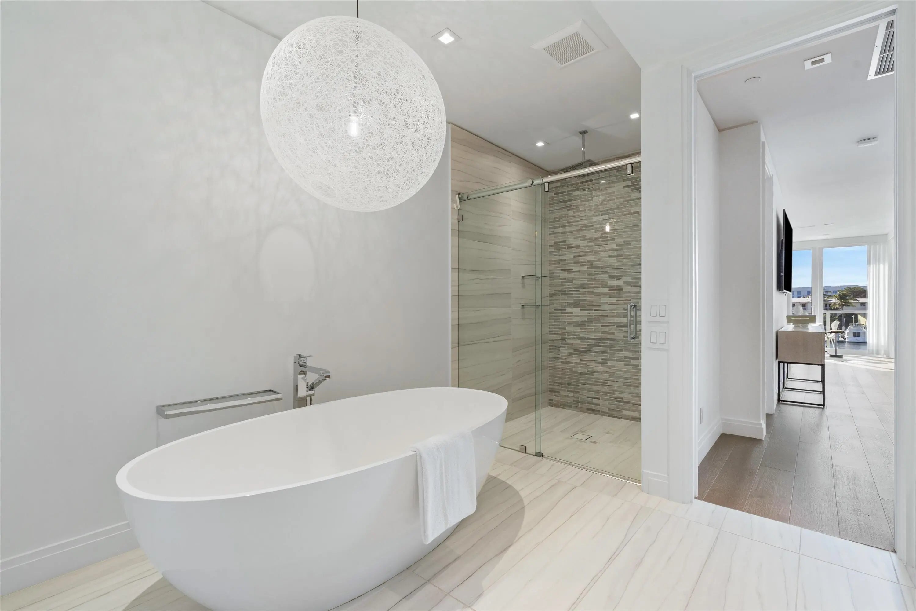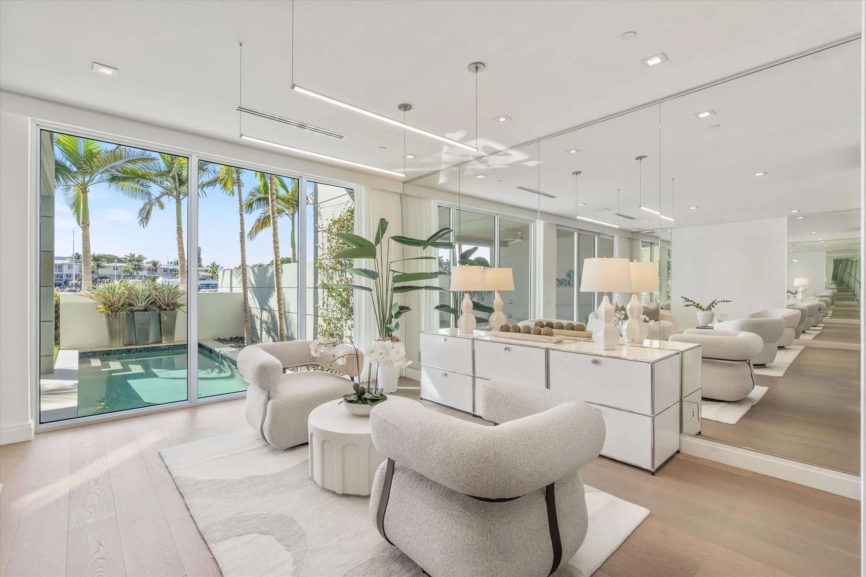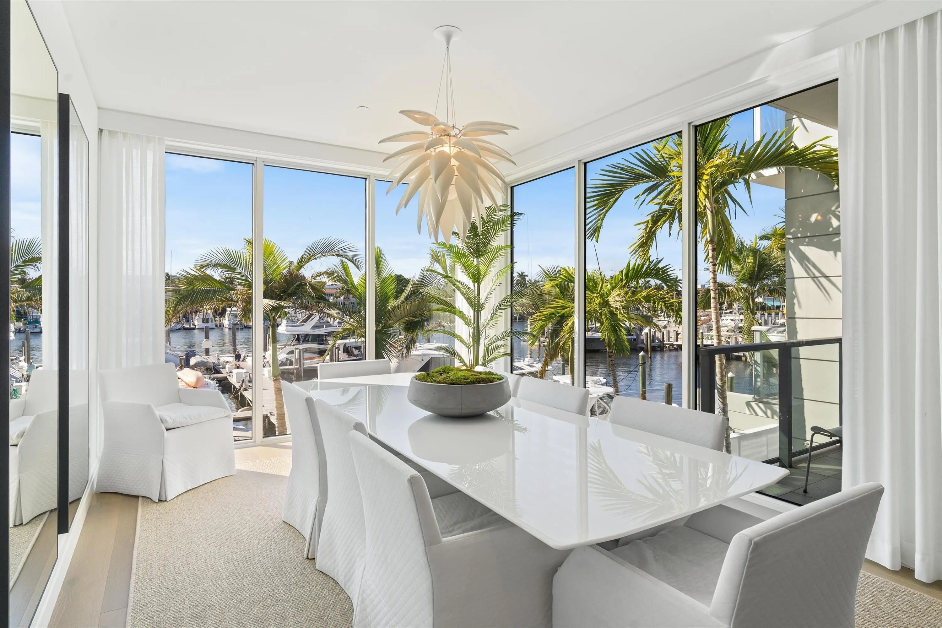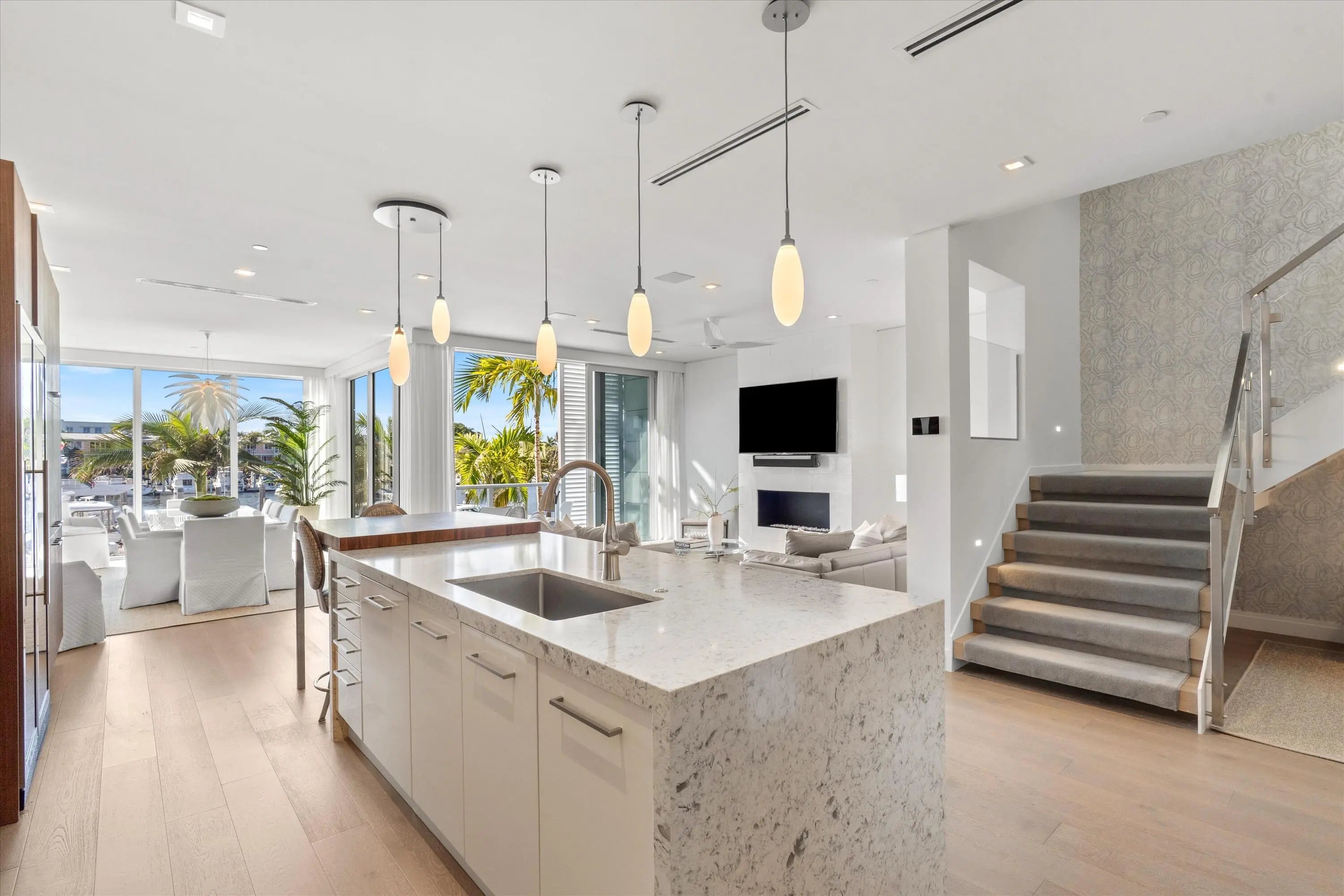 Experience the pinnacle of waterfront luxury in this sophisticated four-story townhome, nestled within the exclusive enclave of The Seagate Yacht Club Residences—a private community of only ten homes perched directly on the Intracoastal Waterway. Built in 2016, this contemporary residence seamlessly blends modern elegance and coastal sophistication, capturing the essence of South Florida's premier lifestyle. Just three blocks from the beach and Atlantic Avenue's fine dining, boutique shopping, and vibrant nightlife, it offers an exceptional balance of privacy, design, and location. From the moment you arrive, the home's impeccable curb appeal sets the tone. Manicured landscaping, a decorative paver driveway, and a gated entry introduce a sense of exclusivity and refined style. Inside, volume ceilings, designer lighting, and wood-look tile flooring throughout establish a cohesive atmosphere of understated contemporary luxury. Expansive walls of glass frame panoramic Intracoastal and marina views on every level, creating a seamless connection between indoor and outdoor living. The first floor welcomes you with a dramatic two-story foyer, defined by a glass entry door, an elegant chandelier, and an intimate sitting area. A flexible guest suite or office with barn doors and a full bath provides versatility. The expansive great room features a built-in dry bar and opens through sliding glass doors with Phantom screens to the private pool and sundecka perfect setting for entertaining or quiet waterfront relaxation. Additional highlights include a two-car garage with epoxy flooring and a Tesla charger, a well-appointed laundry room with sink, and convenient under-stair storage. On the second floor, the home's modern coastal aesthetic takes center stage. The chef's kitchen is equipped with Miele appliances, an induction cooktop, appliance garage, and a striking island that combines stone and butcher-block surfaces with counter seating. A double-door wine and beverage cooler complements the space. The dining room, surrounded by glass on two sides, captures breathtaking marina viewsan unforgettable backdrop for any meal. The adjoining family room centers around a sleek gas fireplace and opens to a waterfront balcony. This level also includes a powder room with a stone vessel sink and an additional guest suite with a private balcony. The third floor is dedicated to privacy and retreat. The primary suite exudes luxury with two balconiesone full and one Julietoffering spectacular water vistas. A sitting area or office nook enhances functionality, while dual walk-in closets and a spa-inspired bath with dual vanities, soaking tub, and glass-enclosed shower create a serene escape. An additional guest bedroom with an ensuite bath and walk-in closet is also found on this level, along with a stackable washer and dryer for added convenience. Crowning the residence is the expansive rooftop terracean entertainer's dream overlooking the Intracoastal and marina. This extraordinary space features a summer kitchen with grill, Big Green Egg, beverage refrigerator, and sink, along with a fire pit, dining area, and generous lounge seatingideal for hosting under the stars or savoring sunsets over the water. Every detail reflects state-of-the-art luxury and thoughtful design. The property includes a full-house generator, three-zone air conditioning, impact-rated windows and doors, Nest Protect fire and CO detection, security system, and custom solid-wood interior doors throughout. Residents enjoy direct access to the Intracoastal and Seagate Marina, manicured common areas, and proximity to Delray Beach's most coveted attractionsfrom pristine shores to Atlantic Avenue's celebrated culinary and cultural scene. Blending sleek architecture, warm coastal textures, and impeccable craftsmanship, this residence is a true statement of contemporary waterfront livingwhere sophistication meets the effortless rhythm of life on the Intracoastal.