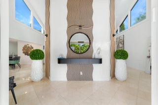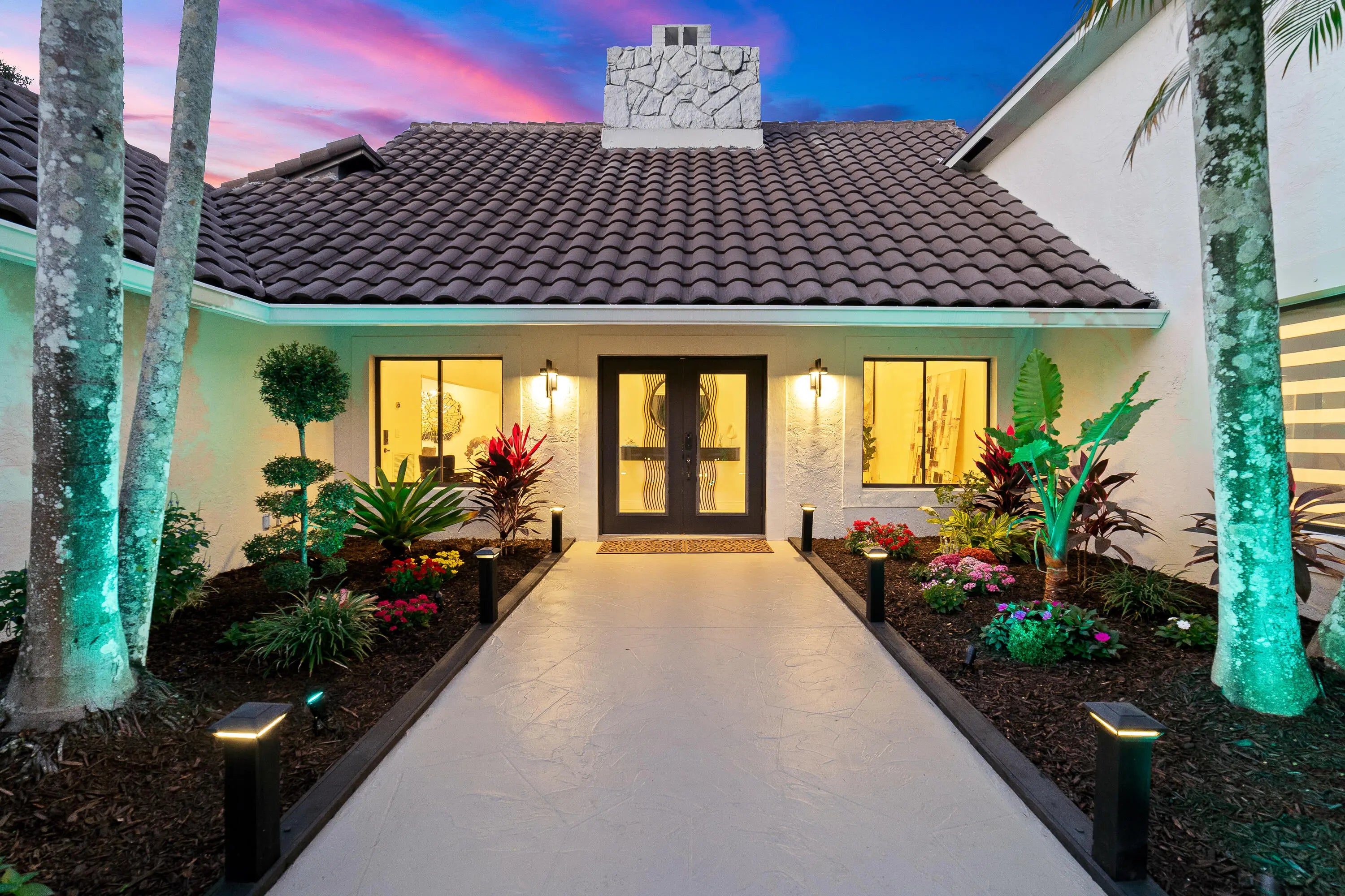 Experience elegant Florida living in this beautifully remodeled 4BR/4BA estate with pool, heated spa, and bonus office on a private 1.11-acre lot in Wellington's A-rated school zone. The chef's kitchen showcases quartz countertops, premium cabinetry, high-end stainless appliances, large island, walk-in pantry, and buffet connecting to a spacious dining room—perfect for entertaining. Bathrooms feature quartz and LED-lit finishes. The primary suite offers pool views, custom closet, and office that can easily convert to a 5th bedroom with patio access. Enjoy outdoor living with a summer kitchen, stainless grill with vented chimney, and stone countertop. Smart-home features include lighting, A/C and smoke controls, shades, door locks, cameras, and irrigation system. The air-conditioned 2-car garage provides versatile flex-space potential. A hidden rear lot with secondary driveway fits a boat, RV, or horse trailera rare and sought-after feature in this equestrian community.