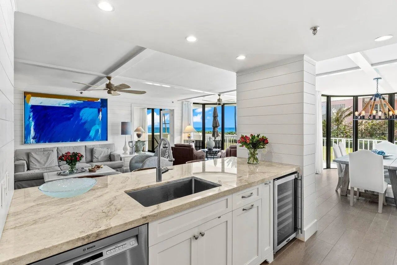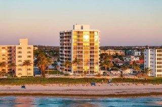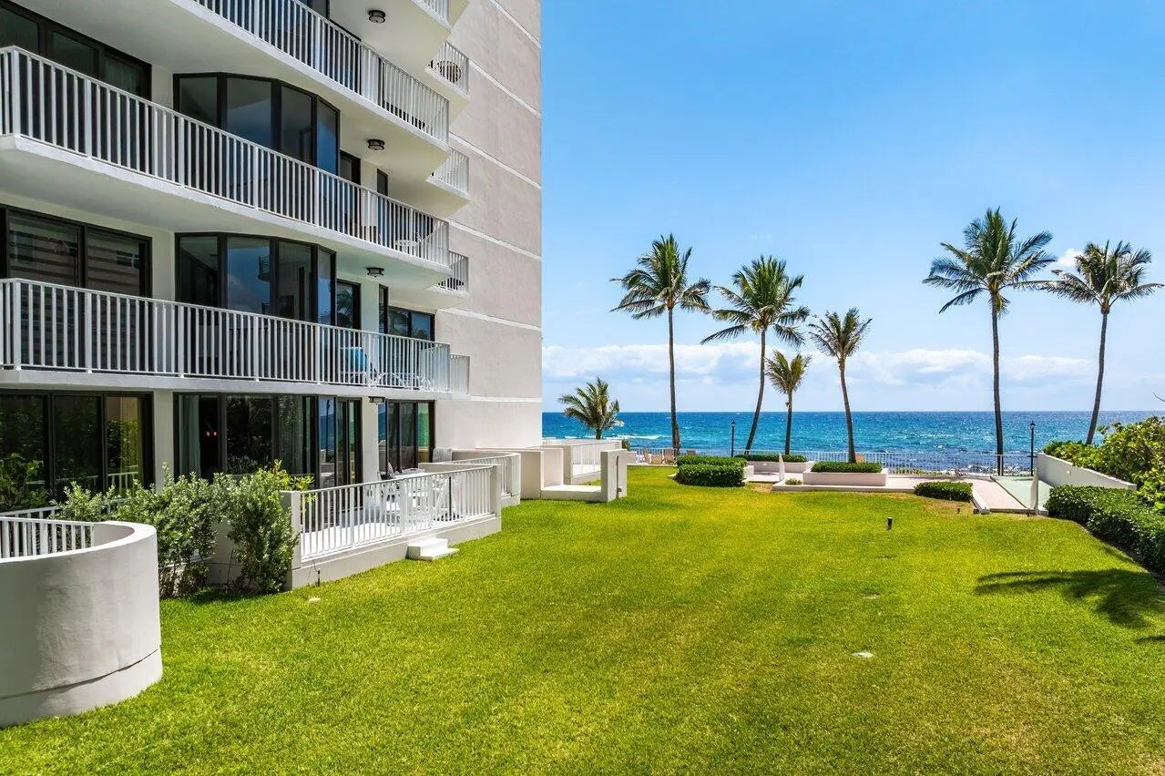 Experience coastal luxury at its finest in this beautifully updated 2-bed, 2-bath first floor walk-out condo at dog friendly Trafalgar of Highland Beach. Enjoy stunning ocean views from every room of this unit, featuring an oversized patio, with balcony access from both bedrooms and the living area. Split floorplan. The well appointed kitchen has been thoughtfully designed with the chef in mind. Premium quartzite counters, Bosch induction cooktop and dishwasher, Miele steam/convection oven, Fisher & Paykel convection oven and refrigerator, plus a wine fridge. Additional highlights include impact bay windows (2024), in-unit washer/dryer, and one assigned parking space with electrical plug. Offered fully furnished/turnkey. This perfect seaside retreat is ready for its next lucky owner. Trafalgar is a boutique oceanfront 24-hour guarded building with a gym, sauna, social room, fantastic oceanfront pool deck and elevated hot tub with ocean views. Enjoy peace of mind as the large concrete restoration project was recently completed. Brand new resident corridors and stunning new clubroom by Brown Design Group are nearing completion. Trafalgar is located just 3 buildings South of the Delray Sands Resort and Latitudes Restaurant, which is ideal when hosting out-of-town family, guests and visitors. Highland Beach is a prestigious coastal enclave nestled on the barrier island between Boca Raton and Delray Beach, known for its pristine beaches, quiet atmosphere, and upscale oceanfront properties. This exclusive, residential town offers a serene lifestyle with easy access to top dining, shopping, and entertainment in both neighboring cities. With roughly 3 miles of shoreline, Highland Beach combines luxury living with a true sense of privacy and community.