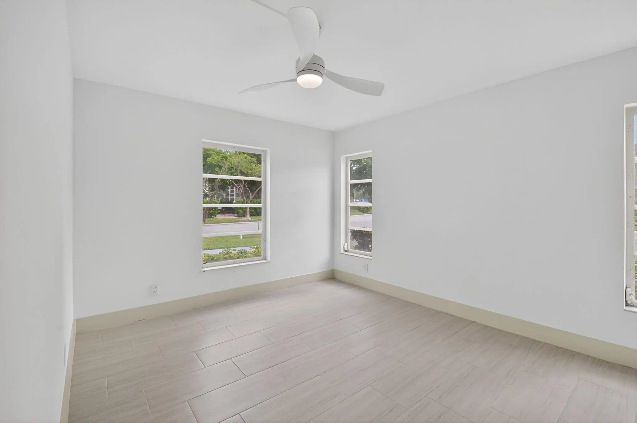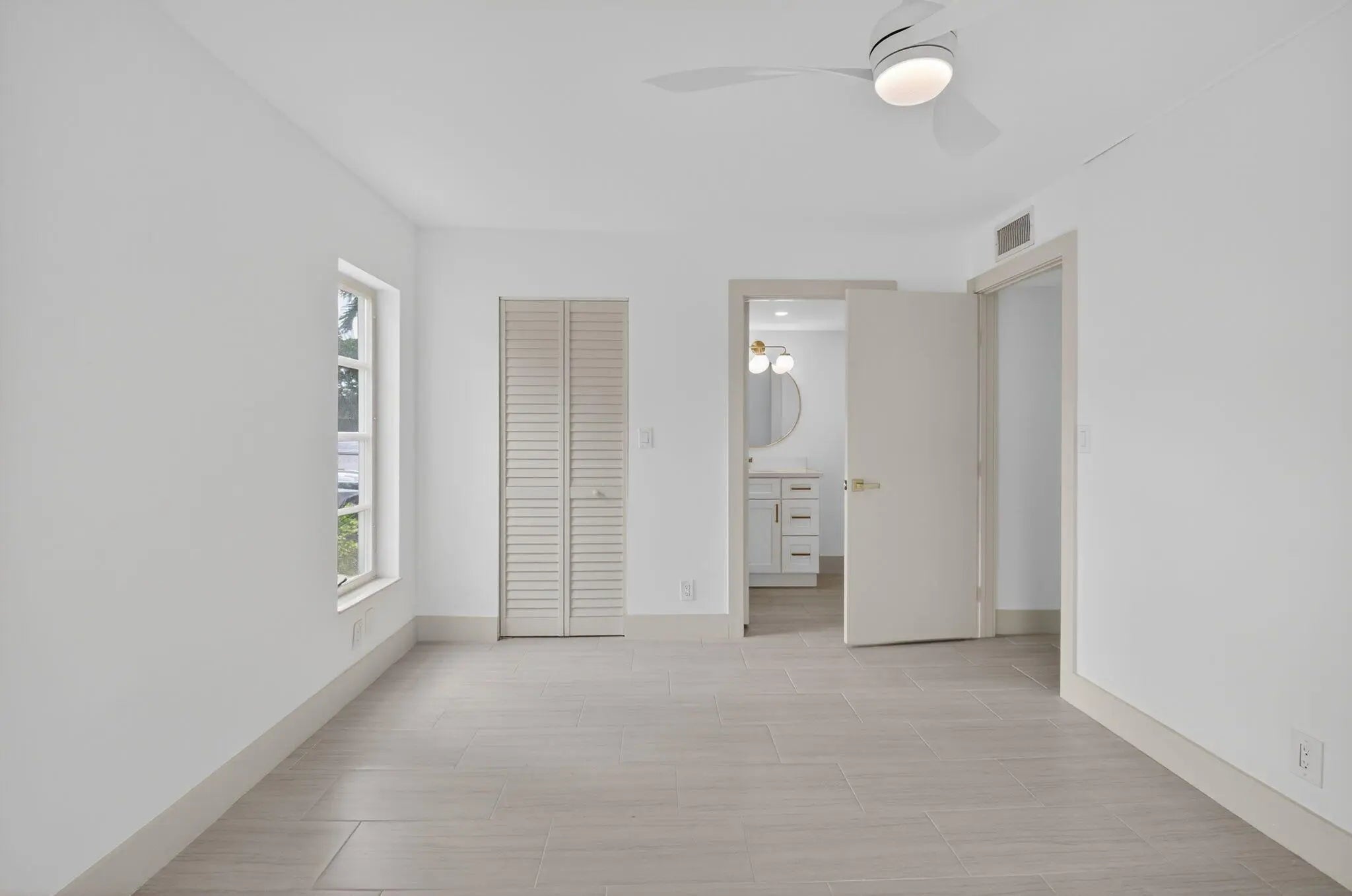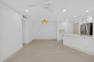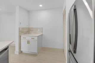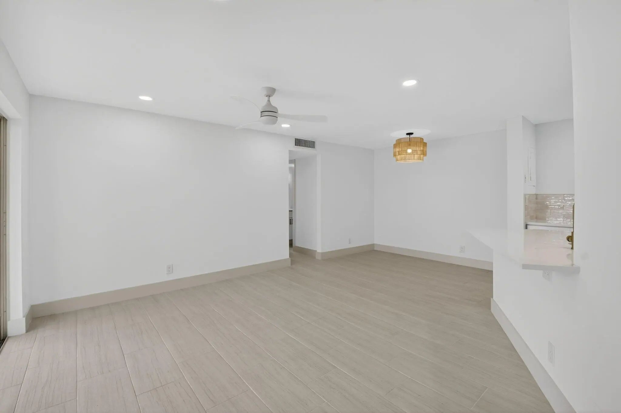 Experience turn-key perfection in this stunningly reimagined 2-bedroom, 2-bathroom residence. No detail was spared in this complete 2025 renovation, featuring sleek ceramic tile flooring, modern base moldings, and designer recessed lighting throughout. The chef-inspired kitchen is a showstopper, boasting pristine quartz countertops and a brand-new stainless steel appliance suite. Relax in the primary retreat, complete with a custom walk-in closet and built-in shelving, or enjoy the Florida breeze from your private, screened covered patio. With a brand-new A/C (2024) and an in-unit washer/dryer, this home offers total peace of mind. Located just minutes from the Turnpike and the vibrant dining scene of Atlantic Avenue, this is the sophisticated 55+ retreat you've been waiting for.