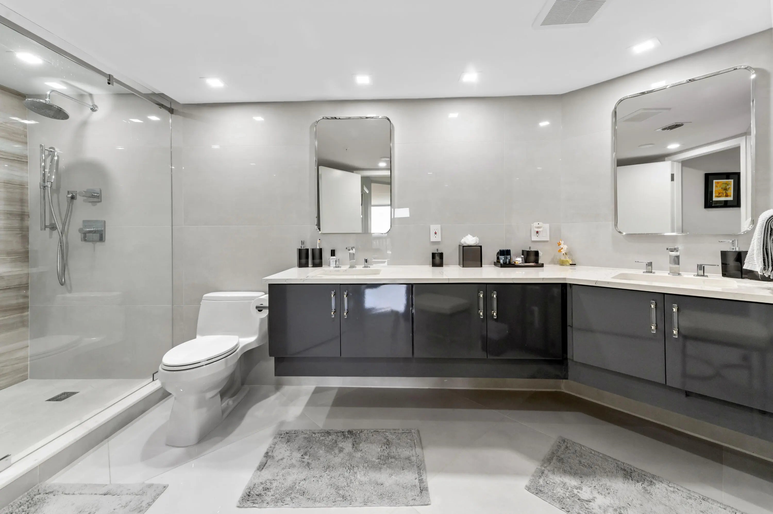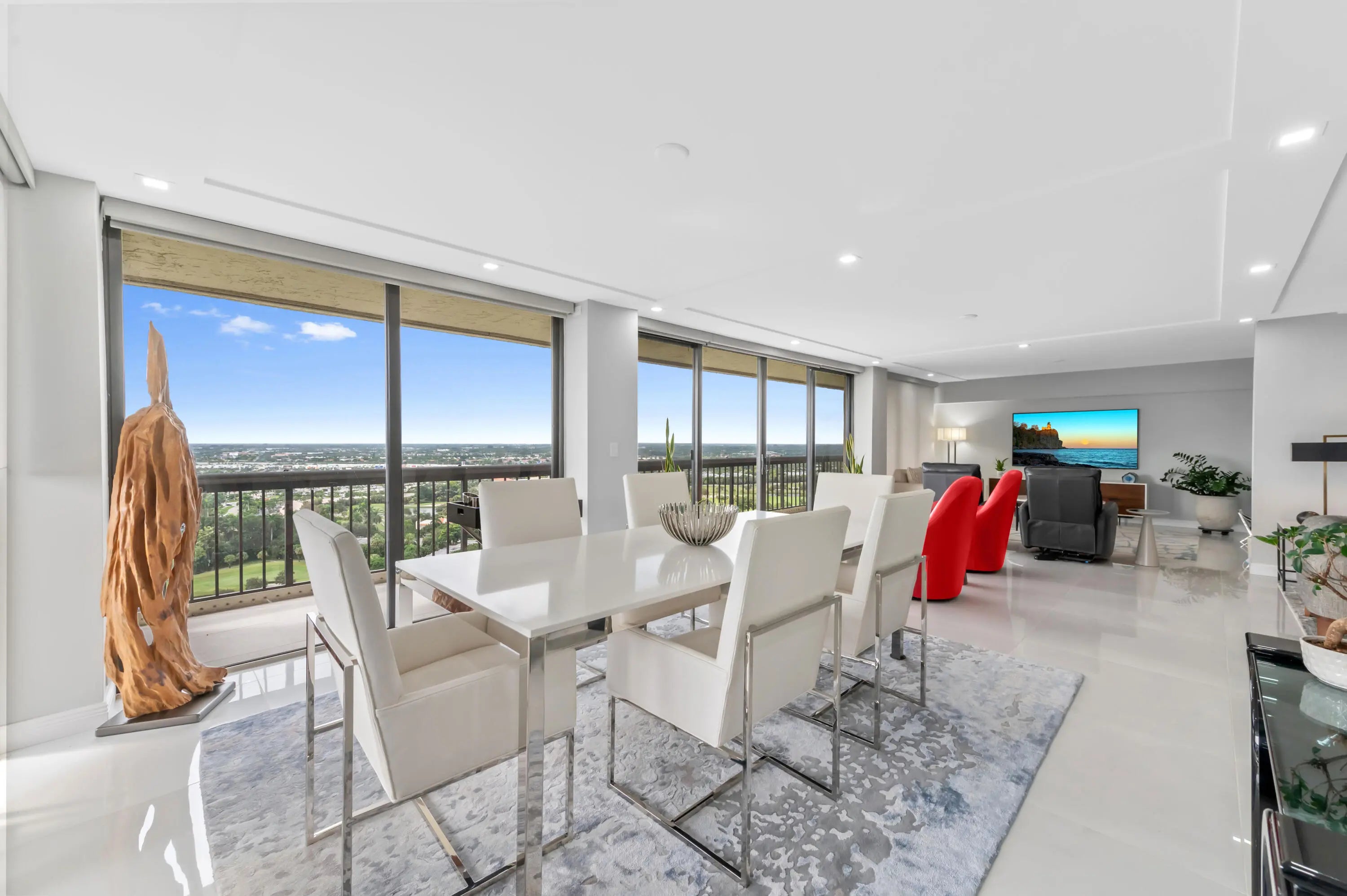 The epitome of elegance in the heart of WPB offering the grandeur of inside & outside living with a 640 sq. ft., wrap around terrace. Sublime and totally newly renovated, with intriguing contrasting colors . Dazzling white kitchen with stone countertops and brand new appliances. The large spaces with porcelain tiles throughout & marble tiles in foyer enhance the spaciousness of the areas. The 3rd BR is opened up to the LR and offers from the floor to ceiling windows/doors expansive mind blowing views on the ocean, lake, golf, and the cities of Palm Beach and West Palm Beach. This unique condo has it all, perfect walls and ceilings, gorgeous bathrooms and Your dreams come true with a huge walk-in closet.