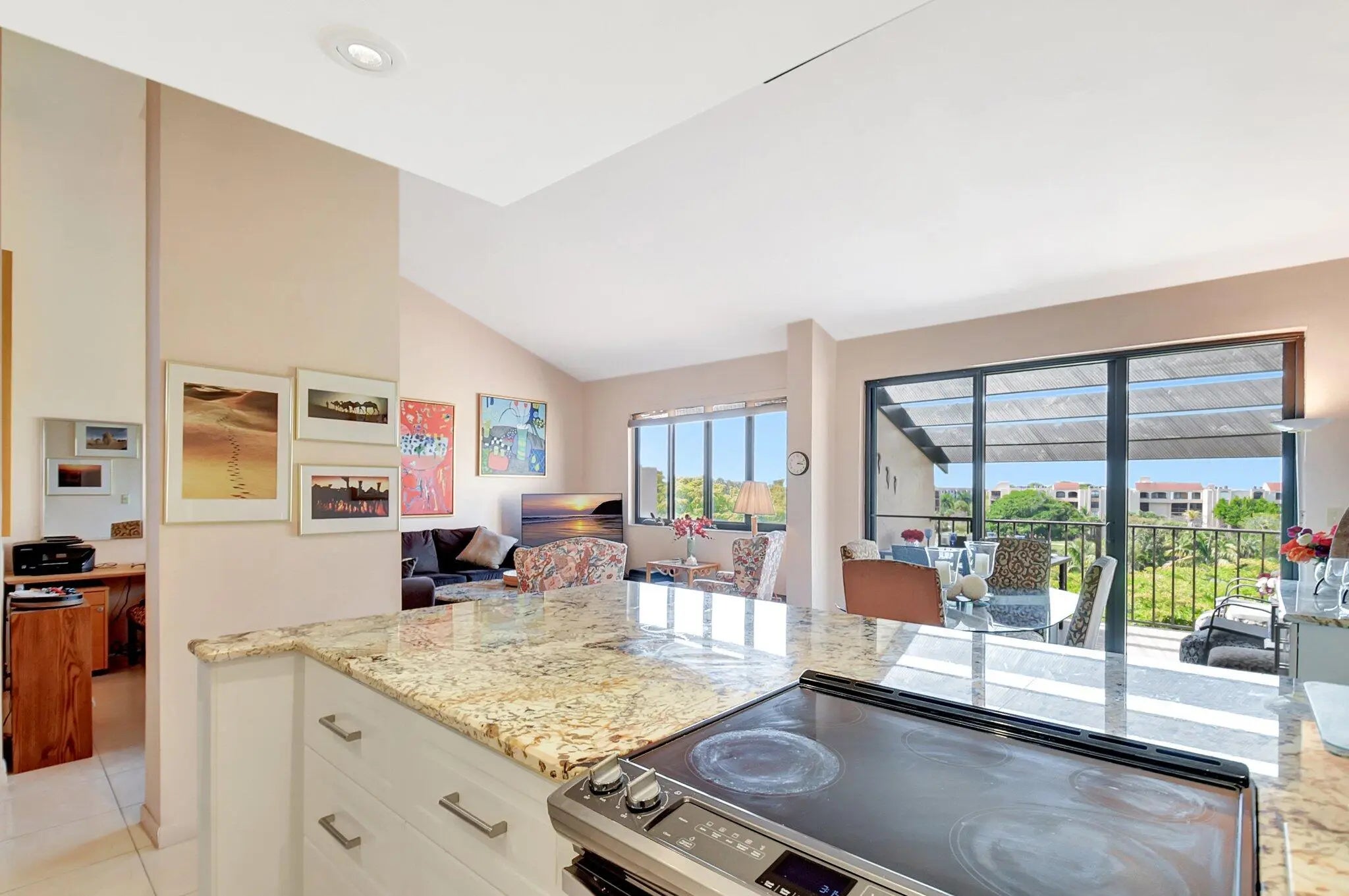 Welcome to this stunning corner unit at the Delray Racquet Club. Located on the third floor of an elevator building, this townhome offers a perfect blend of beauty, style, and comfort. You'll love the light-filled space, featuring spectacular lake and fountain views from your spacious terrace, vaulted ceilings, impact windows and an open-concept design. The kitchen has been beautifully updated with granite countertops and a matching buffet cabinet & coffee table, adding a modern touch to this already impressive unit. Convenience is key, including a generous entryway with a closet, a separate in-unit laundry room and plenty of storage space to make life easier. The top floor boasts two spacious bedrooms and two bathrooms, offering the perfect retreat for privacy and relaxation.