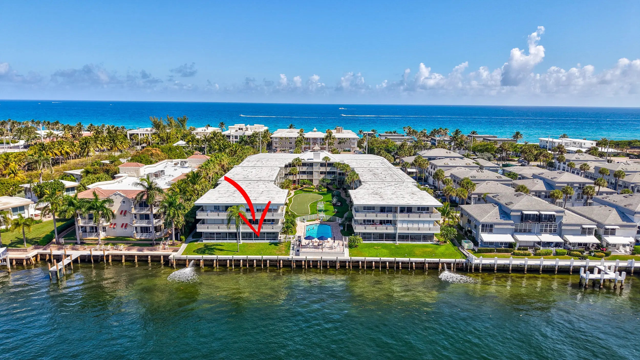 Welcome to your dream coastal retreat! The stunning 2-bedroom, 2- bathroom intercoastal front condo offers breathtaking views and unparallel access to your own private beach with lounge chairs. Perfectly situated within walking distance to shopping and a variety of oceanfront dining options, this home combines convenience with a serene lifestyle on millionaire mile. Stop inside to discover a beautifully new designed kitchen featuring modern finishes and porcelain floors that exude elegance. The open concept living area flows seamlessly onto a screened patio where you can unwind and enjoy full views of intercoastal as mega yachts pass by from millionaire mile. Imagine winding down in the evening with picturesque sunsets right on your private patio.