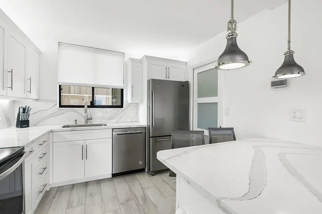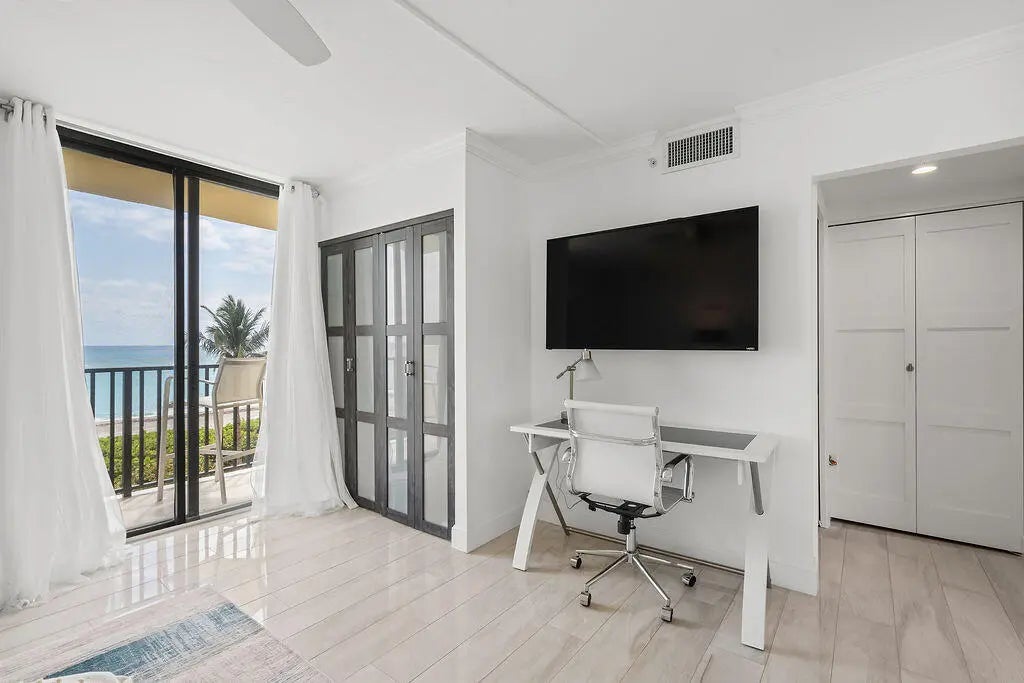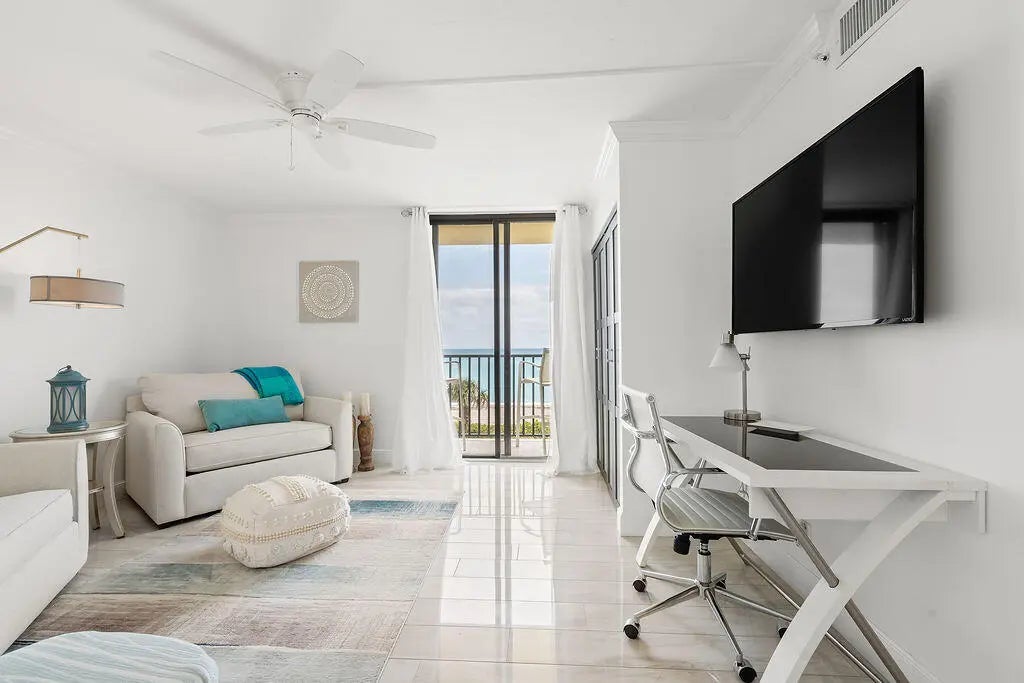 Oceanfront Luxury - Fully Renovated Ocean-side Unit with Breathtaking Views One of the most beautiful seaside towns on the east coast, Jupiter, Florida, and the only luxury condominium development directly on Jupiter Beach. This unit is one of the very rare ocean-facing end units with panoramic views of the Atlantic Ocean from every room and all three balconies. The gated Ocean Trail Community has a resort-like feel with all the amenities and this unit has been meticulously upgraded from floor to ceiling with the finest materials and craftsmanship. The open floor plan seamlessly connects the living, dining, and kitchen areas, creating the perfect with stunning ocean vistas. The flooring features Florine tile from Italy, while the kitchen dazzles with Cambria quartz countertops and backsplash, both bathrooms are refinished with the latest style and materials. Every door throughout the home is solid wood, with select frosted panels adding a touch of modern sophistication: new appliances, A/C unit and hurricane shutters. Located in the exclusive Ocean Trail community, residents enjoy resort-style amenities including 24 hour manned security, underground parking garage and extra storage spaces, tennis courts, heated pools, hot tubs, sauna, fitness center and private beachfront access. Wake up to the sound of waves, unwind with ocean breezes, and embrace a lifestyle of luxury and tranquility.