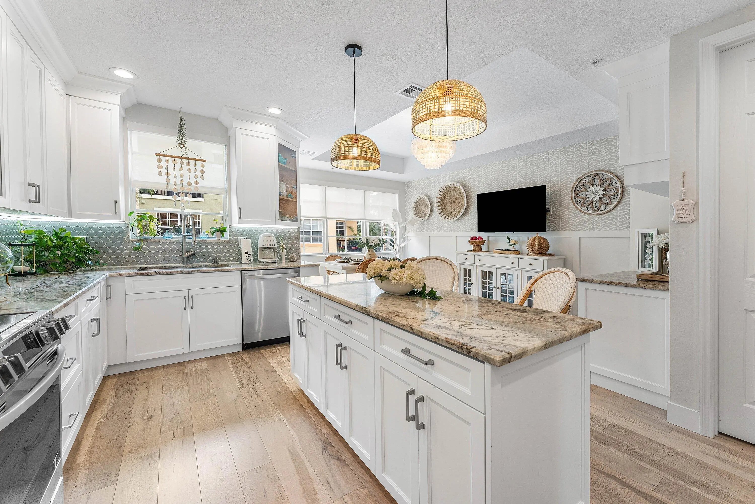 Immaculate picturesque dream home with the most stunning finishes and direct lake views to bridge and clubhouse with resort-style amenities located in the ''best'' location in community! Walk right across lake to pool/clubhouse. Shows like a perfect model home out of a magazine. Home is a total show stopper with the most impressible gourmet kitchen with coastal vibes and finishes throughout. Large open patio on first floor, 2 balconies on 2nd floor off kitchen/dining and living room, and one balcony off the master bedroom. Impact windows and sliding doors have accordion shutters. Renovated (2020) open kitchen with custom cabinetry, granite countertops, s/s appliances, large bar and island. Office/Den on 1st floor convertible to 3rd bdrm. Updated AC. Gated community. Bring fussiest buyers!