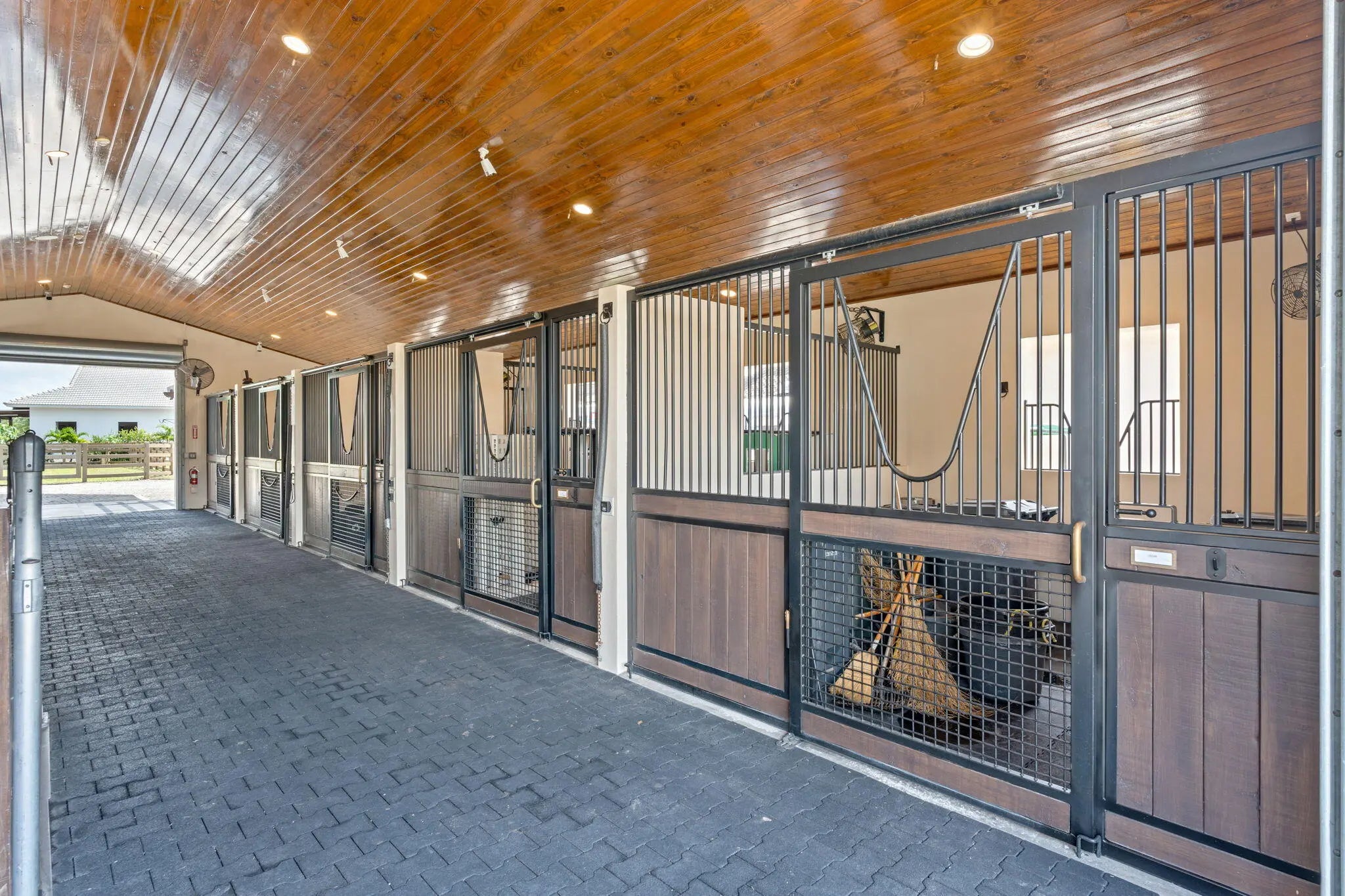 Available for season-this exceptional Wellington property spans two adjoining properties totaling 3.75 acres and features world-class equestrian facilities. 2 stalls remain available. The grounds include shared use of a fully equipped barn with tack, feed, laundry, and full bath, multiple wash stalls, two all weather arenas, a hot walker, and five paddocks. Tenants will have use of two of the three gated driveways, with mature landscaping providing both privacy and convenient access. The property is ideally located just minutes from Wellington International, Global Dressage, and Wellington's premier dining and shopping, perfectly timed for show season. Also available for March and April is the smaller residence featuring 3 bedrooms, 2 baths, its own private pool and an attached studio