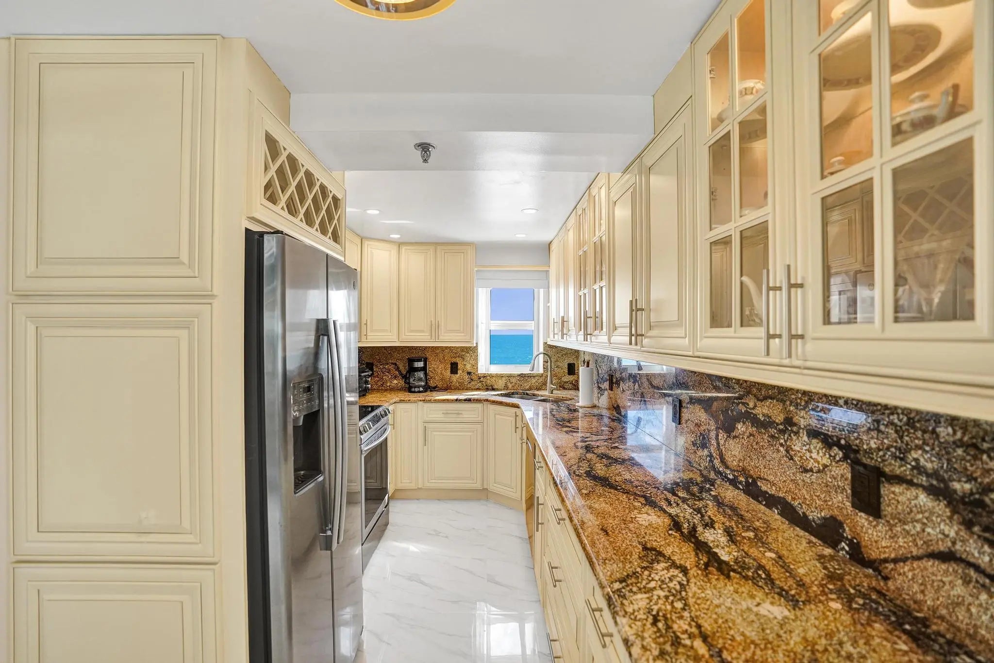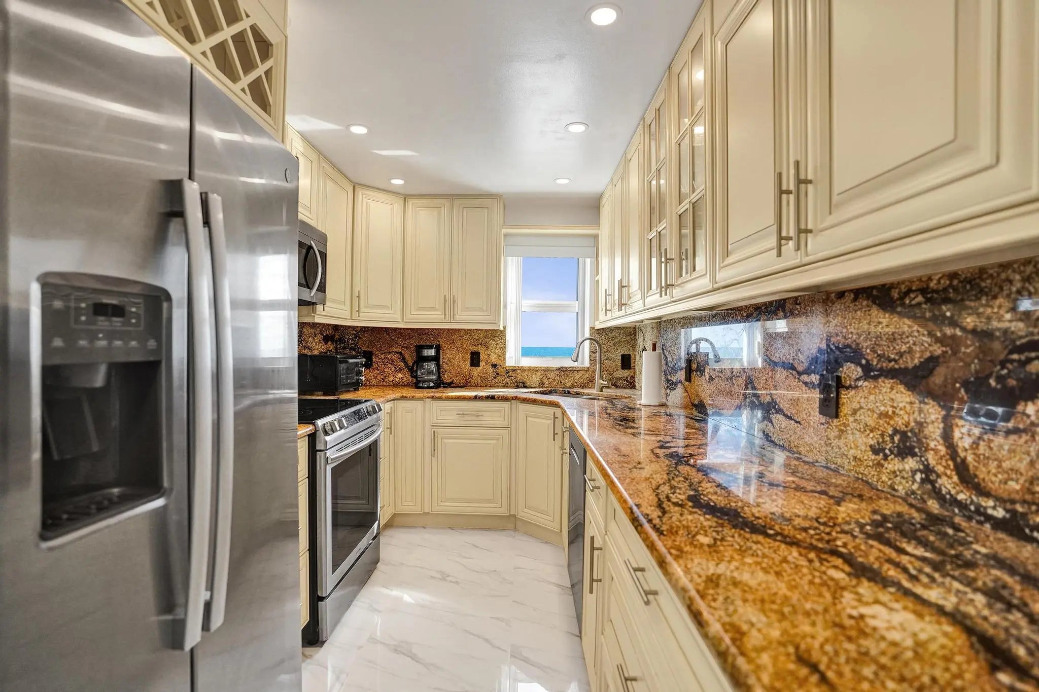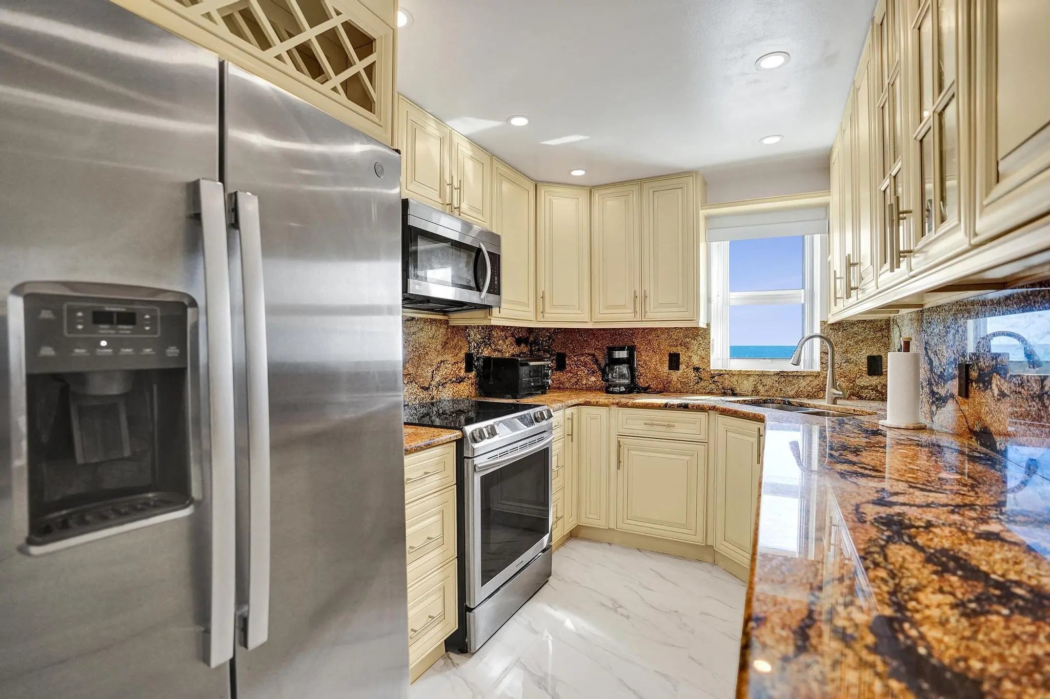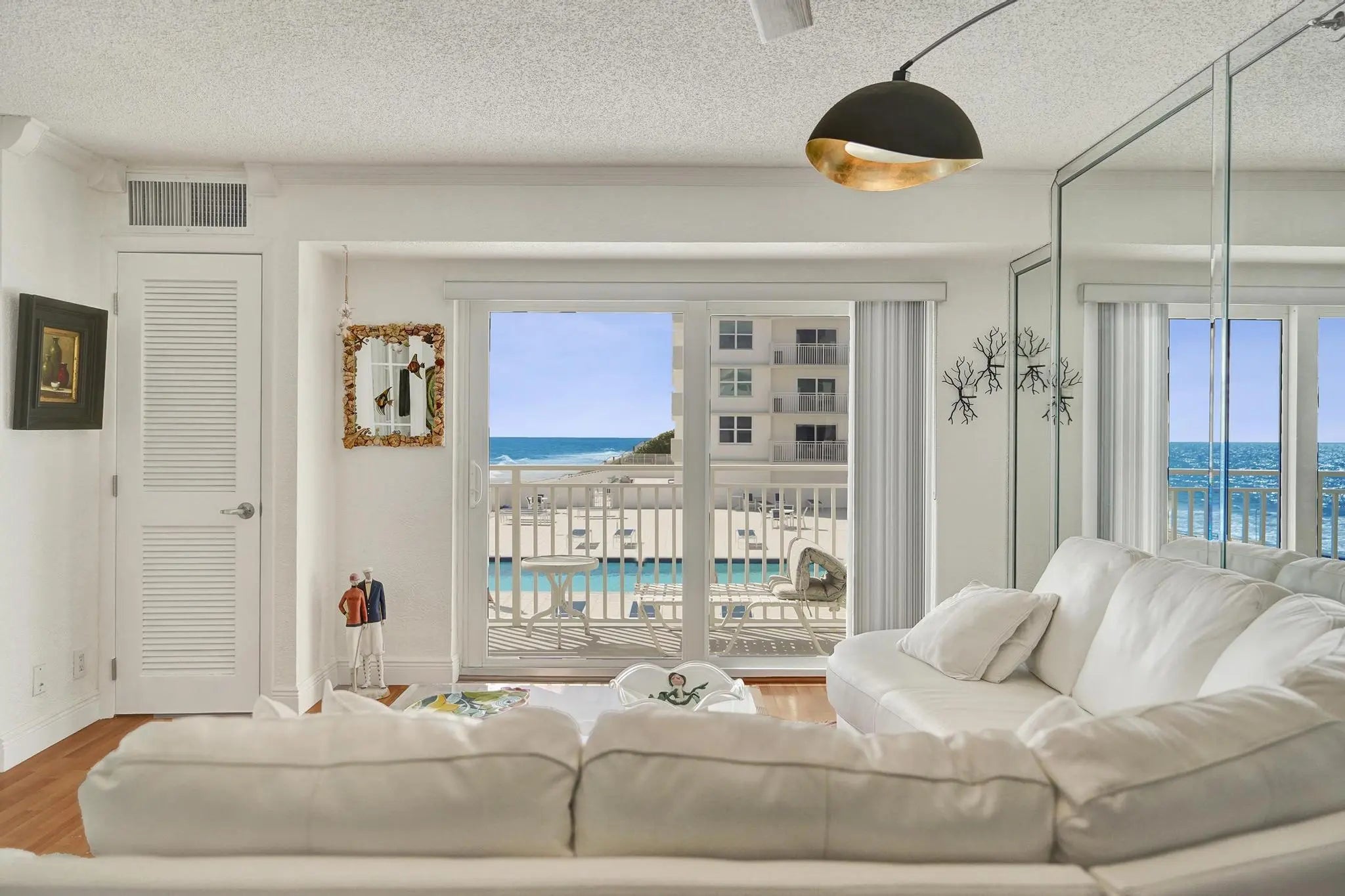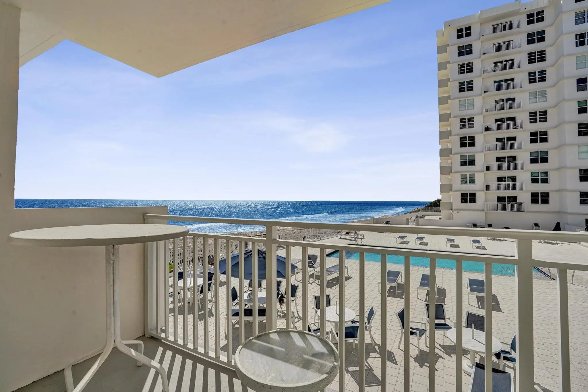 Welcome to 45 Ocean Direct corner ocean view, where every day feels like a vacation. Experience the serenity of oceanfront living in this beautifully designed 2-bedroom, 2-bath corner unit residence located in one of the most sought-after communities on A1A. From the moment you arrive, the peaceful sound of the waves and the scent of the ocean breeze invite you to slow down, unwind, and embrace true coastal living. This desirable first-floor unit offers effortless comfort with direct ocean views and a covered parking space conveniently located near your front lobby. Inside the bright open living area flows seamlessly to a private patio where you can sip your morning coffee as the sun rises over the Atlantic. The gated community with 24-hour guard entry ensures peace of mind and privacy, and resort-style amenities oceanfront pool, fitness center, and clubhouse create the feeling of being on a permanent vacation. Beautifully Updated with Breathtaking Views! Enjoy coastal living at its finest in this stylishly upgraded condo located directly on the sand. The modern kitchen features sleek cabinetry, stainless steel appliances, and elegant finishes, perfect for cooking and entertaining with an ocean view. Impact windows and doors throughout provide peace of mind, energy efficiency, and quiet comfort while letting in the beauty of the sea. The open-concept living area flows seamlessly to a private balcony where you can relax and take in the sunrise or listen to the waves. Perfectly positioned along scenic A1A, you're just moments from Downtown Delray Beach, where fine dining, boutique shopping, and vibrant nightlife await. The home incudes many upgrades and Whether you're seeking a full-time residence, a winter escape, or an investment in paradise, 45 Ocean offers the best of South Florida coastal living. Don't miss this rare opportunity to live steps from the sand and minutes from the heart of Delray Beach where every sunrise reminds you that you've truly found home.