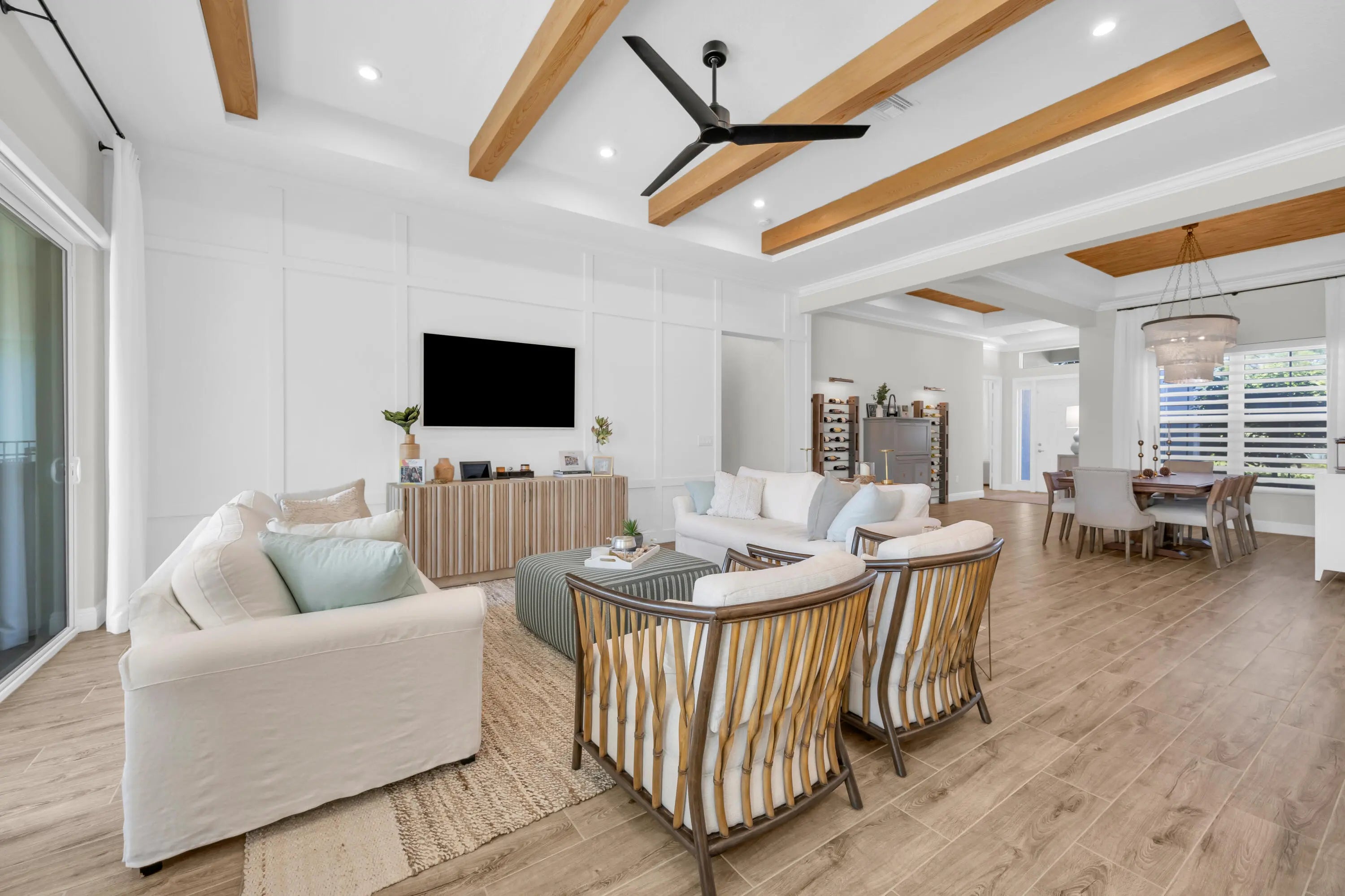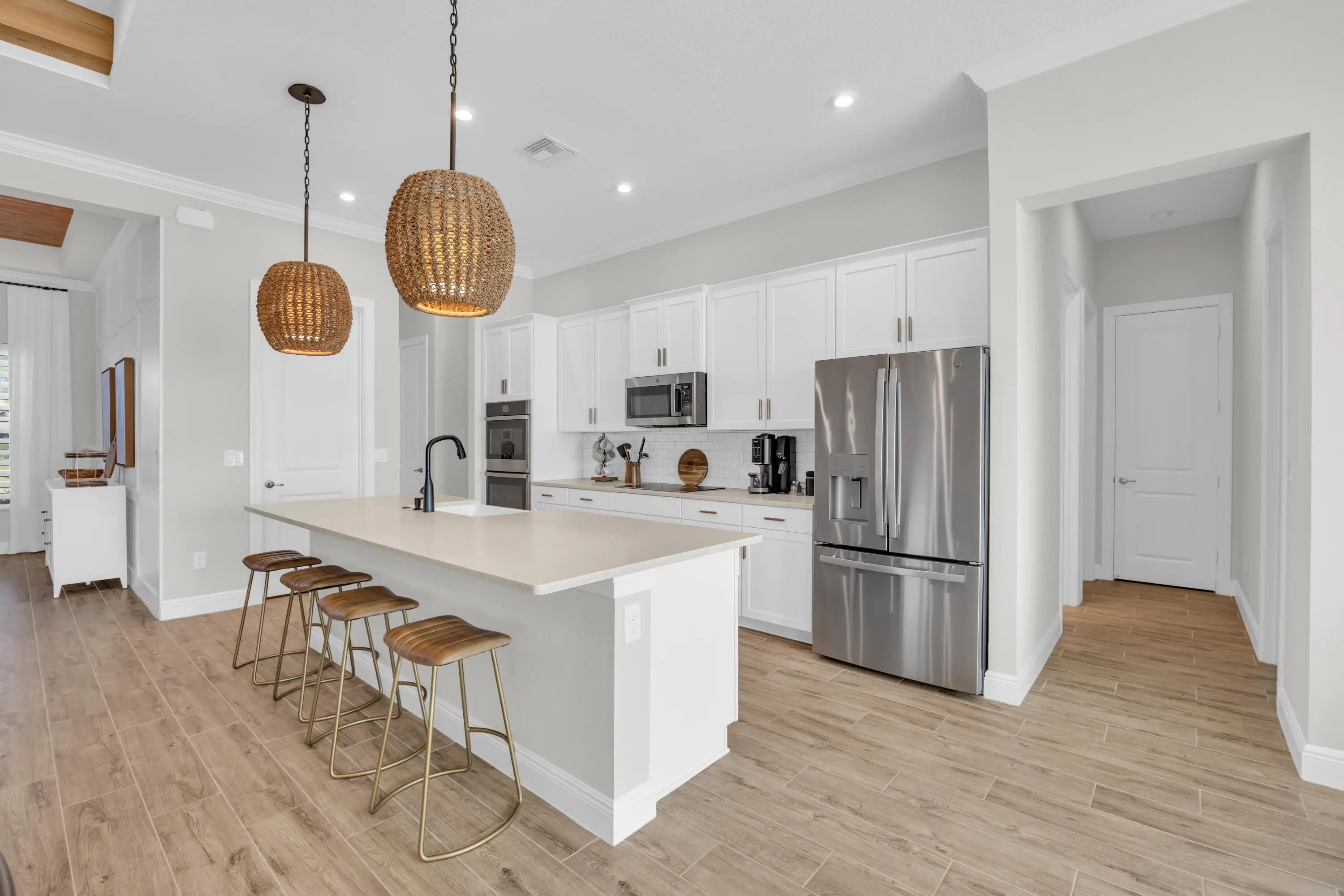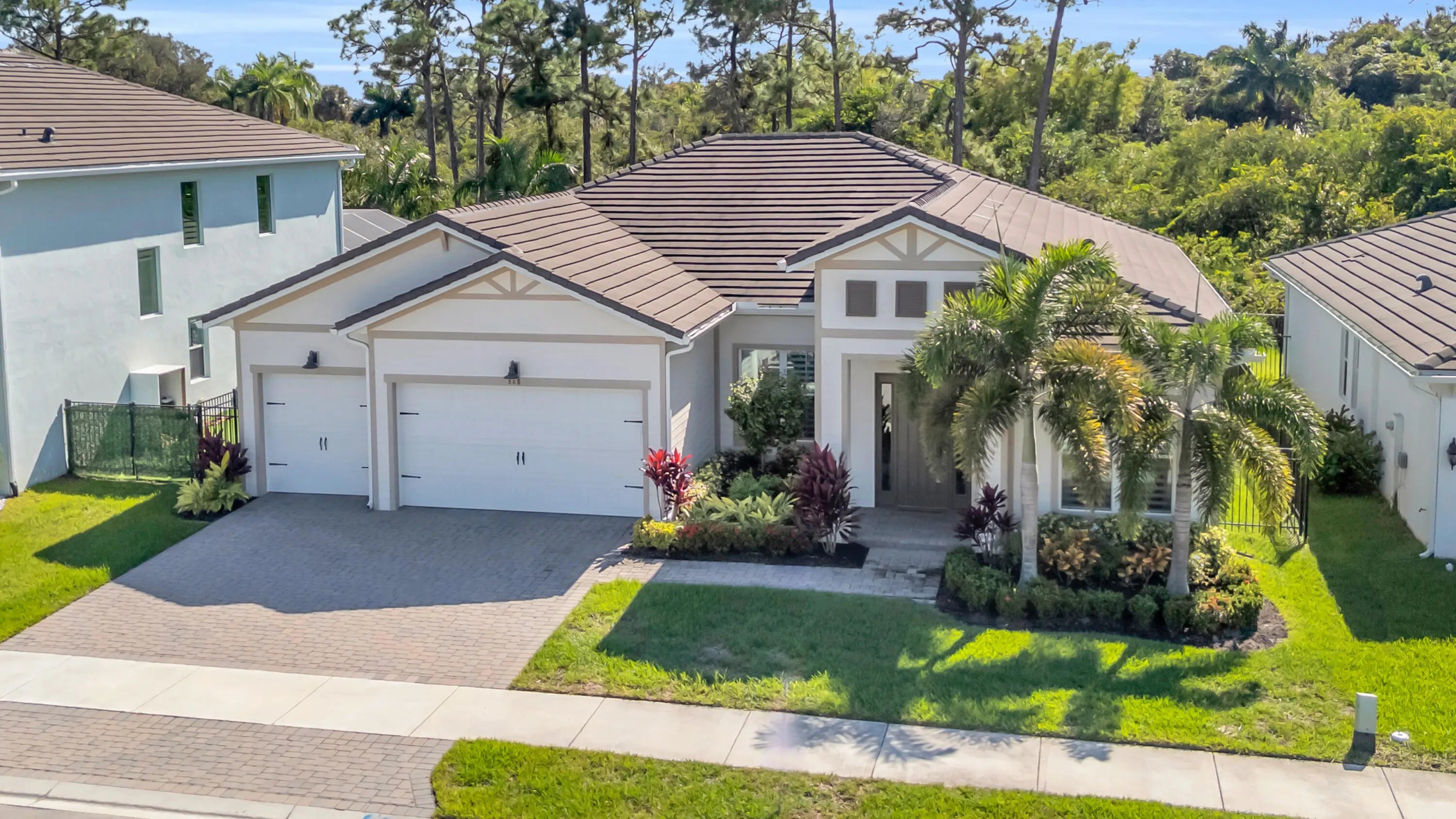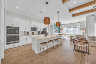 Impeccably built in 2022, this stunning 3 bedroom, 3 bathroom residence with a 3 car garage is the home you've been waiting for! From the moment you enter, you'll be captivated by the warm tones, refined craftsmanship, and effortless livability throughout. Perfectly positioned on a premium homesite in the most secluded enclave of Banyan Bay, this home offers tranquil preserve views and exceptional privacy. Inside, soaring ceilings and oversized wood-look tile flooring create a bright, airy atmosphere within the open-concept layout. The expansive great room flows seamlessly into the gourmet kitchen, featuring quartz countertops, double wall ovens, a sleek cooktop, and modern cabinetry. This space was designed for both the home chef and the entertainer.The owner's suite is a true retreat a coffered ceiling and a custom spa inspired bathroom featuring a luxurious soaking tub, oversized walk in shower, and beautifully crafted cabinetry. Every closet includes custom built-ins, and the third bedroom offers an en suite bathroom for added comfort. A whole-home water filtration system provides an additional touch of convenience and care. Step outside to the screen enclosed covered lanai, ideal for year round relaxation or entertaining in total privacy, with plenty of room to add a future pool and spa if desired. Located in the gated community of Banyan Bay, residents enjoy a low-maintenance lifestyle with lawn care, irrigation, quarterly pest control, and fertilization. Community amenities include St. Lucie River access with a fishing dock, kayak/paddleboard launch, rinse station, and gazebo. The clubhouse features a fitness center, heated pool, activity room, and catering kitchen perfect for gatherings or simply enjoying the Florida lifestyle.