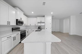 This home is finished and ready to move in now! Ask about builder incentives. This custom new construction Seaside model features 4 bedrooms, 2 bathrooms, IMPACT windows, an enormous walk-in shower in master with two shower heads and frameless glass door and enclosure, oversized shower tile to the ceilings, 8 foot doors, 42 inch white shaker cabinets with soft close doors and drawers, quartz countertops,plank tile throughout the home (NO CARPET), 9'4'' ceilings, big baseboards, covered back porch, walk in closets, island in the kitchen, stainless steel appliances including the fridge. All these upgrades and situated in the popular White City.
