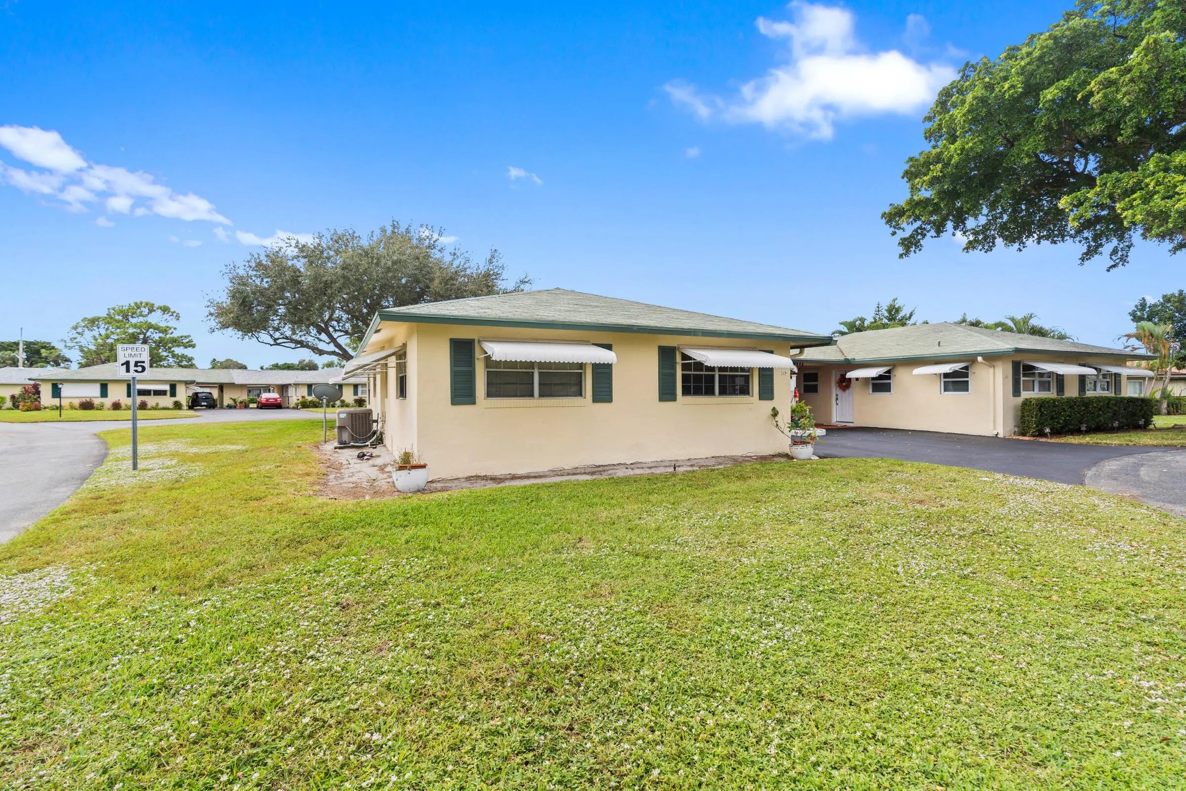 Beautifully maintained and tastefully upgraded, this spacious corner-lot villa is located on a quiet circle within one of Delray Beach's most welcoming 55+ communities, Country Manors. Residents enjoy an exceptional lifestyle with access to eight heated swimming pools plus a main pool at the clubhouse, along with a fitness center, billiards room, shuffleboard court, and a full calendar of organized social activities. Inside, this roomy villa features two en-suite bedrooms with upgraded bathrooms, new stainless steel appliances, a private driveway, one-car carport, an enclosed porch that would make a great third bedroom or office space, and a full-size washer and dryer located in a generous storage/laundry closet. The monthly HOA fee covers water, cable, lawn care, exterior maintenance, and clubhouse access, offering a truly effortless, low-maintenance lifestyle in a friendly and well-kept neighborhood. Whether you're seeking a full-time residence or a seasonal retreat, this home delivers the ideal blend of comfort, convenience, and community. Perfectly situated under 5 miles from Downtown Delray, I-95, beautiful beaches, shops, and dining, you're close to everything you need.