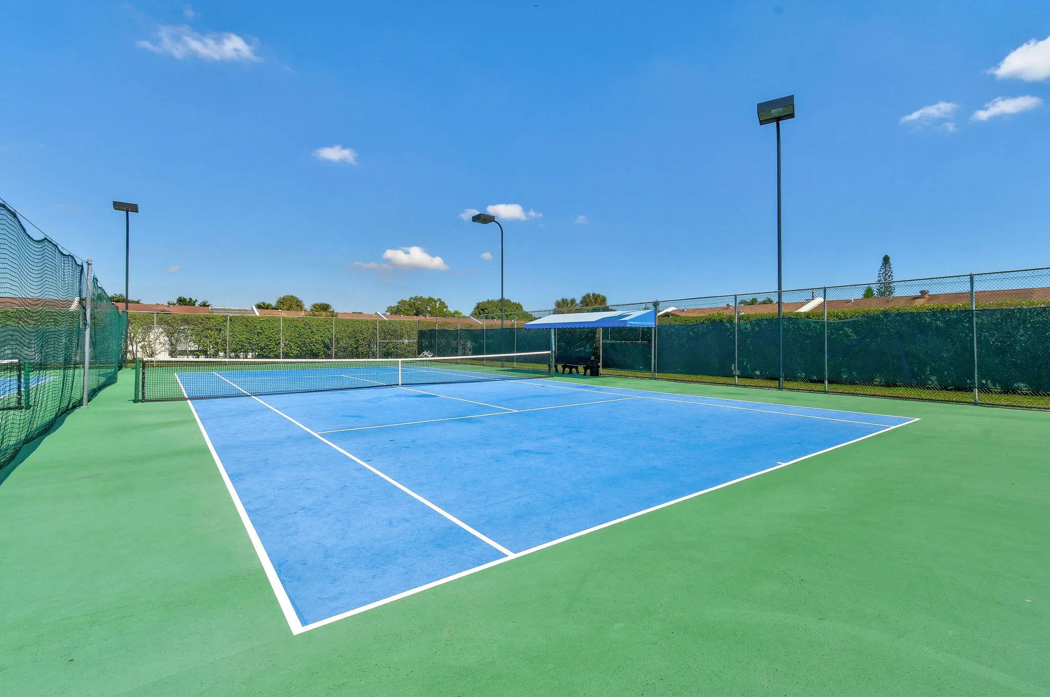 Basketball Court, Elevator(s), Fitness Center, Laundry, Pool, Shuffleboard Court, Tennis Court(s), Trash Chute, Bocce Ball, Pickleball Court(s), Sidewalks, Street Lights