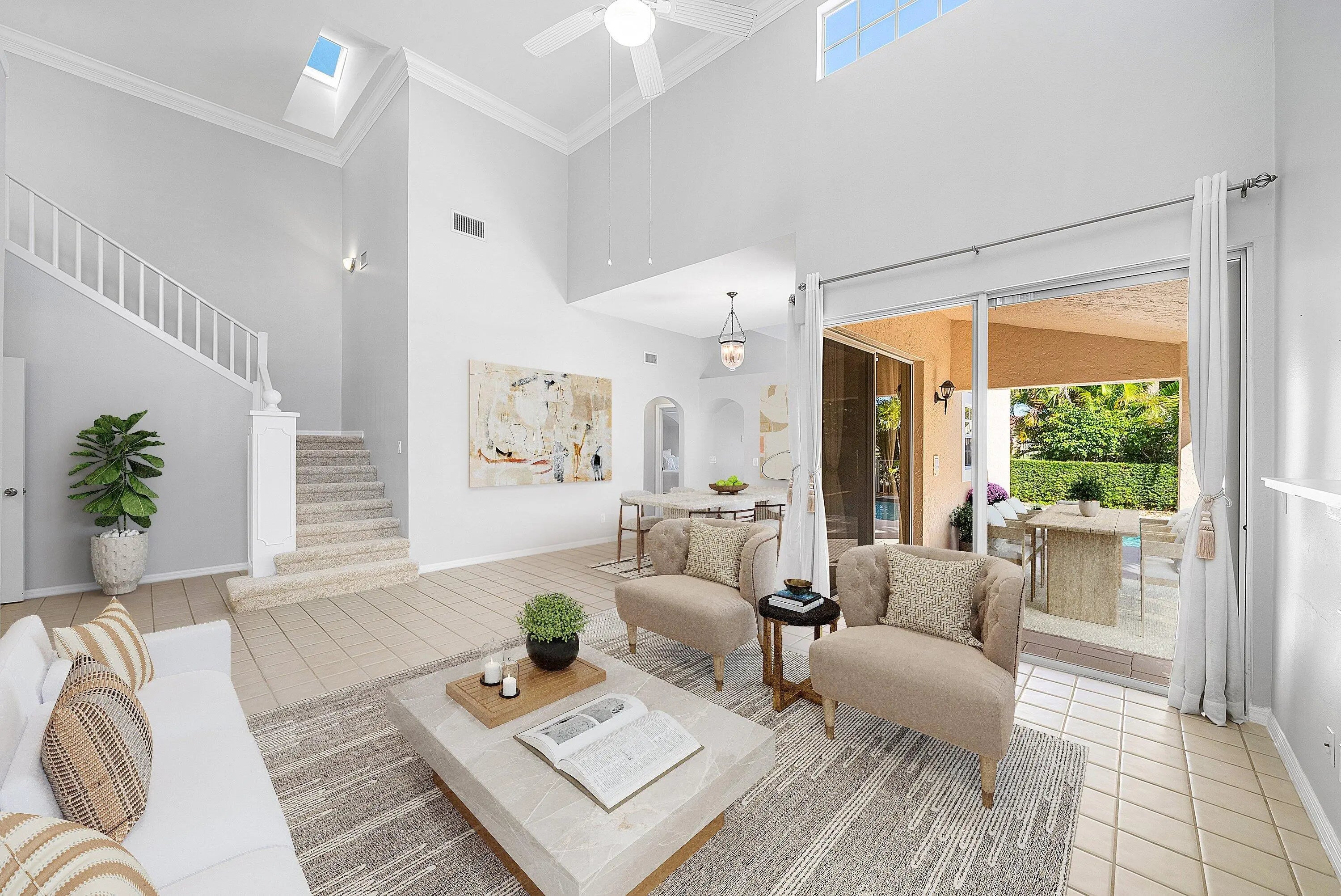 Live the prestigious PGA National lifestyle at the beautiful Barclay Club. Situated on the 15th fairway, enjoy exceptional expansive views of the Fazio golf course and fountain. This spacious single-family home with cathedral ceilings features 3-bedrooms and 2.5-bathrooms with a sunny, south-facing exposure. The living space, kitchen and primary bedroom provide direct access to the resurfaced pool and covered patio spaces for outdoor living and entertaining. Numerous updates throughout, including the roof, kitchen appliances, and plantation shutters. The spotlessly clean 2-car garage includes new Diamond flooring, water heater, and washer/dryer. No membership required. Ideally located in Palm Beach Gardens and close to fine dining, premier shopping and pristine beaches.
