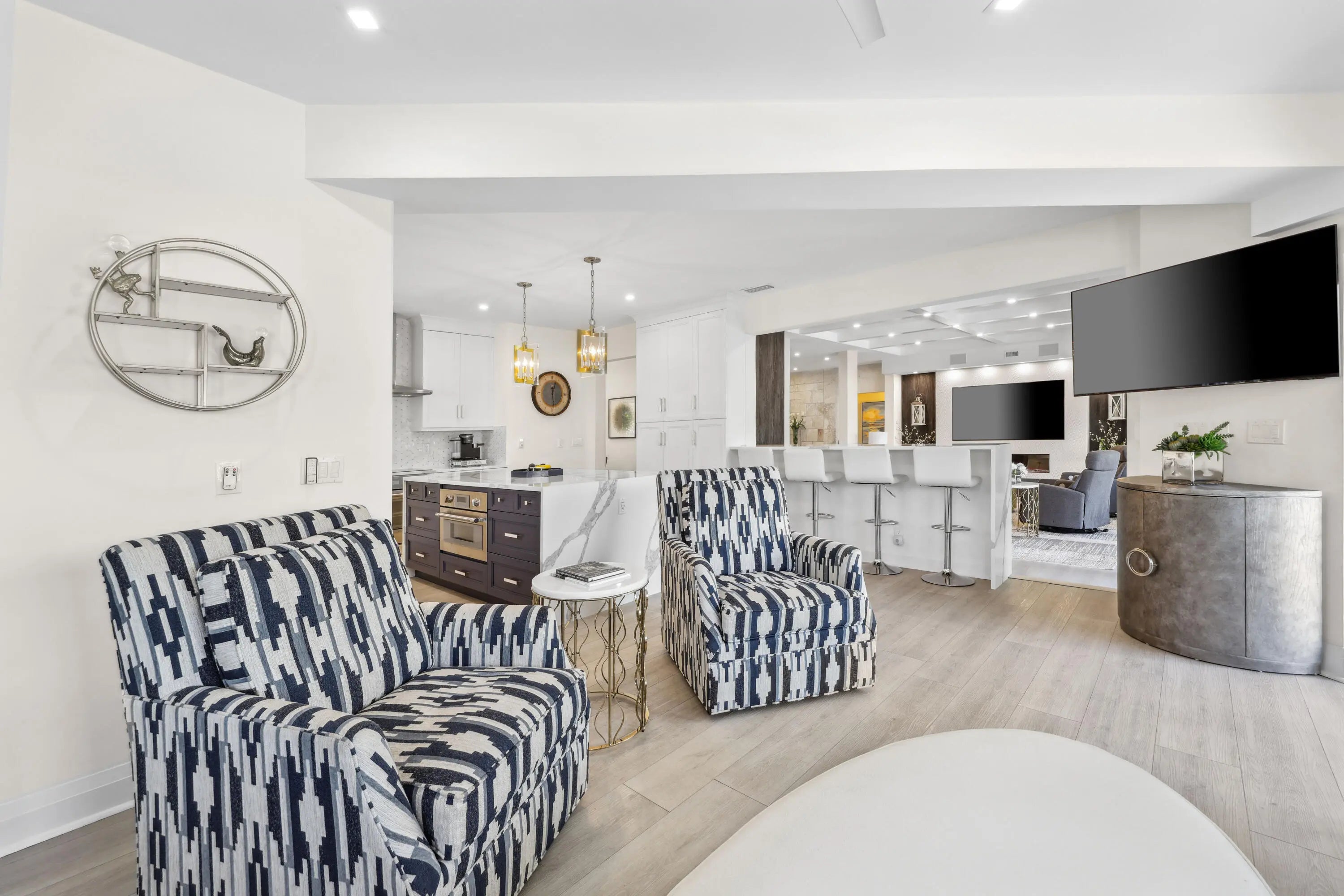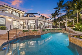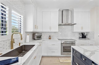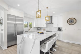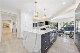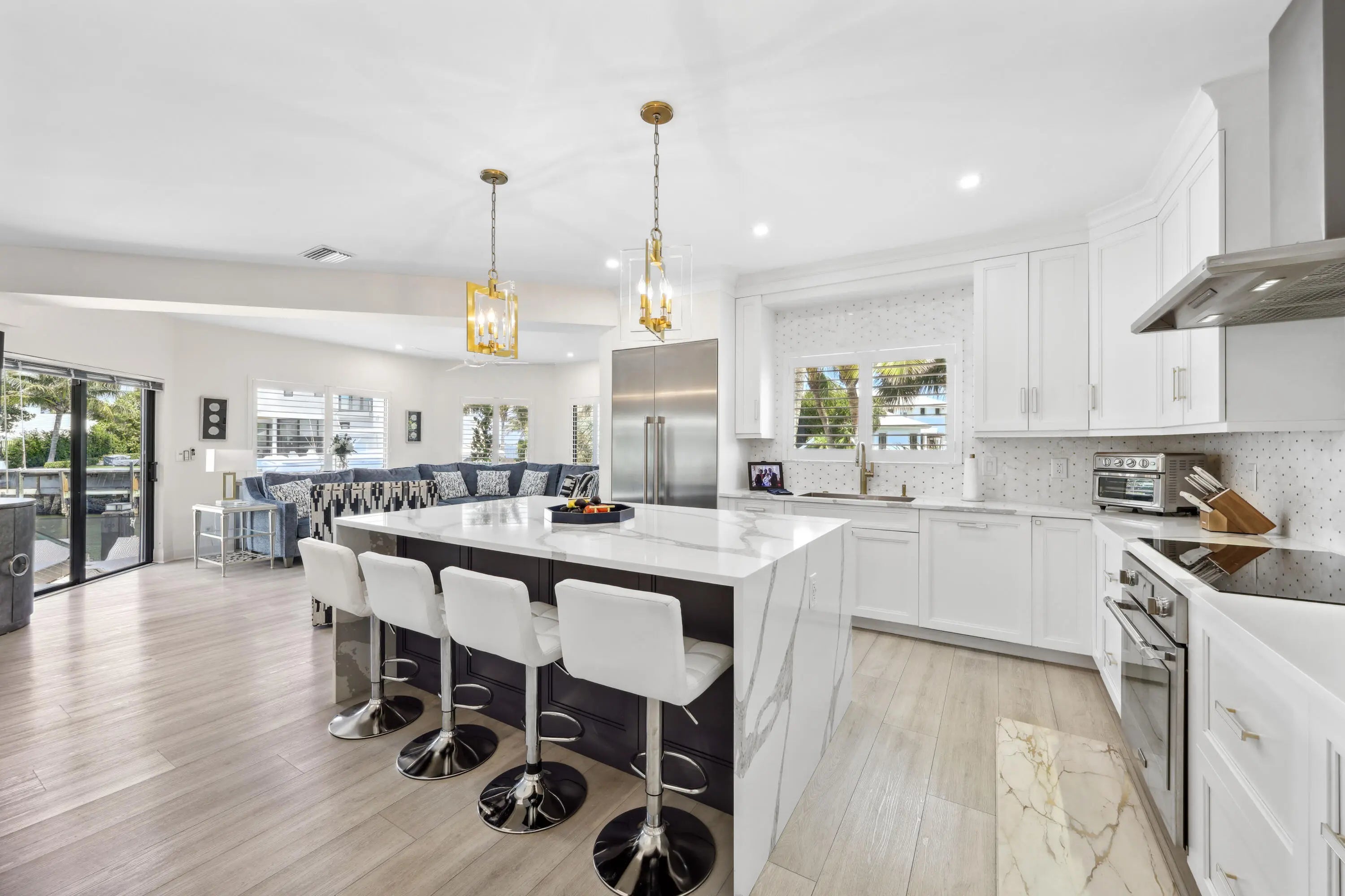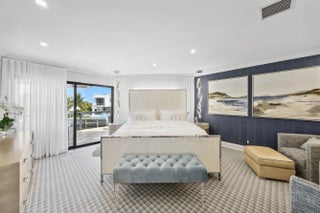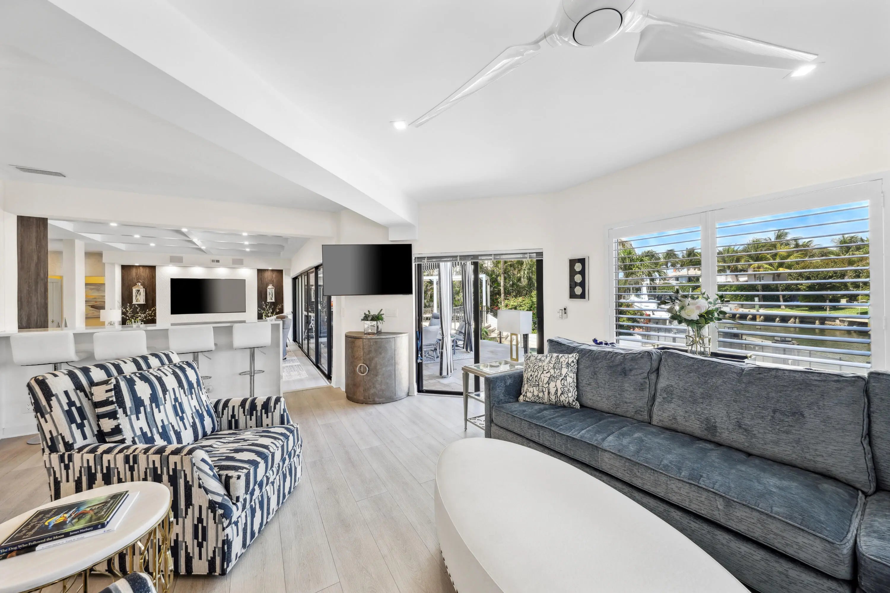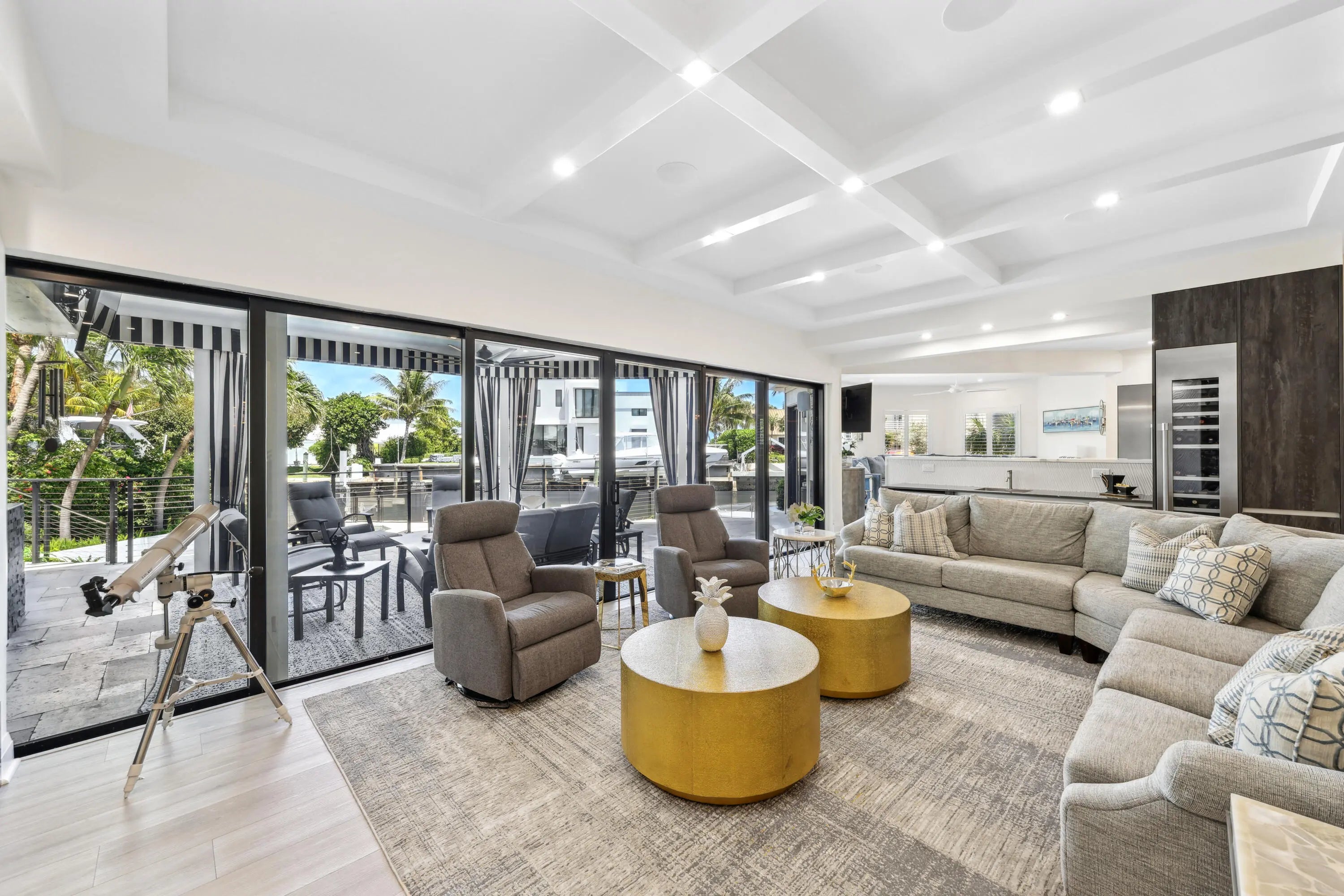 Welcome to the epitome of waterfront living in Ocean Ridge, just minutes south of iconic Palm Beach Island. This stunning two-story contemporary home offers the ultimate blend of design, comfort, and lifestyle. Ideally positioned on a deep-water canal with a 92-foot dock and just five minutes from the ocean, it's a dream setting for boating enthusiasts. Designed by acclaimed New York interior designer Joseph Stabile of JR Cattington Design, every detail of this five-bedroom, five-and-a-half-bath residence exudes elegance and sophistication. Each bedroom features its own en-suite bath, providing privacy and luxury for residents and guests alike. The expansive open floor plan flows seamlessly from the warm and inviting media room to the large, eat-in kitchen outfitted with a premium Thermador appliance package. The home's heart extends outdoors to a grand pergola, ideal for al fresco dining, complete with a full outdoor kitchen including a gas grill, large griddle, ice maker, refrigerator, and sink. Retreat to the serene primary suite, where your spa-like bathroom awaits featuring a steam shower, a soaking tub, and direct access to a private terrace overlooking the tranquil water. Impressive large walk-in closet, bathed in natural light and framed by water views, add to the suite's allure. Step outside to your lushly landscaped oasis, surrounded by verdant greenery and swaying palm trees. The heated pool and spa anchor a spacious patio built for entertaining under the Florida sun. The dock is complete with custom-built cleats, piles, whips and fenders that will accommodate a vessel up to 60 ft. This Ocean Ridge estate offers not just a home but a refined, relaxed lifestyle by the sea. Key Features: As a Harbor Island resident you will have access to the private McCormick Mile Beach Club which sits just moments away. Spend the day with your family enjoying the sand and surf, then return home to your gorgeous estate on the water. State of the art best in class full house water purification system Hurricane glass throughout the entire home along with steel roll -down shutters for added security and protection.