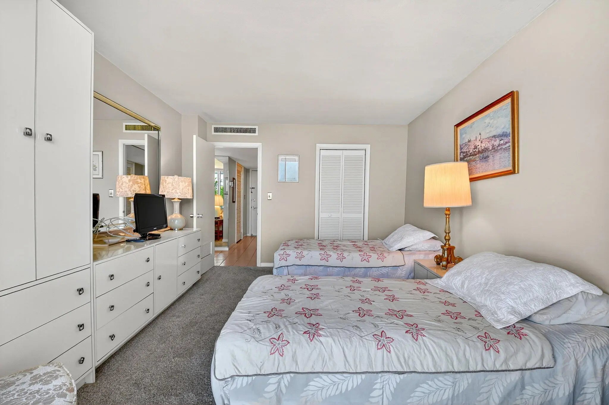 Just steps from the Atlantic shoreline, this charming 1-bedroom, 1-bath apartment embodies the relaxed elegance of true beachside living. Located within The President of Palm Beach—a historic and architecturally notable landmark—this unique residence blends retro character with timeless Palm Beach style at one of the island's most sought-after addresses. A spacious private balcony provides stunning sunset views over the Intracoastal Waterway, offering the perfect setting for outdoor dining, lounging, or simply unwinding in the tranquil coastal atmosphere. Residents of The President enjoy exclusive deeded beach access directly across A1A, along with a beautifully landscaped pool area that feels like a private tropical retreat. This rare offering combines history, charm, and an exceptional waterfront location capturing the very best of Palm Beach living.