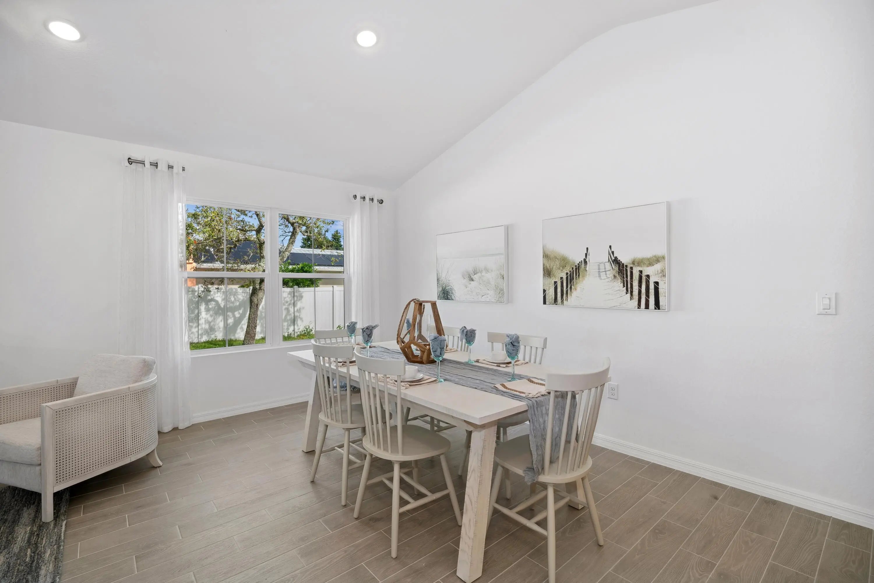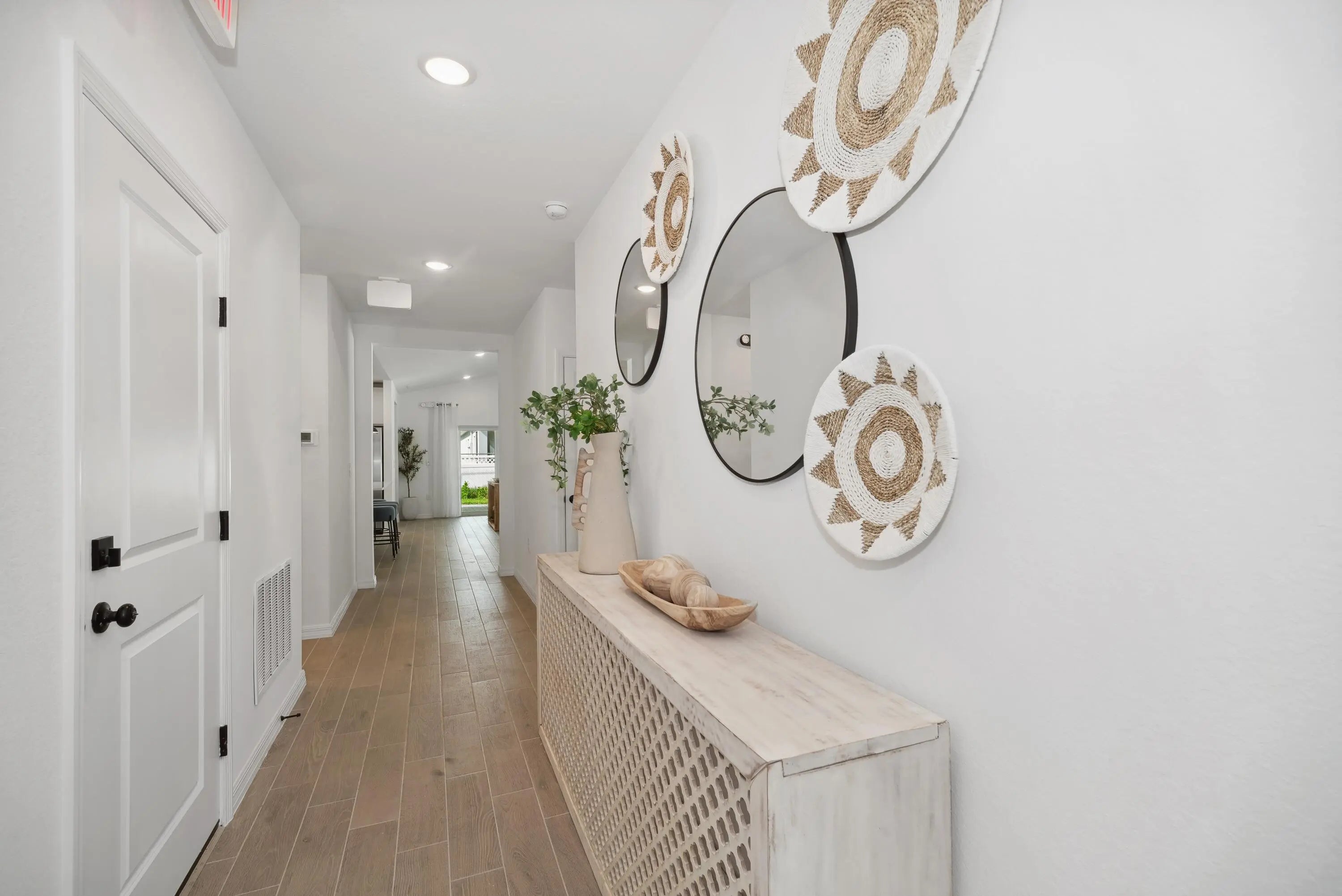Gorgeous Passionflower model with our signature Extra Suite Plus: a private living area, bedroom, bathroom and entry connected to the home. This space can be used for friends and family visits or extended stays; rental opportunity, or work space. This home is styled with a modern farmhouse vibe and features white cabinets, plank, tile flooring throughout; impact glass and full irrigation. Situated in a quiet residential area with NO HOA, the home offers quick access to shopping, dining, and everyday conveniences.
