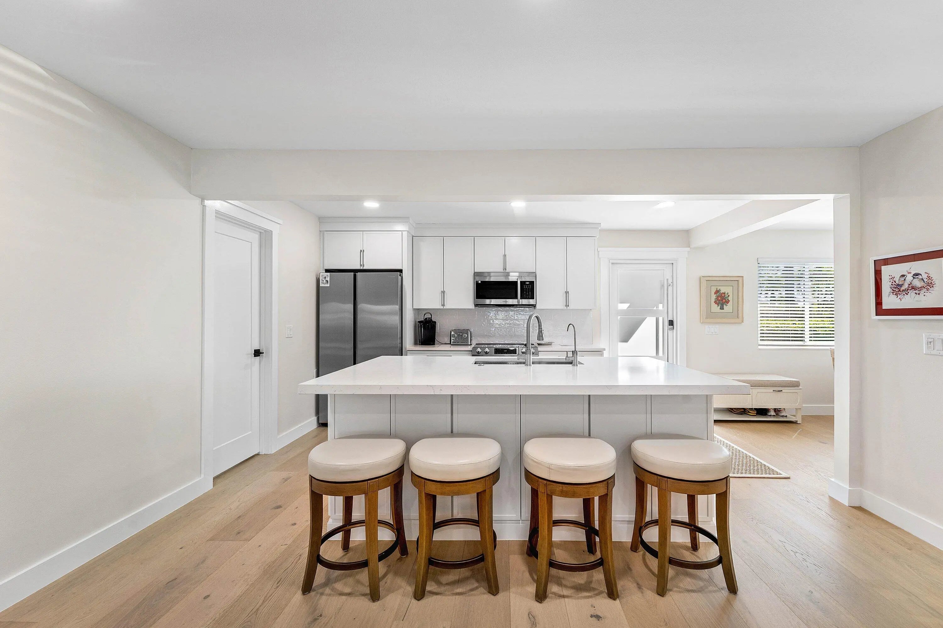 This beautifully redesigned 2-bedroom, 2-bath residence is nestled within the prestigious Eastpointe golf community, delivering an exceptional blend of elegance, comfort, and the signature South Florida lifestyle. Completely renovated from top to bottom, this home showcases exquisite dolomite marble, high-end fixtures, custom trim work, elegant interior doors, and a brand-new gourmet kitchen with premium appliances, island has added storage cabinets. The open-concept layout is bright and inviting, featuring soaring ceilings and seamless indoor-outdoor flow—all enhanced by new hurricane impact windows and doors for maximum safety, energy efficiency, and peace of mind. The home also includes a dedicated golf cart garage, offering convenient storage and access to the community's two.. golf courses. A series of major 2025 upgrades elevates this home even further, including: New Air Conditioner installed June 2025 New Water Heater installed May 2025 Whole-House Water Treatment System with Reverse Osmosis (May 2025) Custom Closets Throughout (May 2025) New Washer and Dryer Step outside to your private patio and enjoy sweeping golf course views and the best sunset views in all of Eastpointe, the perfect setting for morning tranquility or evening relaxation. This prime location also places you just steps from the subdivision pool and the East Clubhouse restaurant and bar, making everyday living feel like a resort getaway. Ideally situated near Jupiter, I-95, top-rated schools, upscale dining, and Palm Beach County's pristine beaches, this home offers unmatched convenience and luxury. Eastpointe residents also enjoy access to the new state-of-the-art fitness center, resort-style pool, two championship golf courses, and a vibrant, amenity-rich community.
