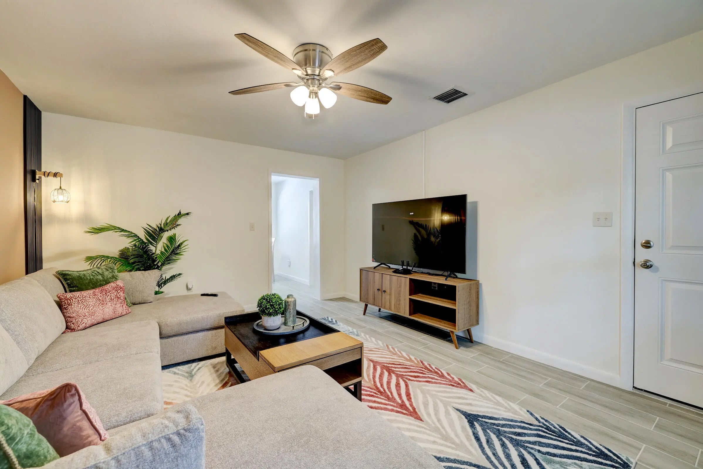 FURNISHED & Completely remodeled 2 Bedroom, 1 Bath Villa with all brand new furnitures and furnishings, cookware, towels, pots and pans etc...just bring your toothbrush. With over 800 of comfortable living sqft, roomy enough. Tiled throughout, comes with its private washer/dryer, private front porch, back patio and parking (with available EV chargers for xtra fee). WIFI, cable, lawn maintenance included. 24 hour lighting and camera system for common areas. Play area, Gas BBQ Grill. Small pets welcome. Less than 15 minutes drive to the beach, Close to downtown, great restaurants.