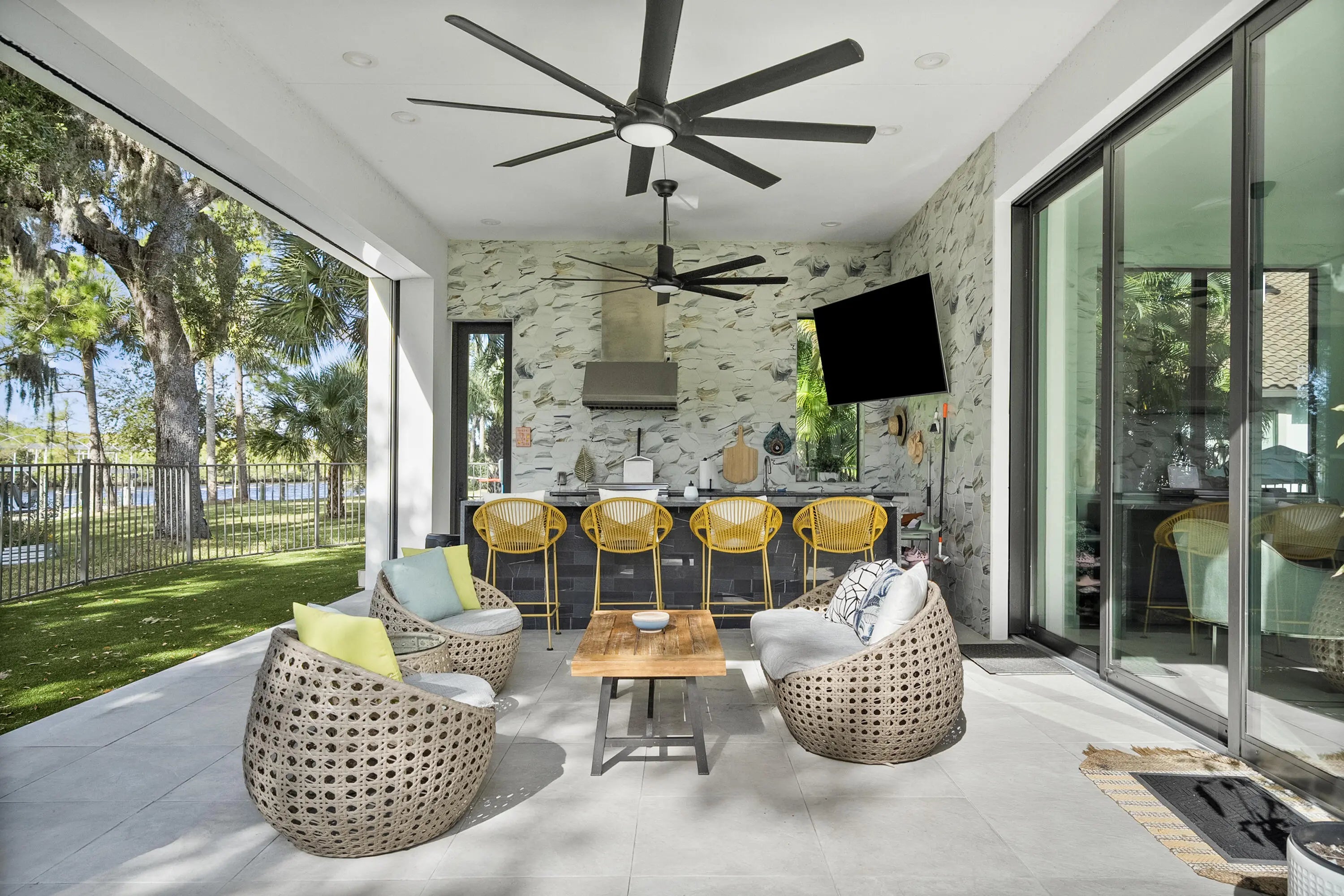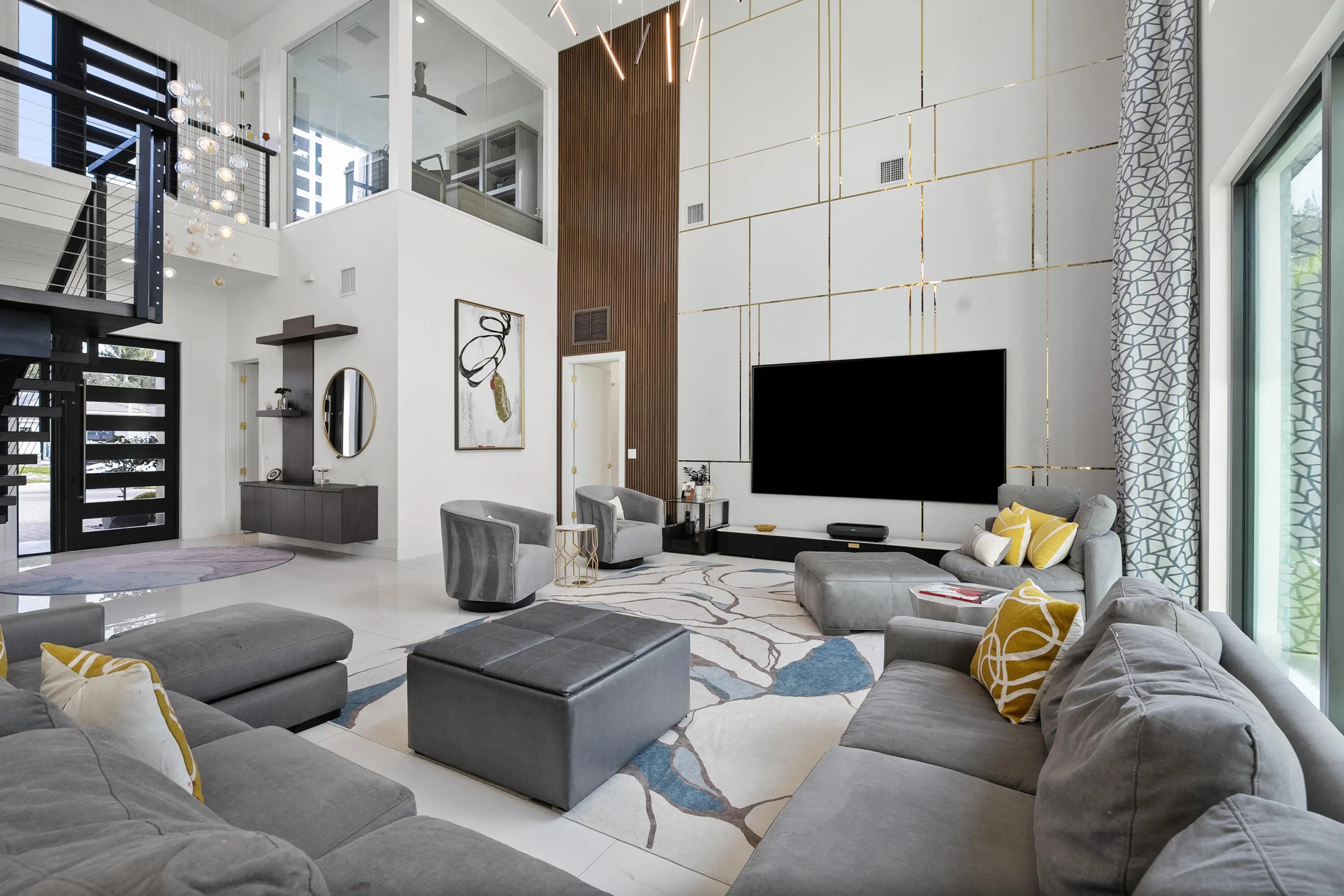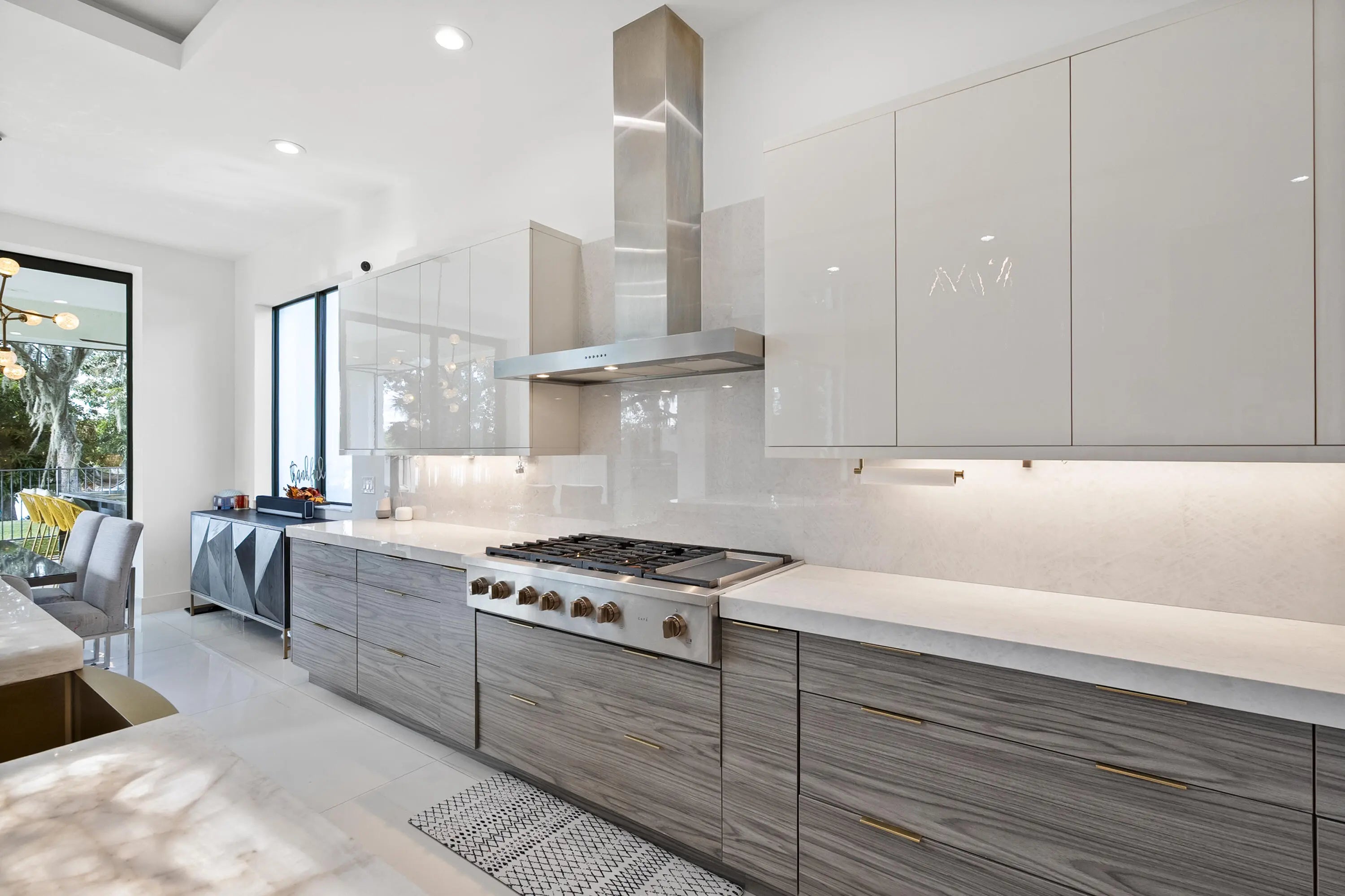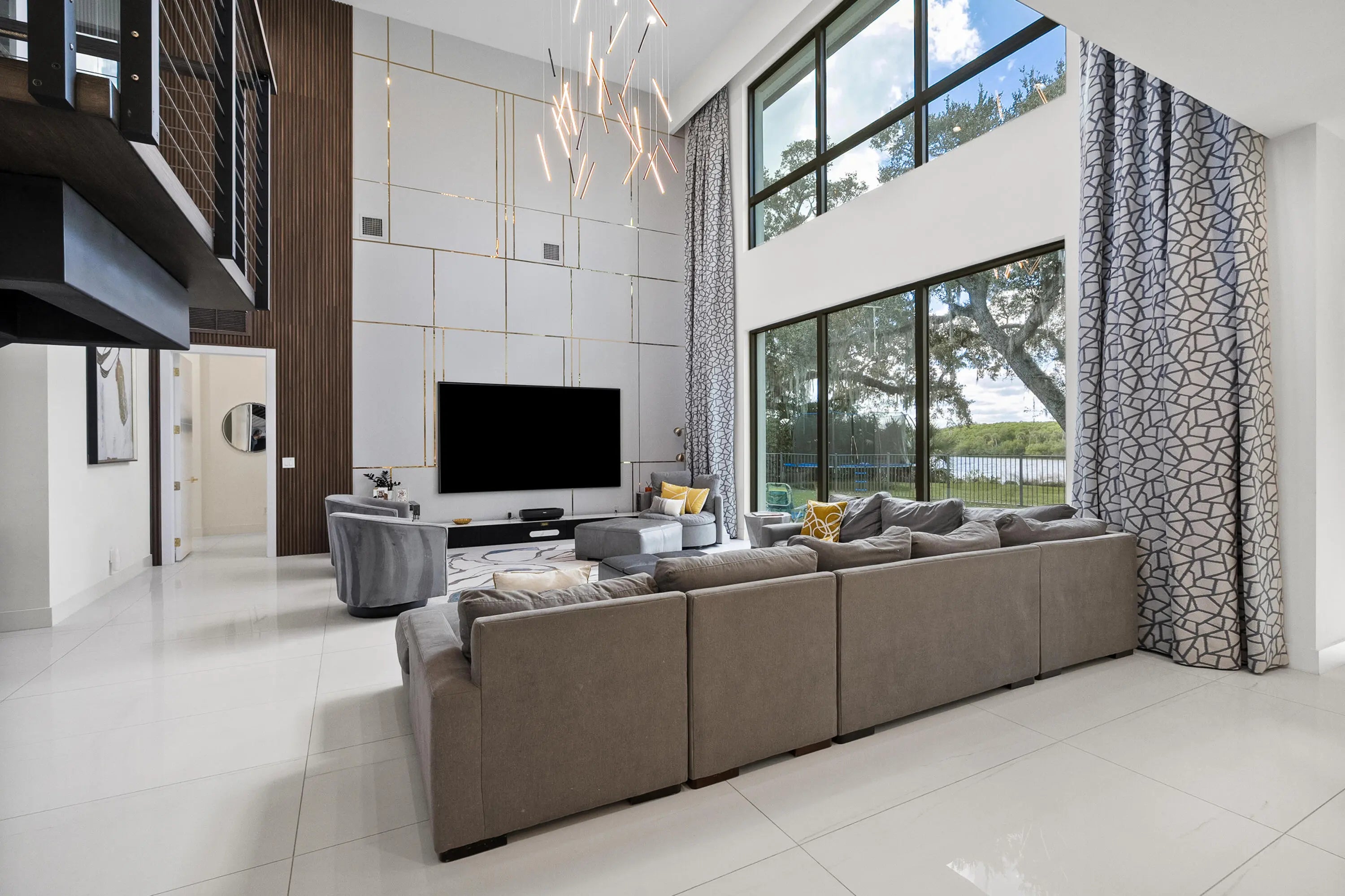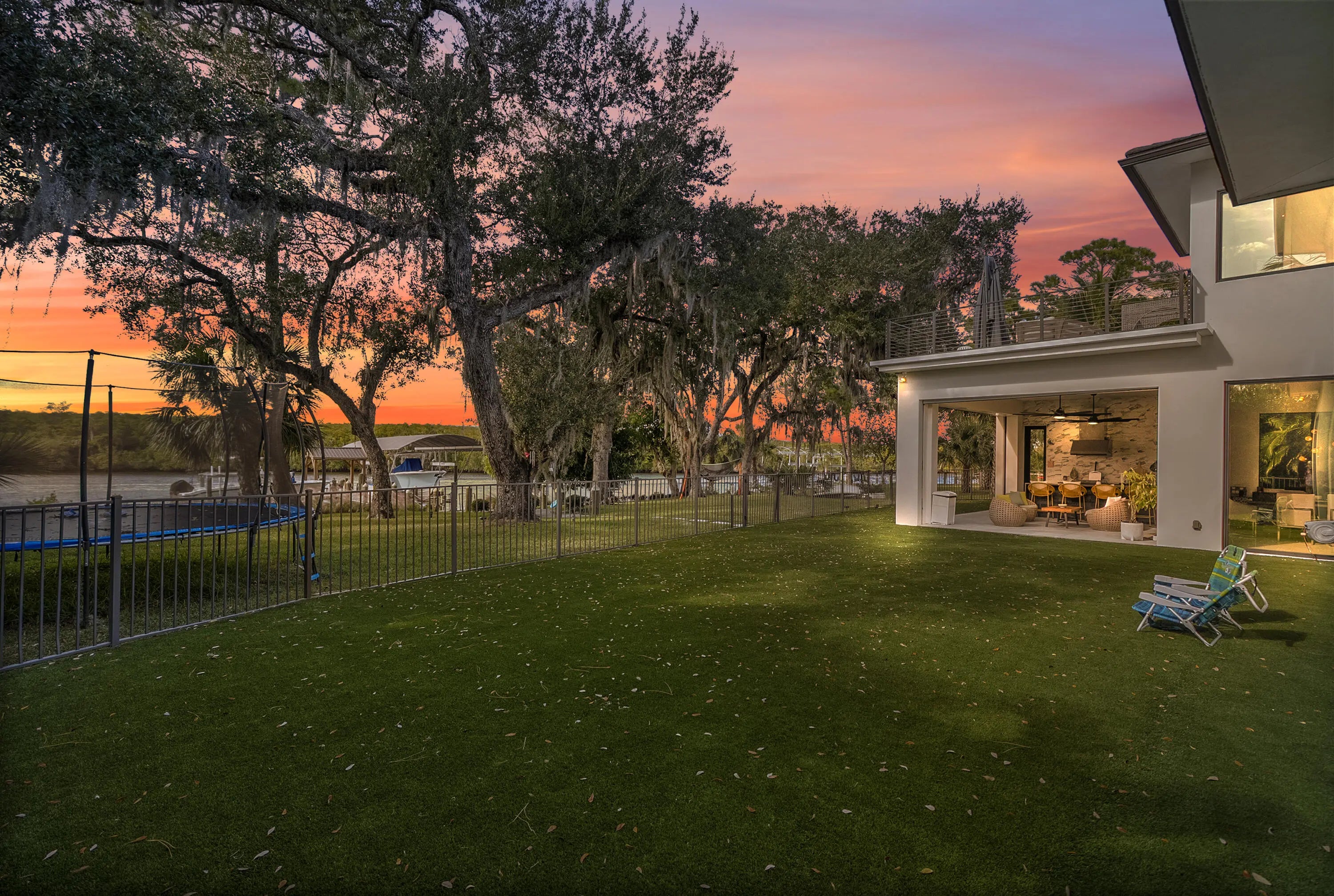 Experience modern waterfront luxury in this stunning contemporary masterpiece with impressive open floor plan and designer upgrades and finishes! This custom-built home showcases a sleek European kitchen with an illuminated quartz island, extra-large Frigidaire refrigeration, and premium finishes throughout. Luxurious master bedroom suite overlooking the water! Indulge in spa-quality details like the illuminated agate shell bathroom countertop and beautifully designed custom closets. With complete impact glass, a striking modern façade, whole-home water softener, and seamless indoor-outdoor living enhanced by roll-down patio screens, comfort meets style at every turn. The backyard is a true boater's paradise-featuring a 20,000 lb lift, 9,000 lb lift, 1,500 lb jet ski lift , and a secure sea wall, all set along a peaceful stretch of riverfront framed by breathtaking sunsets. Resort style waterfront living at its finest!