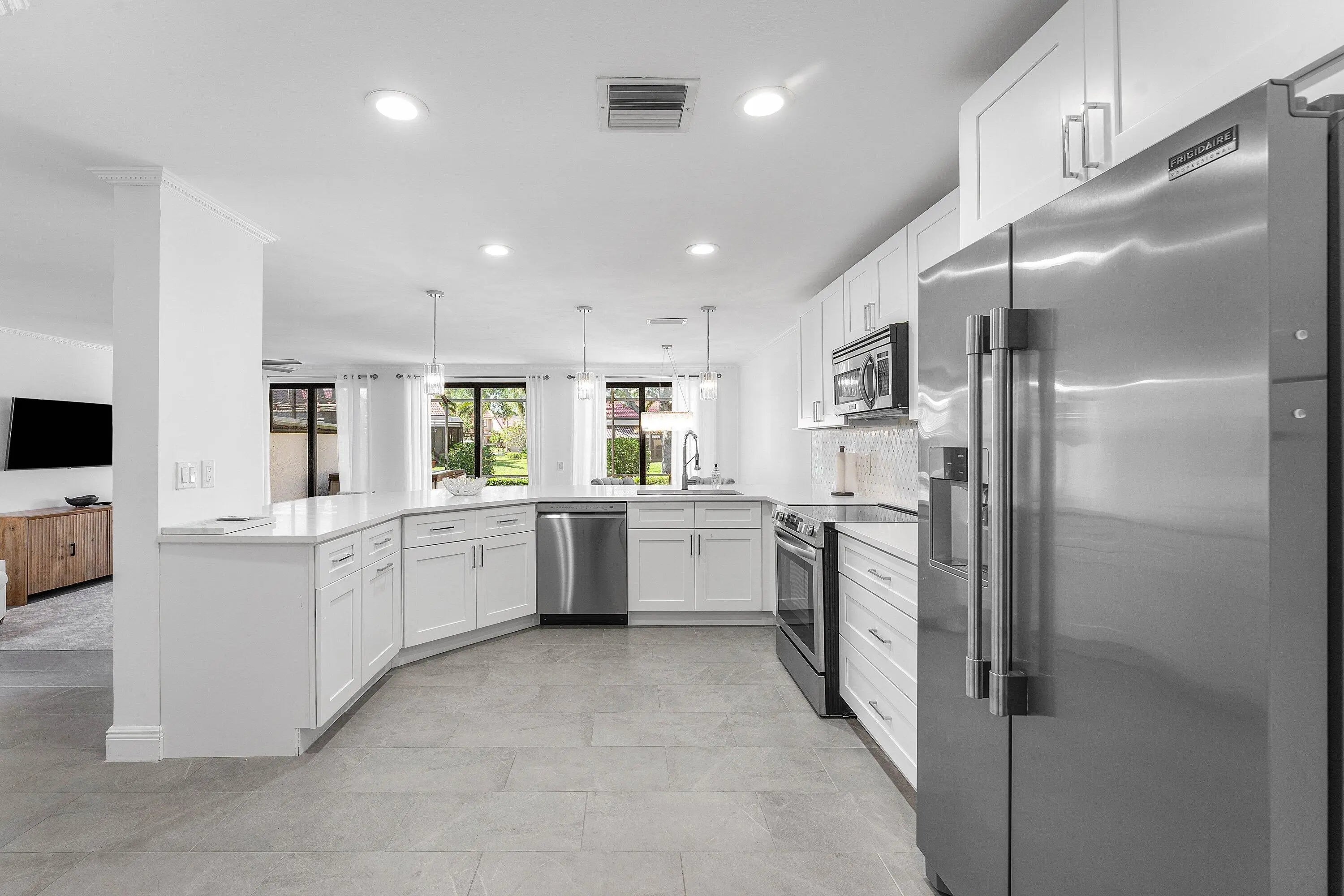 Fabulous and fully remodeled, 2-bedroom, 2.5-bath townhome with a one-car garage, 6 car driveway and New 2025 roof! Located in the prestigious PGA National! This beautifully updated residence offers modern finishes throughout, including a sleek kitchen with stainless steel appliances, stylish bathrooms, modern stairway and spacious living areas filled with natural light. Perfect as a primary residence, vacation home, or investment property.The open floor plan seamlessly connects the indoor and outdoor spaces, with a private patio & a wide treed garden space ideal for relaxing or entertaining. Bedrooms feature large walk-in closets, providing ample storage space. Located close to the community pool, you'll enjoy easy access to golf and recreation.Situated in the world-renowned PGA National