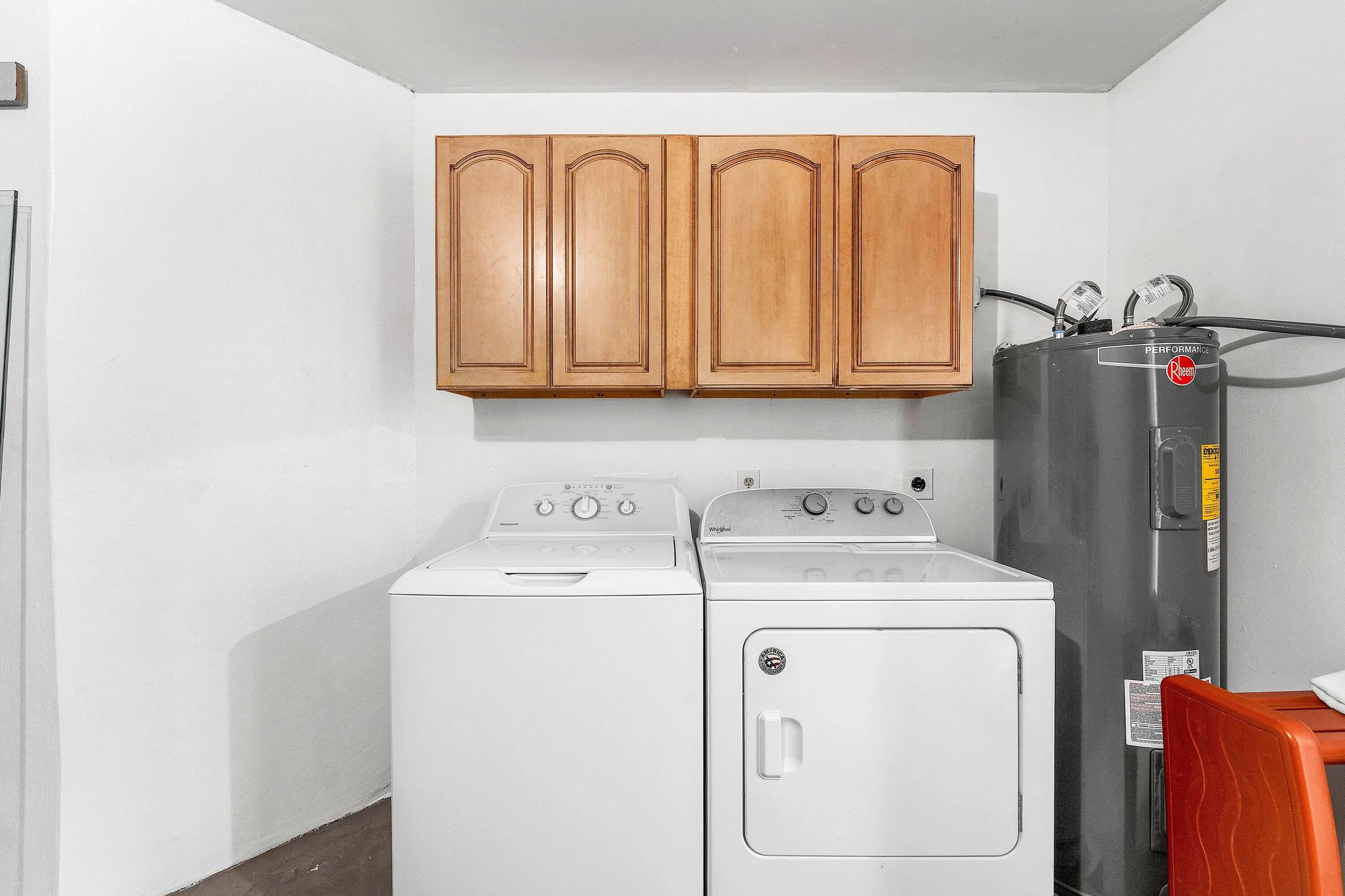 Electric Water Heater, Dryer, Disposal, Dishwasher, Electric Range, Microwave, Refrigerator, Water Heater, Washer