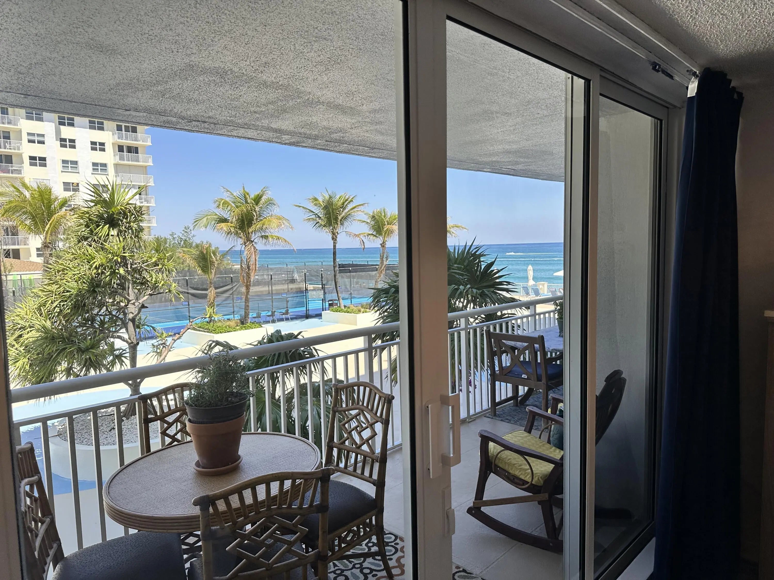 Welcome to the Barclay Condominium #327. This spacious 2BR/2BA residence offers over 1,400 sq ft of living space. The expansive balcony is ideal for indoor-outdoor living and entertaining, featuring a beautiful ocean view and desirable northern exposure. Features include new hurricane impact windows, deeded covered parking, a storage unit, a chef's kitchen with granite countertops, granite sink and premium appliances, and a state-of-the-art all-in-one washer/dryer. The Barclay is a well-maintained oceanfront condominium located in South Palm Beach with easy access to walking paths, nature preserves, shopping, dining, I-95, and Palm Beach International Airport. Residents enjoy a large heated oceanfront saltwater pool with cabana and BBQ area, tennis and pickleball court, fully equipped fitness center, male and female saunas, card room, business center, bike storage, lounge/library, large event room, and game room with billiards and ping pong. The garage includes two EV charging stations and a complimentary car rinse. The building features secure entry with 24-hour concierge service, multiple elevators, and on-site management. The Barclay has reserves in place and has completed engineering and milestone inspections. Schedule a showing today and purchase with confidence and peace of mind.