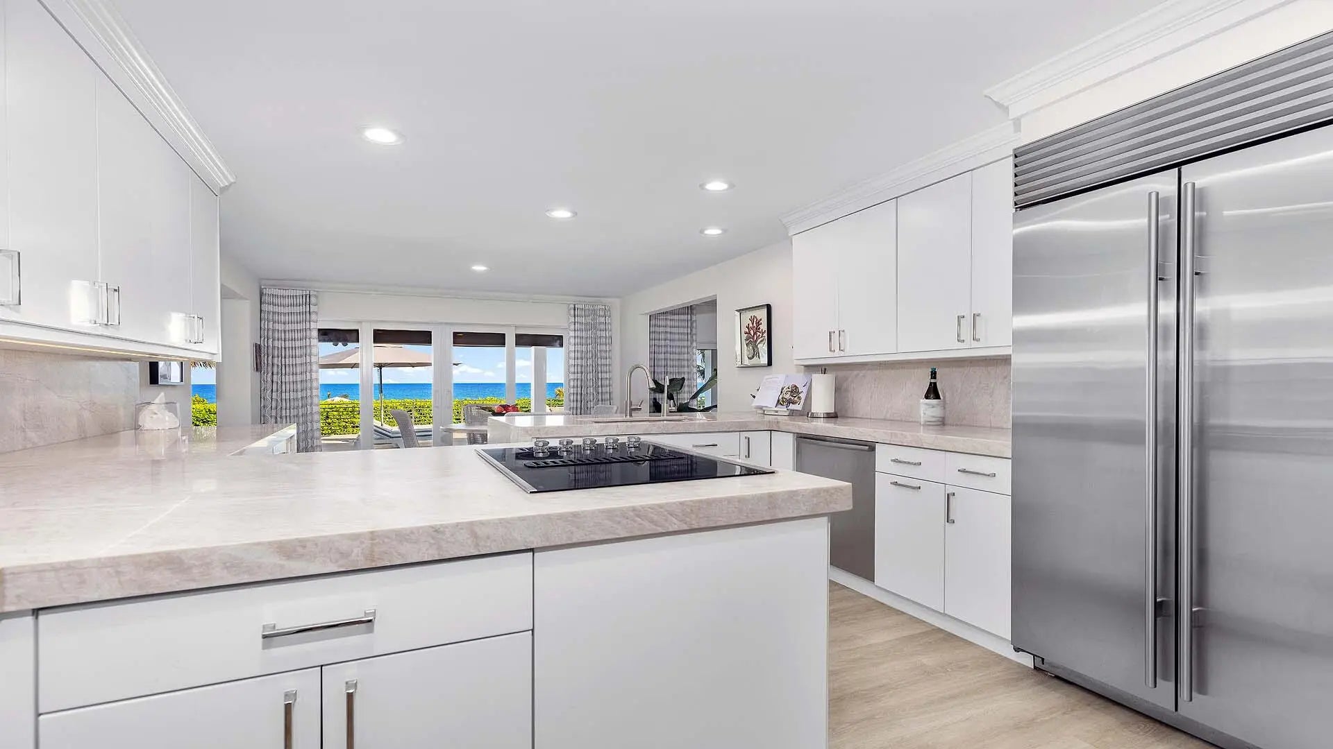 This meticulously renovated coastal property sits on a rare, 100-foot stretch of private, unobstructed ocean frontage, offering exclusive, direct beach access that leads straight to the Atlantic Ocean. This seaside retreat is perfectly positioned between A1A and the ocean. The residence offers the ideal blend of privacy, views, and an effortless beachside lifestyle. Perched on a high natural dune, the home captures expansive, uninterrupted ocean panoramas from the primary living spaces, pool, and the primary suite. Inside, every detail has been thoughtfully renovated. Outside, the new landscaping enhances the property's mature tropical backdrop. A Home Designed for Real Life and Real Flexibility One of the home's greatest strengths is its exceptional versatility. The entire ground level can be securely locked off, creating a private, self-contained suite ideal for visiting guests or residents alike. This self-contained floor includes: " Large entertainment and media area " Designer kitchen and dining space " Private en-suite bedroom " Gym with generous storage area and four-person sauna " Massage room It lives like a luxury guest house right inside your own home. Upstairs, the main level opens to spectacular ocean vistas. The bright, open-concept layout features multiple living areas, all connected to the outdoors by glass sliders that invite in ocean breezes and natural light. The kitchen boasts ocean views and a cozy breakfast nook, complete with the perfect "morning coffee with sunrise" moment built right in. Adjacent to these areas are a casual dining space and two generous living areas ideal for gatherings, entertaining and everyday living. Private Office Oasis (or a Second Primary Suite) The spacious, light-filled office sits apart from the main living areas, offering true privacy ideal for working from home or hosting meetings. With its own full bathroom and seating area, this space could easily be used as a second primary suite. Primary Suite with Oceanfront Serenity The elegant primary suite features: " Expansive ocean views " Direct poolside access " Luxurious bath with an oversized shower and soaking tub " Large double vanity " Bidet " Custom walk-in closet It's peaceful, private, and perfectly positioned to enjoy sunrise every morning. Outdoor Living: Where Every Day Feels Like Vacation The property's oceanfront setting delivers an exceptional outdoor experience: " Completely Renovated Heated Oceanside Pool perched above the dunes " New deck tiling and deck railing " Covered loggia perfect for relaxing or entertaining " Private path leading directly to your own white-sand beach " Beautifully landscaped grounds with abundant privacy In between the main property and the private beach dune is Old Ocean Boulevard, one of the area's hidden gems a quiet, scenic stretch perfect for outdoor activities with virtually no traffic. It feels like a coastal promenade reserved just for residents. Additional Features " Fully renovated two-car garage with epoxy flooring " Locked storage rooms for surfboards, beach gear, and bikes " Circular paver driveway with ample guest parking " 6,600+ sq ft under air / 9,500+ total sq ft " Up to six bedrooms / six baths and one powder room " Ideally situated between prestigious Palm Beach Island and vibrant Delray Beach. " Easy access to PBI and FLL airports " The Town of Ocean Ridge offers dedicated police and town hall