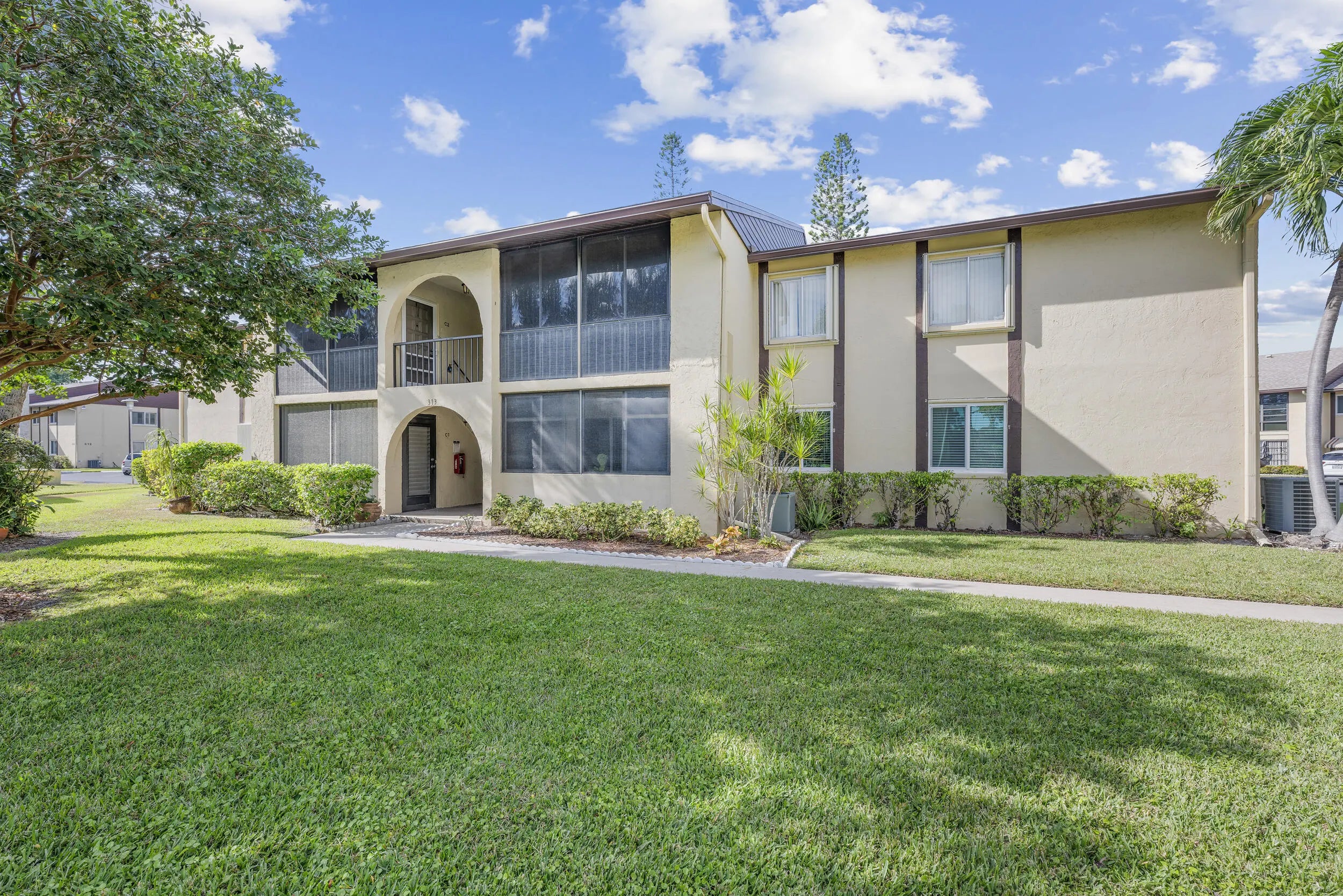 Beautiful, Bright & Move-In Ready! Seller Offering up to $5,000 Closing Cost Credit! Welcome home to this fresh, bright, and impeccably maintained 2-bedroom residence in the highly desirable Pine Ridge III community in Greenacres a quiet, centrally located neighborhood close to everything! This charming CBS-constructed unit checks all the boxes: NEW 2024 roof (fully paid), NO assessment debt, all NEW windows, full accordion hurricane shutters (including the porch), and new stainless steel appliances. Truly move-in ready! Step inside to a naturally lit, freshly painted interior with no carpet, new light fixtures, an updated electrical panel, and an energy-efficient water heater. The spacious layout features an open living and dining area, a comfortable kitchen, an updated bathroom with solid-surface/granite countertops, and a large in-unit laundry room. Both bedrooms offer generous walk-in closets. Enjoy a cozy covered front porch with an attached utility/storage closet and two assigned parking spaces right at your convenience. Community perks: low HOA that covers building insurance, exterior maintenance, landscaping, pool, tennis court, cable, and more. A fantastic opportunity for first-time buyers, downsizing, investors, or seasonal residents. Motivated seller don't miss this one! (Sizes on floor plan are approximate.)