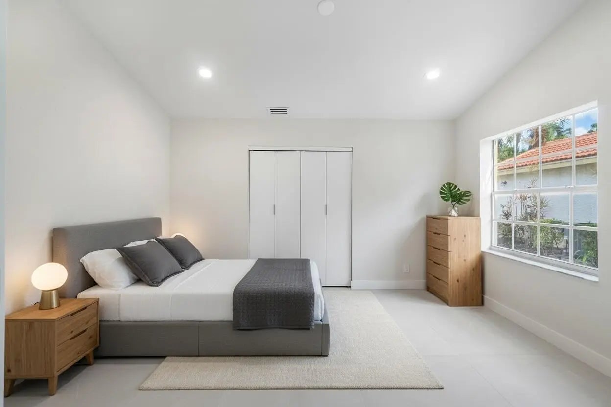 Impeccably renovated and move-in ready, this stunning three-bedroom, two-bathroom home is located in the highly sought-after active 55+ community of Floral Lakes. Every inch of this residence reflects exceptional taste and modern comfort. Step inside to find 36-inch tile flooring throughout, creating a sleek, seamless look. The brand-new kitchen features contemporary cabinetry, quartz countertops, and ample storage—perfect for everyday living and entertaining. Both bathrooms have been fully renovated with fresh, modern finishes, and the custom closets provide thoughtful organization in every room. Major updates offer peace of mind, including a 2021 roof and a 2023 water heater. Beautifully updated and styled with impeccable design, this home offers the ideal blend of luxury and and low-maintenance living in a vibrant, amenity-rich community.