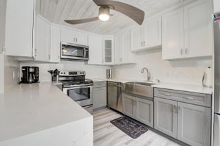 Beautifully furnished 1 Bedroom, 1 1/2 bathrooms, 1st-floor condo with garden views in 55+ community. Renovated kitchen with quartz counters, white & grey shaker cabinets & stainless-steel appliances. Vinyl flooring throughout, tile in baths/patio. Newer fans & light fixtures. AC approx. 4 yrs. old. Patio with laundry area, extra storage, washer & dryer. Condo dues includes cable. No pets, 2 year lease restrictions, 650 credit score/association. No mandatory membership fees, Capital Contribution $2,000. Sold AS IS. Community offers 3 clubhouses, swimming pools, Golf courses, shuffleboard pickleball, bocce ball, cafes, beauty salon & bus service to take you shopping or throughout the community, 25% deposit for conventional loans and condo approval required. Schedule your showing today!