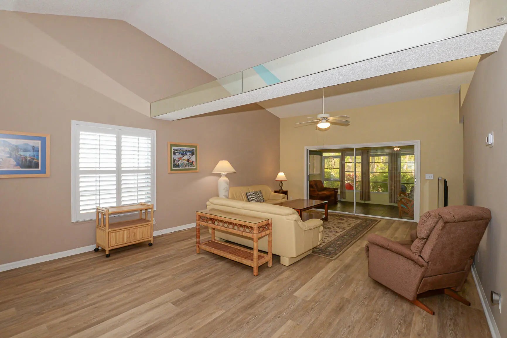 Escape the cold to a carefree lifestyle in this beautifully maintained 2 bedroom 2 bath villa located in the desirable neighborhood, The Garden Villas in Gator Trace Golf and Country Club. Home features a bright open floorplan, newer appliances and tasteful interior updates throughout. Relax on your private patio with peaceful sunrise and golf course views perfect for morning coffee or unwinding after a day on the greens. The primary suite offers generous closet space and an en-suite bath featuring a step-in tiled shower, while the guest bedroom and bath provide comfort for visitors. The community pool, on-site restaurant & bar add the finishing touches. Just minutes from area beaches, waterfront dining, shopping, & entertainment. Experience resort-style living at an affordable price