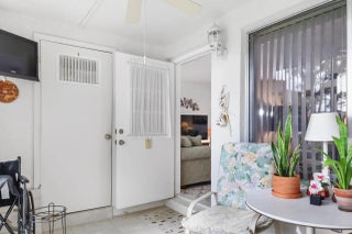 This charming 2-bedroom, 2-bath condo offers comfort, style, and the peaceful lifestyle you're looking for. Located on the first floor, it features a cozy front porch enclosed with both screen and glass, perfect for enjoying the outdoors year-round. The entire home has ceramic tile flooring throughout, including both bedrooms—no carpet anywhere—providing a clean, modern look and easy maintenance. Inside the unit, you'll also find a full-size W&D for everyday convenience. Both bathrooms have been upgraded, adding a fresh and contemporary feel to the home. Additional recent improvements include a new water heater and a new roof, offering peace of mind for years to come. The unit also features hurricane shutters for extra protection during storm season. Well-maintained 55+ community.