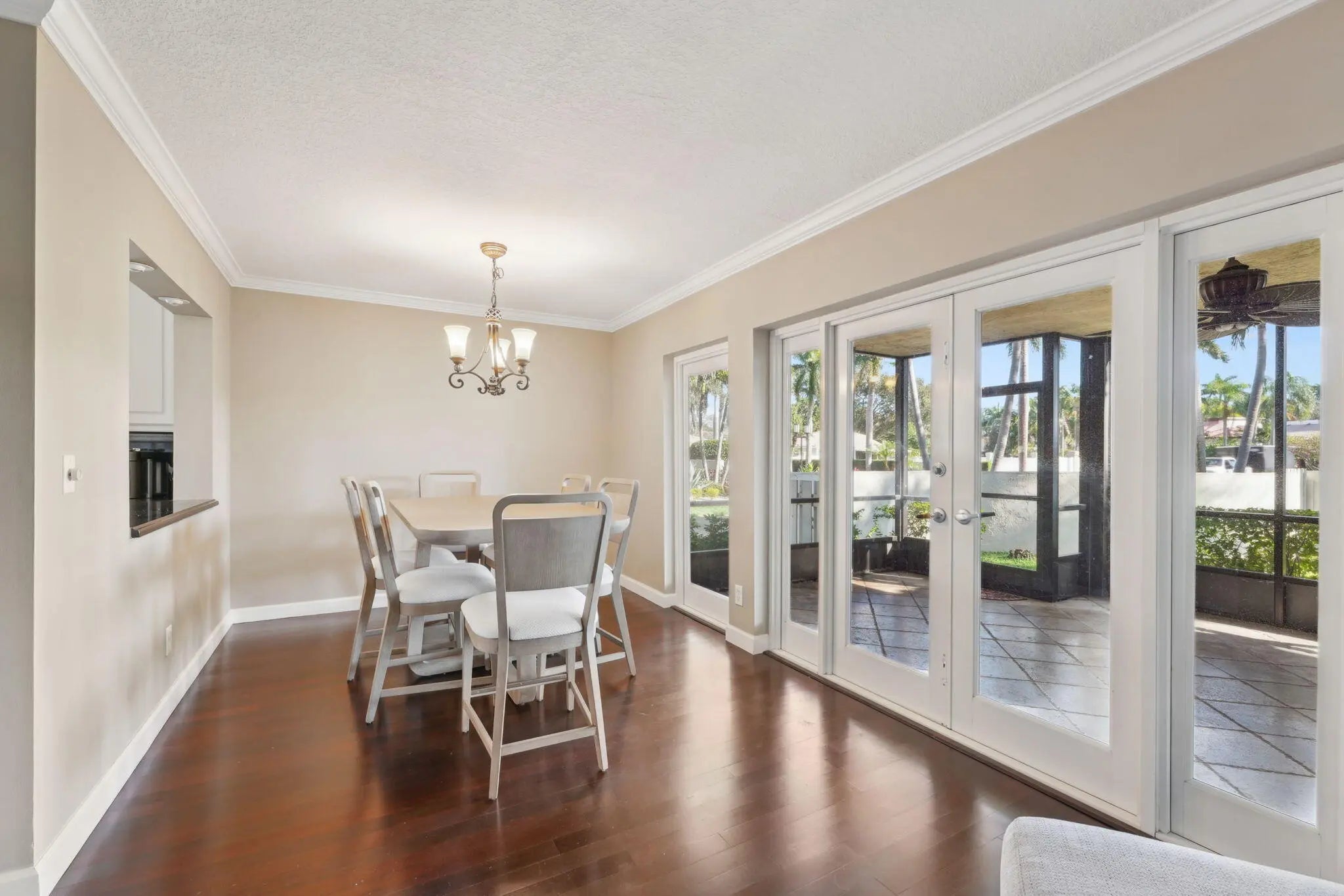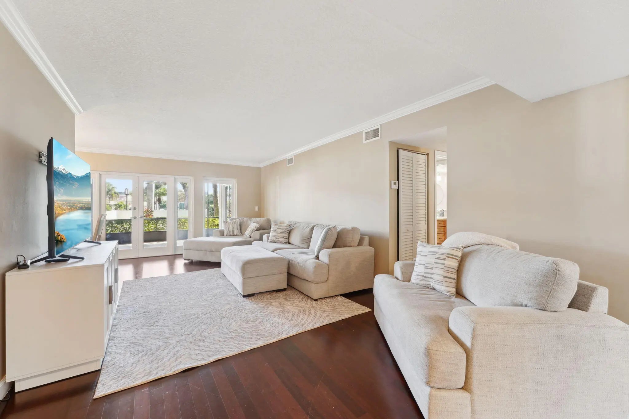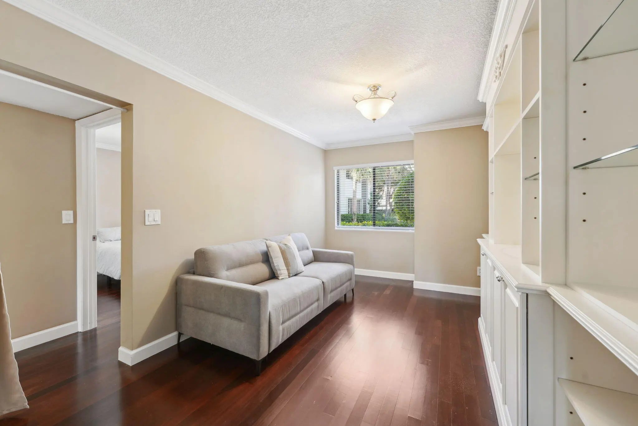 Step into the charm of this spacious ground-floor condo, offering 2 bedrooms plus a versatile den that can easily be transformed into a 3rd bedroom. French doors open to a generous screened-in lanai, perfect for relaxing or entertaining. Inside, you'll find a beautifully updated kitchen featuring classic white cabinetry, sleek black granite countertops, and high-end stainless steel appliances, all complemented by elegant crown molding and an open-concept design. The community offers gated security, pickleball & tennis courts a beautiful community pool. Less then a mile from the beach this inviting condo is a must-see—don't miss the opportunity to call it home.