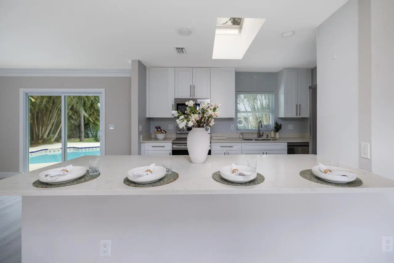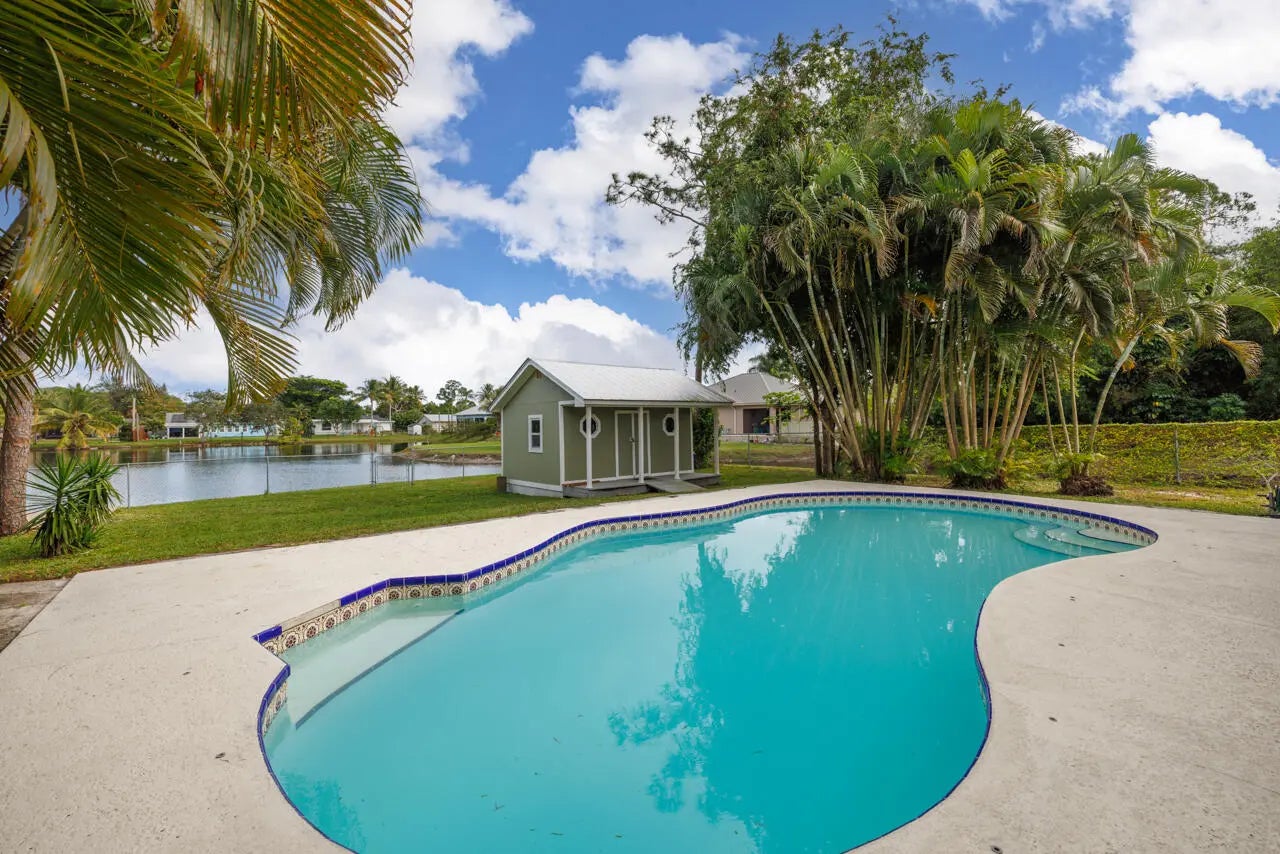 Move-In Ready! Remodeled 3 Bed/2 Bath Pool Home on an Oversized Lot at the end of a cul-de-sac with Spectacular Water Views. This home offers a tranquil oasis with lots of natural sunlight in a non-HOA community. Relax by the pool or on the wood deck overlooking the lake. Metal Roof, Skylights, Hardy Board Planking and Impact Glass Windows were installed in 2021, as well as a new A/C unit. The extra large Shed has power and impact glass. There's plenty of room to back up your boat or RV, so bring your toys! If you enjoy the outdoors, you're only a short drive to beautiful Hobe Sound Beach and Jonathan Dickinson State Park. Come take a look and fall in love!
