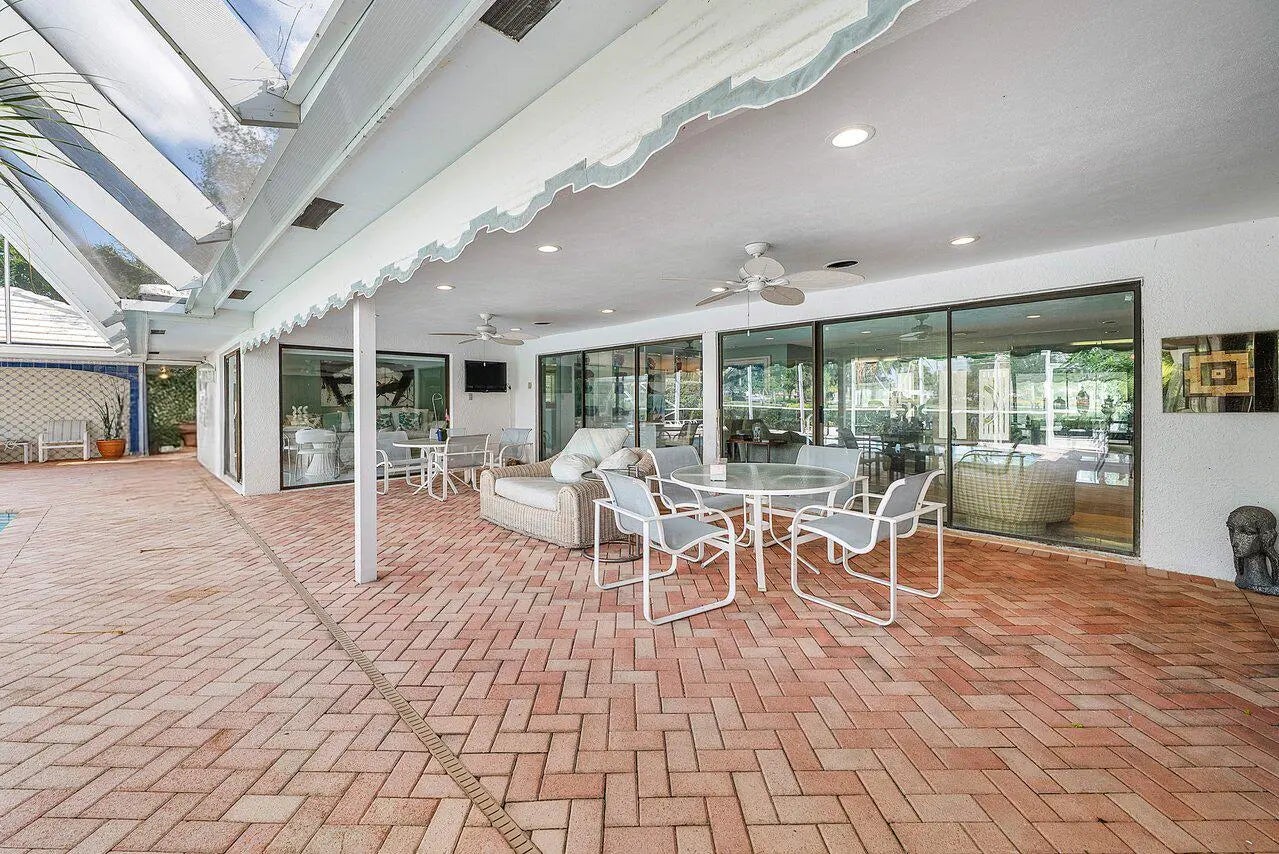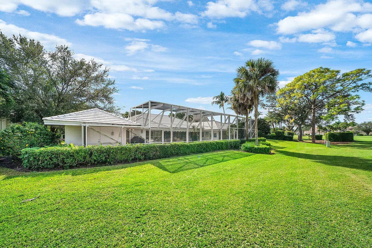 Situated on a quiet cul-de-sac street and just a short walk to the clubhouse, this home offers a wonderful opportunity to enjoy lakefront living with beautiful sunset views and sweeping golf course scenery. Set on over one-third of an acre, the property features a spacious layout with two primary suites, each with generous walk-in closets and en-suite baths. Elegant European marble flooring, coffered ceilings, and custom built-ins add to the home's appeal, while formal living and dining areas provide great space for entertaining. The kitchen includes updated white soft-close cabinetry, offering an ideal base for your own personal enhancements. A large den/office can also serve as a third bedroom to meet your lifestyle needs. Additional highlights include a three-zone HVAC system and an oversized Generac generator, for full peace of mind, a two-and-a-half-car garage, and natural gas available on the street. Outdoors, the screened-in pool and patio overlook the tranquil lake, creating a relaxing setting to enjoy evening breezes and colorful skies. A separate guest cottage adds flexibility for visitors or a private retreat. With its desirable location, impressive lot, and wonderful views, this home presents an excellent opportunity to personalize and create your ideal South Florida residence. Delaire Country Club is not just a residence, but a private boutique country club, where 324 custom homes surround a 27-hole championship golf course that requires no tee time. The clubhouse itself is a work of art, featuring a state-of-the-art 16,000 sq ft fitness center, outstanding culinary cuisine, a resort-style pool area, and 8 Har-Tru tennis courts plus 4 pickleball courts. Enjoy the generous extended family policy that Delaire offers, ensuring that you and your loved ones can fully embrace the country club lifestyle.
