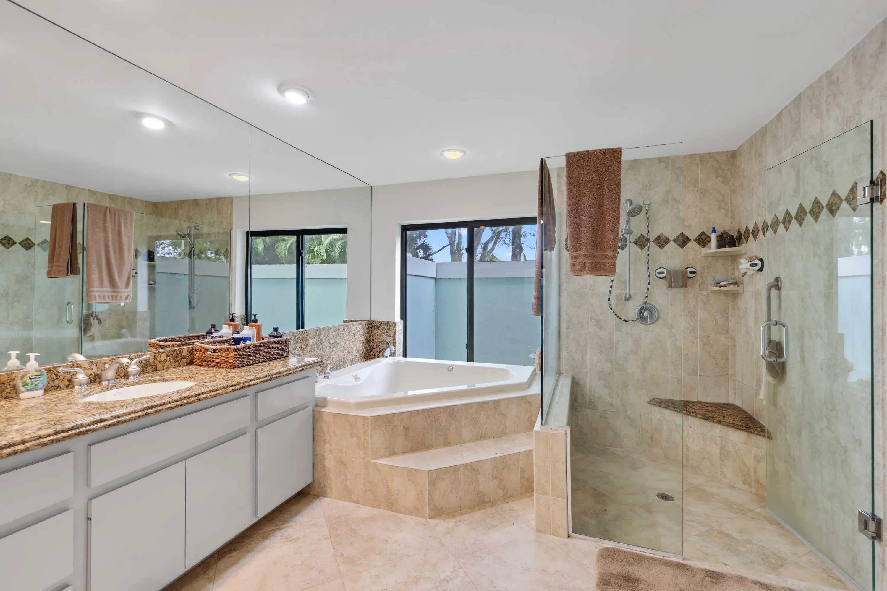 Inviting 3-bedroom, 3-bath CBS home on a spacious .57-acre corner lot in Whispering Trails, offering the layout and room so many want in Jupiter. The split design adds privacy between the large primary suite and guest rooms, and the generous family room features a fireplace that instantly feels like the heart of the home. The kitchen and living areas connect easily with views out to the wide covered patio and screened pool. The extended driveway and four-car garage provide excellent parking and storage. Weekends are simple here with easy access to Jupiter beaches and parks, Riverbend Park, golf, and popular dining. Spend your free time visiting the Jupiter Inlet Lighthouse and local spots such as Guanabanas, U-Tiki, and Harbourside Place. Low HOA fees make this home even more appealing. Whispering Trails is one of Jupiter's most sought-after areas for those who want larger lots, winding streets, and a peaceful setting surrounded by long-standing trees. Its location keeps you close to everything that makes Jupiter special while giving you the room and privacy rarely found so close to town. Outdoor lovers enjoy being only minutes from Riverbend Park, known for biking, hiking, and paddling along the Loxahatchee River. Jupiter's beaches, the lighthouse, and waterfront spots add even more ways to enjoy the area. Dining favorites such as Guanabanas, U-Tiki, Lucky Shuck, Jetty's, and Food Shack are all within a short drive, making nights out simple and fun. This home offers the space, setting, and location that continually make Jupiter one of South Florida's most desired places to call home. There is a newer a/c and water heater too.
