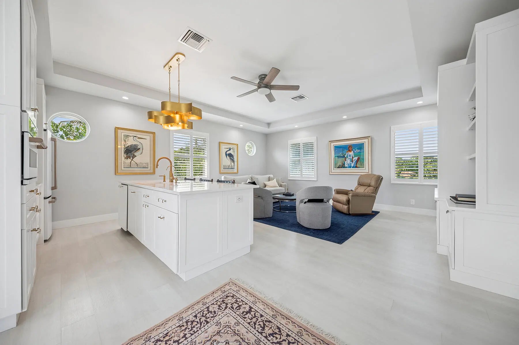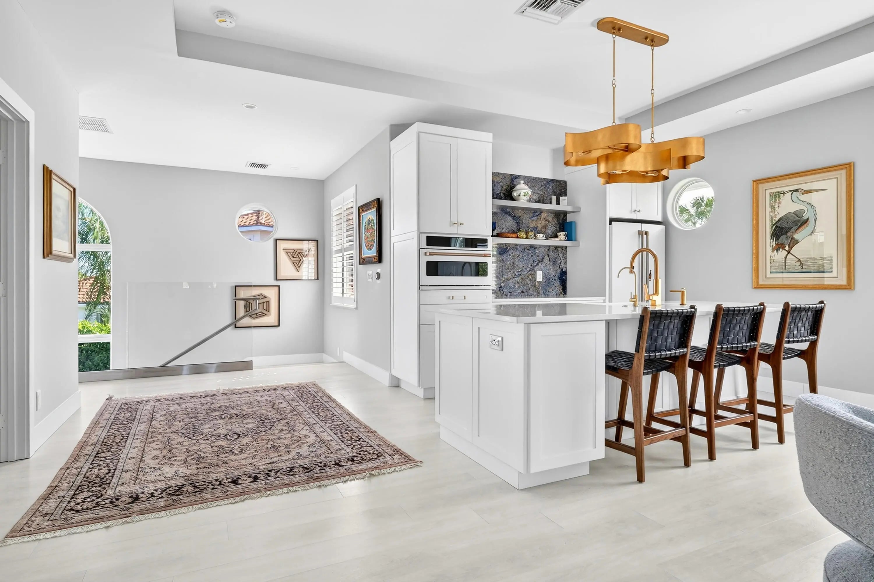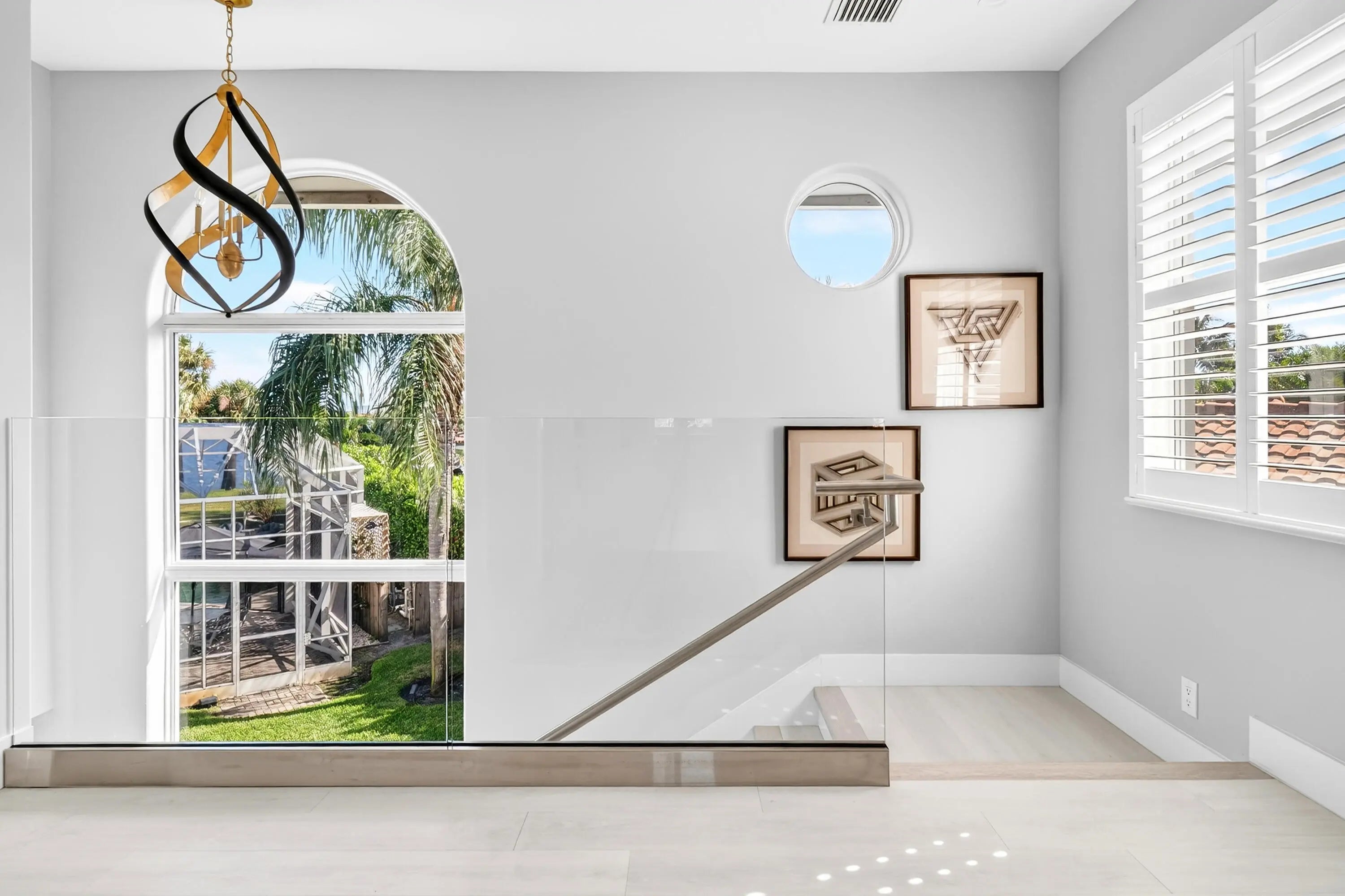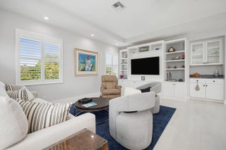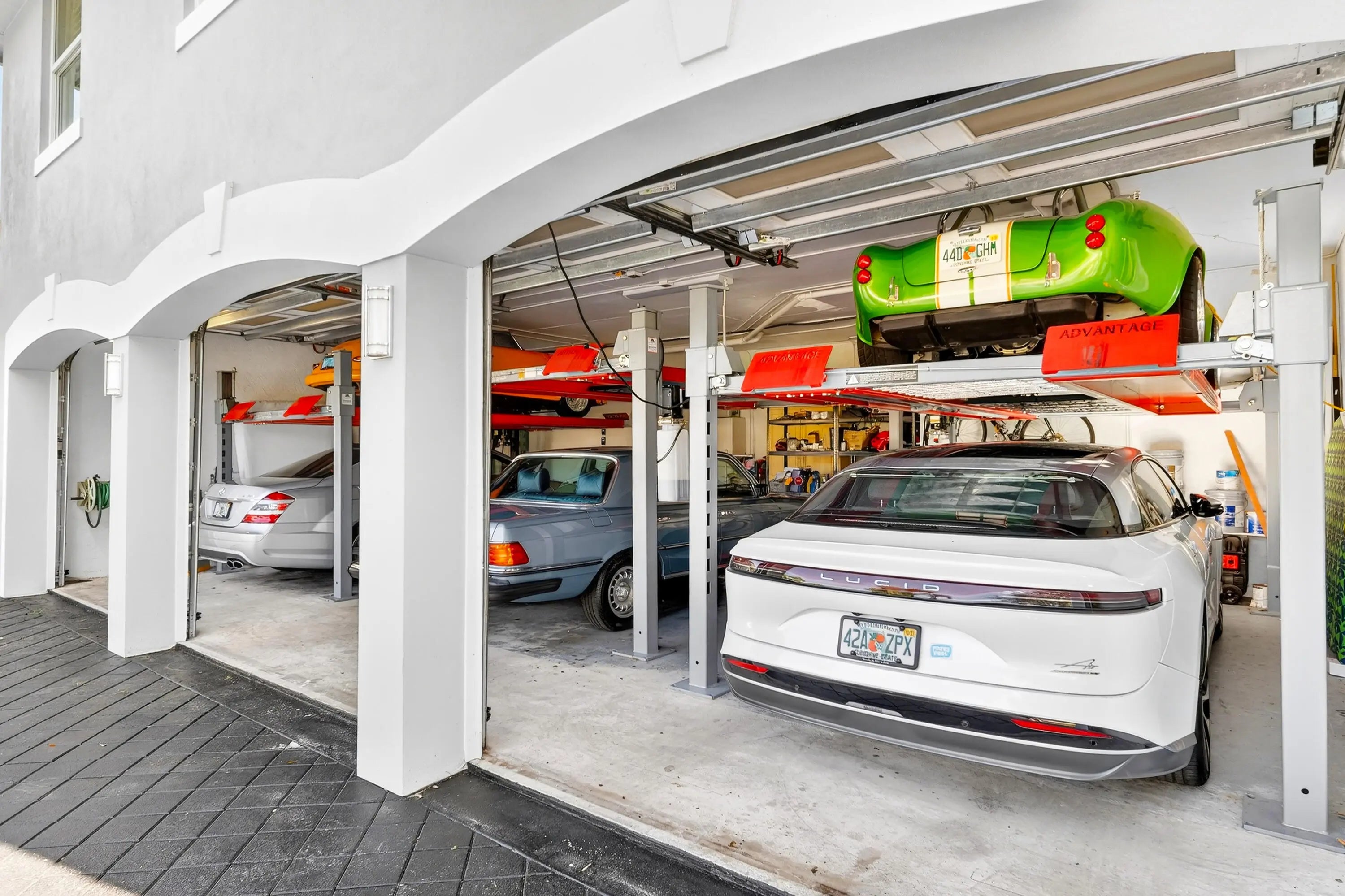 Bring your cherished collectible cars to this spectacular contemporary residence, perfectly tucked away on a peaceful cul-de-sac overlooking the fresh waters of Lake Mangonia. Custom built in 2019 by the current owner, this gracious home offers a versatile canvas designed to complement a wide range of taste and lifestyles. Nestled in the heart of West Palm Beach within the prestigious gated community of Presidential Estates, the property features a luxurious first-floor primary suite with a spa-inspired en-suite bath, a private workout/massage room, and a flexible loft space ready to adapt to your needs. Soaring ceiling and expansive windows bathe the interiors of this home in natural light, creating an open, airy atmosphere. Multiple pocket, sliding glass doors seamlessly connect the living space to the pool and terrace, inviting year-round enjoyment of Florida's indoor-outdoor lifestyle. The spacious backyard framed by endless lake views, sets the stage for unforgettable entertaining, alfresco under the stars, relaxed lounging, and of course, productive work-from-home days. Above the 3-car garage with 3 lifts for 3 additional cars, is a beautifully appointed one-bedroom apartment with a kitchen that provides the perfect retreat for guests/family/au pair. This home is more than a residence - it's a lifestyle, offering elegance, comfort, and endless possibilities in one of West Palm Beach's most desirable communities.