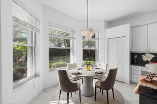 Best opportunity In Valencia Falls! Close to 2100 square feet of gracious living under air. Soaring volume ceilings enhance the bright open feel. Freshly painted interior. 42'' white kitchen cabinets, & new stainless steel dishwasher and oven. AC 2021. The spacious primary suite features two custom walk-in closets, & bath with double vanity, soaking tub, & separate shower. The split floor plan provides a private space for the second bedroom for guests along with a full bath. Third bedroom currently utilized as office. Step outside to the screened lanai, & enjoy the peaceful garden views. Enjoy vacation style living with a stunning newly renovated clubhouse, resort style pool, pickleball, tennis, cafe, fitness center, card & game rooms, entertainment, clubs & so much more!
