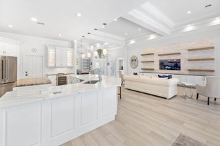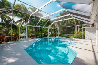 Imagine yourself in this ABSOLUTELY EXQUISITE, exclusive, fully renovated, designer-finished 4-bedroom, 3-bathroom, 3-car garage home. No stone was left unturned. There is $500,000 in renovations completed in 2021-2025. This stunning home is equipped with a boat dock and 16,000 lb lift (up to a 40' boat), within minutes of the river and access to the ocean. Unparalleled quality and attention to detail make this home extremely unique - from volume coffered ceilings topped with elegant crown moldings, LED recessed lighting, a stone-accent wall in the living room, and solid pearl-tile walls in the kitchen, to gorgeous flooring, whole-house generator, two 2021 AC units, 2019 roof, and all impact windows and doors. It is located in an A-rated elementary and middle school zone. The open-concept gourmet kitchen is perfect for entertaining. It is equipped with top-of-the-line stainless steel appliances, including a Viking gas stove with vent, convenient pot filler, beverage cooler, stunning quartz countertops over an oversized island, plenty of fabulous custom cabinetry finished with moldings, soft-close drawers, hidden USB outlets and a pantry closet. The primary suite offers access to the pool and an amazing custom-built walk-in closet with hidden access from the living area (a truly unique feature!). The entire footprint of the master suite wing has been redesigned, now featuring a beautiful flow connecting the bedroom to the primary bathroom equipped with split sinks, shower, and closet. One of the guest bedrooms includes a convenient built-in Murphy bed for your guests, and another offers a cabana bathroom. The laundry room has been completed with a full-size washer and dryer, added cabinets, and a utility sink. Enjoy a serene oasis on the covered patio and a picturesque, screened-in, heated saltwater pool by your private boat dock, surrounded by a stunningly landscaped yard. The community is conveniently located close to shopping, restaurants, and the beach. All measurements are approximate. Take a look at the 3D virtual walkthrough.