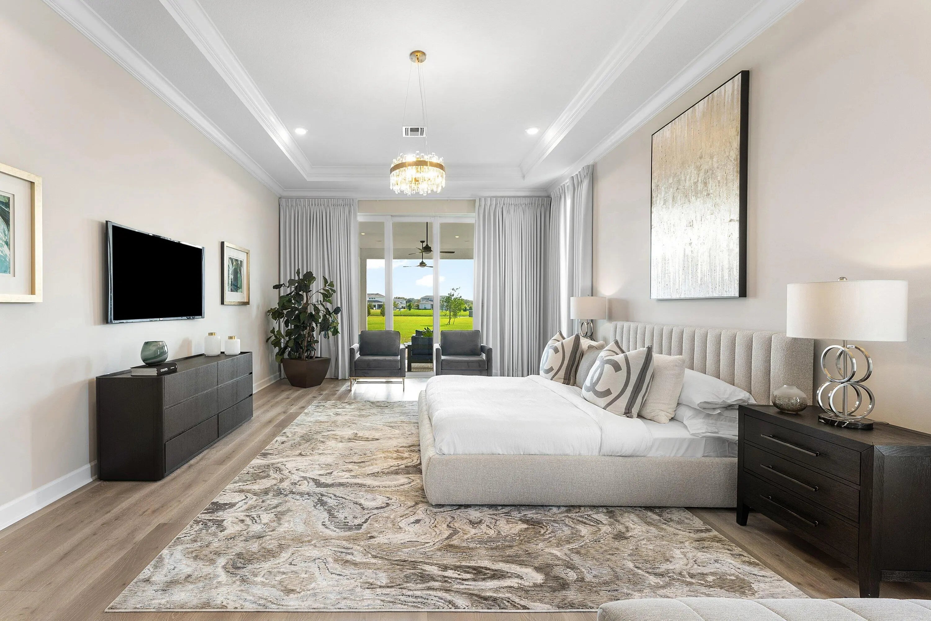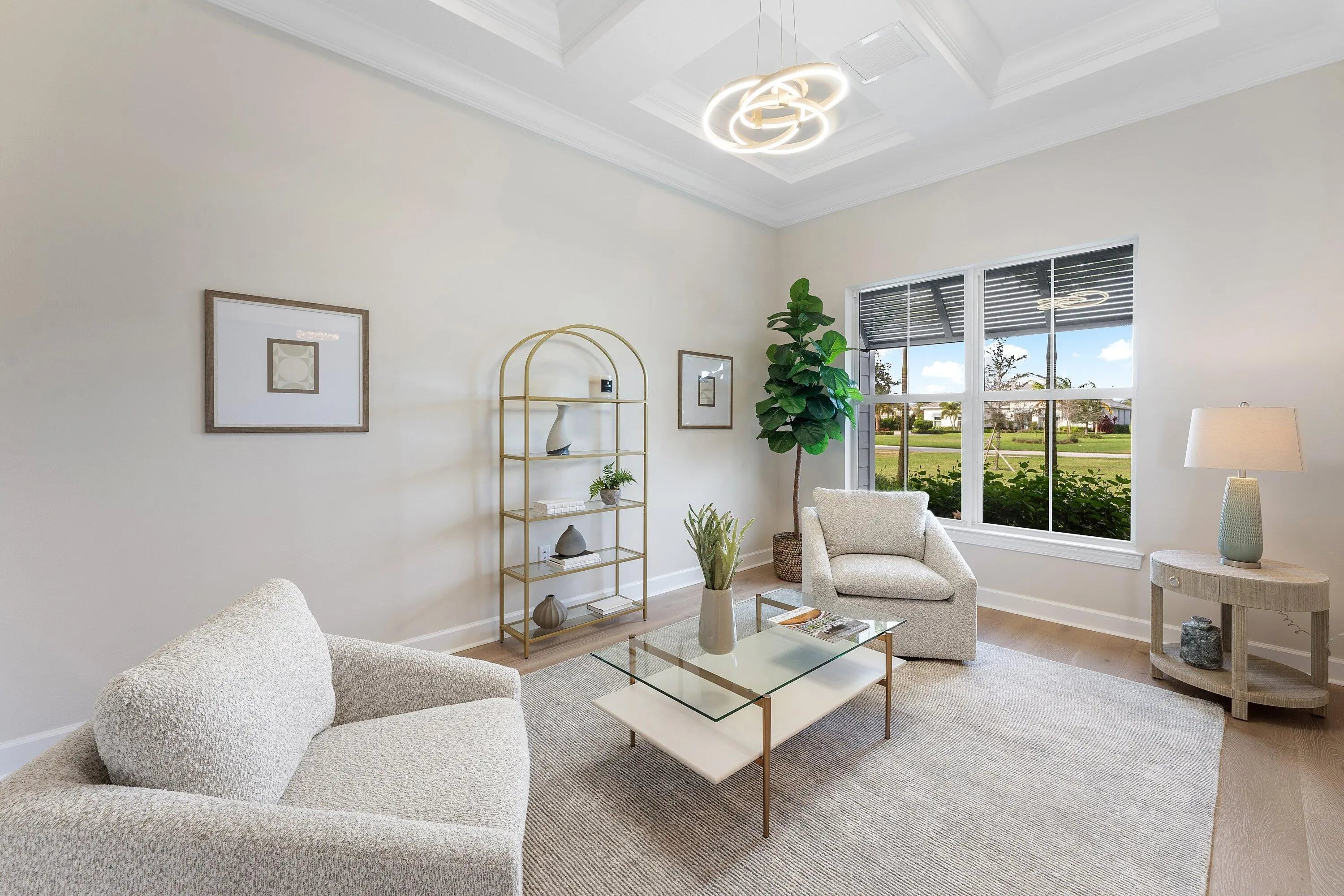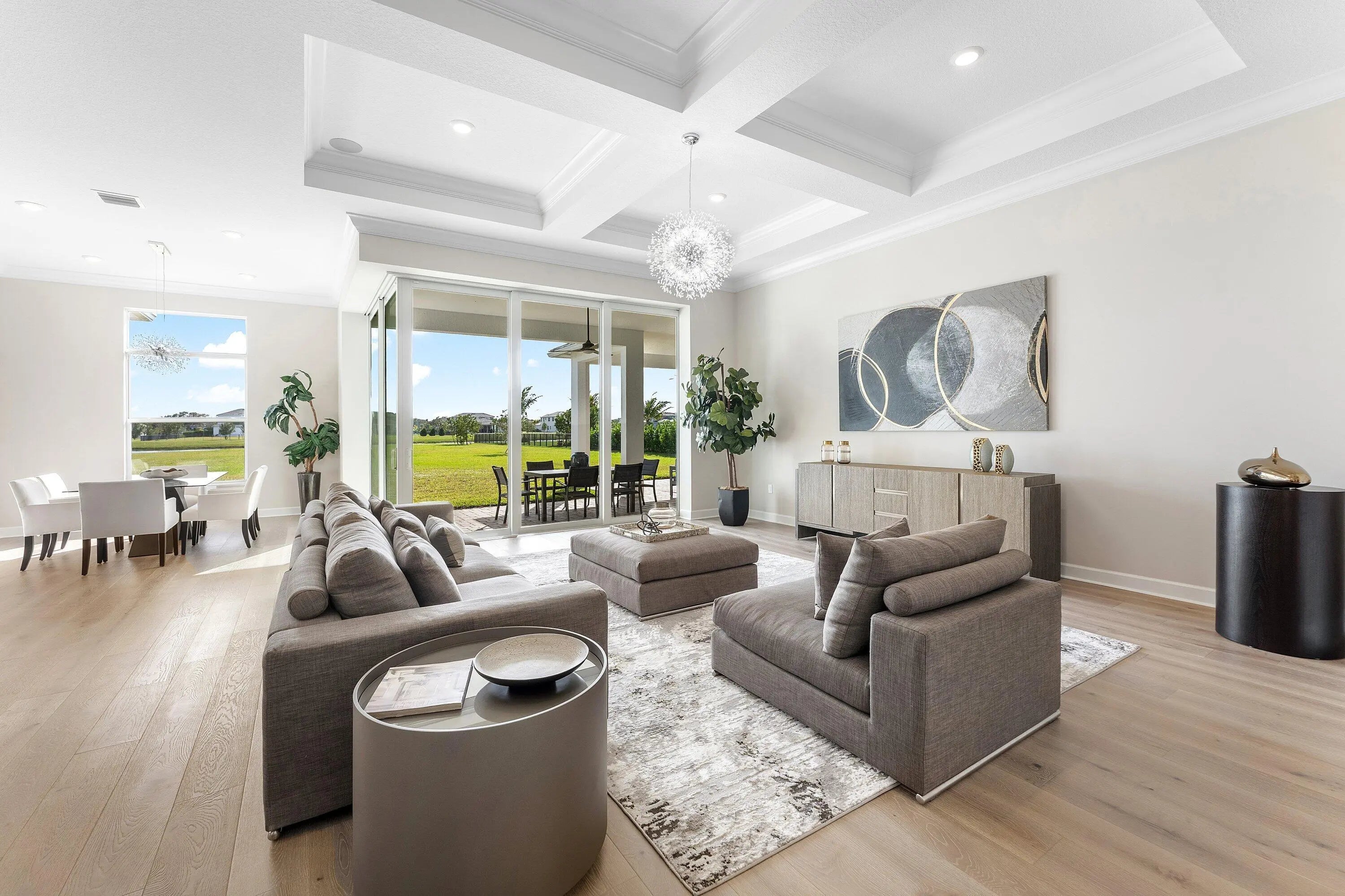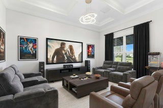 Single story Oakley home with lake views on a just shy 1 acre homesite in an exclusive, high end community. This brand new residence has never been lived in and offers a desirable open concept layout, perfect for both everyday living and entertaining. The home has been professionally staged is offered furnished as seen. A dramatic zero corner sliding door set opens all the way to allow full indoor outdoor living and floods the home with natural light. Beautiful engineered hardwood and tile floors run throughout, complemented by contemporary, high end light fixtures for a sleek, modern feel. The gourmet kitchen is a true showpiece, featuring: " KitchenAid gas cooktop " Three ovens ideal for large family gatherings and entertaining " Soft close drawers and cabinetry " Large walk in pantry With 4 bedrooms, and a flex room that can function as a 5th bedroom, an office, a study, media room, or playroom and 3 baths, the floor plan is both functional and versatile. Bedrooms 2 and 3 share a convenient Jack and Jill bathroom, while a separate cabana bath provides direct access to the outdoor areaperfect for a future pool. An extended covered patio, pre wired and plumbed for an outdoor kitchen, enhances the outdoor living experience, offering a generous space for lounging, dining, and entertaining. The expansive just shy of 1 acre lot provides incredible potential to expand your private oasis with a guest house, resort style pool and spa, outdoor kitchen, or even a tennis/pickleball court. Prime location just 5 miles from the beach, surrounded by world class golf, boating, fishing, shopping, and scenic hiking and biking trails. Enjoy easy access to major highways and only about 25 minutes to Palm Beach International Airport (PBIA). A rare opportunity to own a new, never lived in luxury home with room to grow and customize to make this your forever dream home.