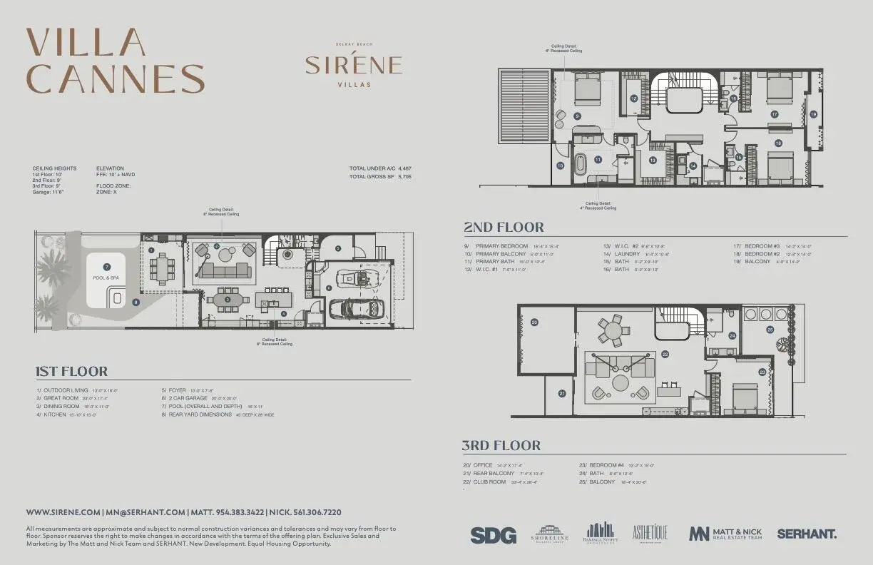 Introducing Sirene Villas - A Masterpiece of Ultra-Luxury Living in the Heart of Delray Beach Perfectly positioned just one block from the beach and moments from the vibrant energy of Atlantic Avenue, Sirene Villas offers an unparalleled opportunity to experience the best of coastal luxury living. This exclusive collection of six ultra-luxury residences is the latest creation by Stamm Development Group, designed in collaboration with world-renowned interior designers Alina Pimkina & Julien Albertini, founders of Asthetique, and Delray Beach's esteemed Randall Stofft Architects. This inspiration is evident in every detail of Villa Cannes, an architectural masterpiece spanning 5,705 square feet. Offering 4 bedrooms, 4.1 bathrooms, and a design that seamlessly integrates elegant with functionality, this residence embodies luxury at its finest. Step inside to discover a meticulously curated interior featuring wide plank white oak hardwood flooring, exuding warmth and sophistication. The kitchen is a culinary showpiece, showcasing oversized custom oak cabinetry, seamless quartzite slabs, and weathered brushed brass hardware, creating an ambiance of refined opulence. The primary suite is a retreat of serenity, adorned with Ocean Blue Basalt slabs, light wood tones, and brushed finishes, while all bedrooms boast en-suite bathrooms and walk-in closets for ultimate privacy and convenience. Elevate your lifestyle with a third-floor gym/club room, dual terraces offering breathtaking views, and a private outdoor oasis featuring a full-size pool, overflowing spa, and a spacious covered patio. The state-of-the-art wood louver system allows for the perfect interplay of sunlight and shade, creating an idyllic space for relaxation and entertaining. Designed by Nielsen Landscape Architects, the lush surroundings enhance the premier southern exposure, transforming your backyard into a sanctuary of natural beauty. More than just a home, Villa Cannes is a statement of unparalleled luxuryan exclusive opportunity to embrace resort-style living in one of Delray Beach's most coveted locations. Seize this rare chance to own a piece of paradise, where timeless elegance meets modern indulgencejust one block from the beach and steps from world-class dining, shopping, and entertainment.