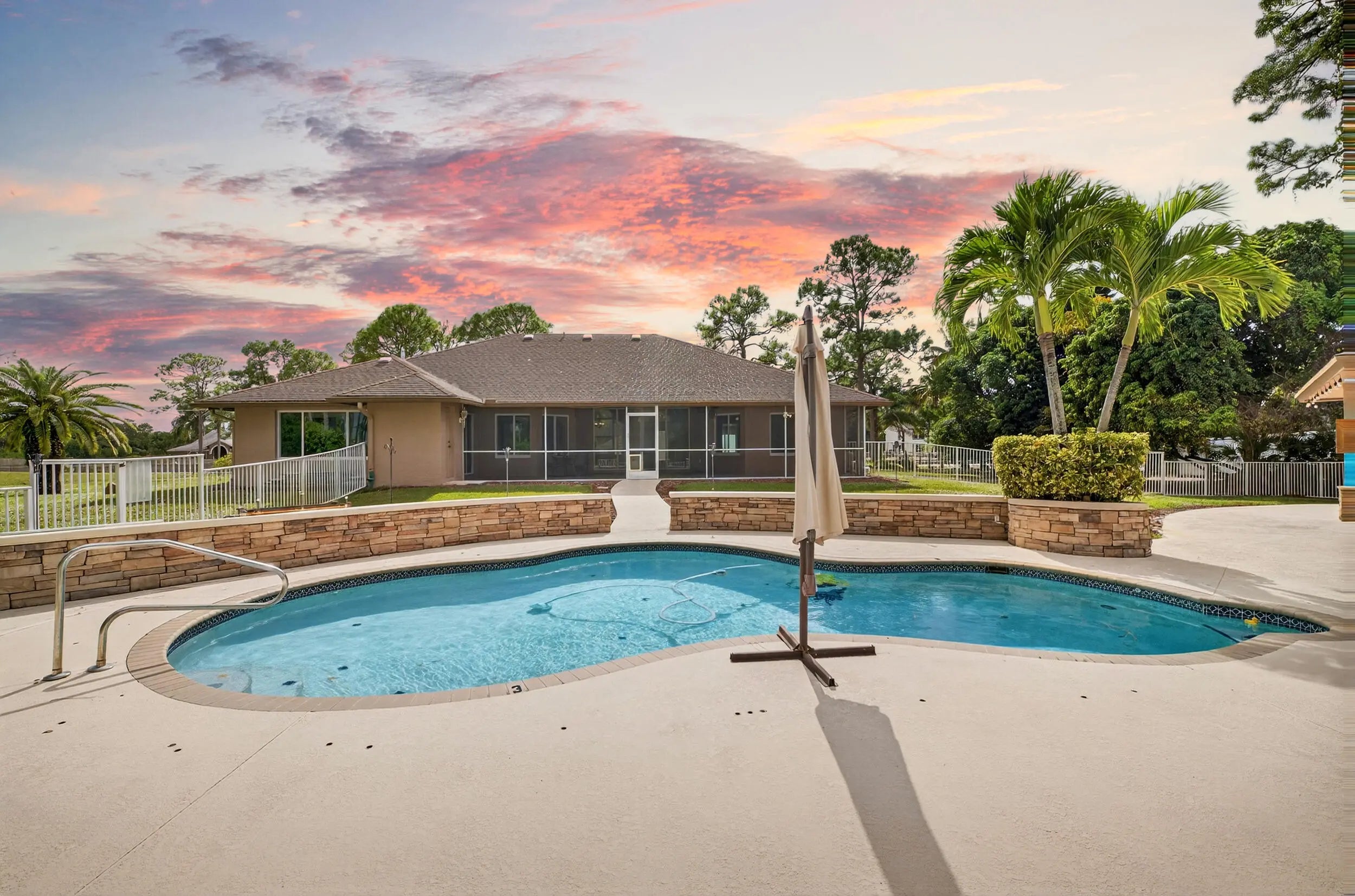 This impressive Majestic Homes White House model sits on over one acre of high, dry land in the sought-after Acreage community, where horses and outdoor living are welcome. The home features a rare, fully independent in-law suite with a private entrance and optional interior access—ideal for multigenerational living or guests. Enjoy a resort-style pool, expansive patio, outdoor kitchen, and convenient cabana bath, perfect for entertaining. Located just minutes from Northlake Blvd, this property offers the privacy of rural living with easy access to shopping, schools, and major conveniences.