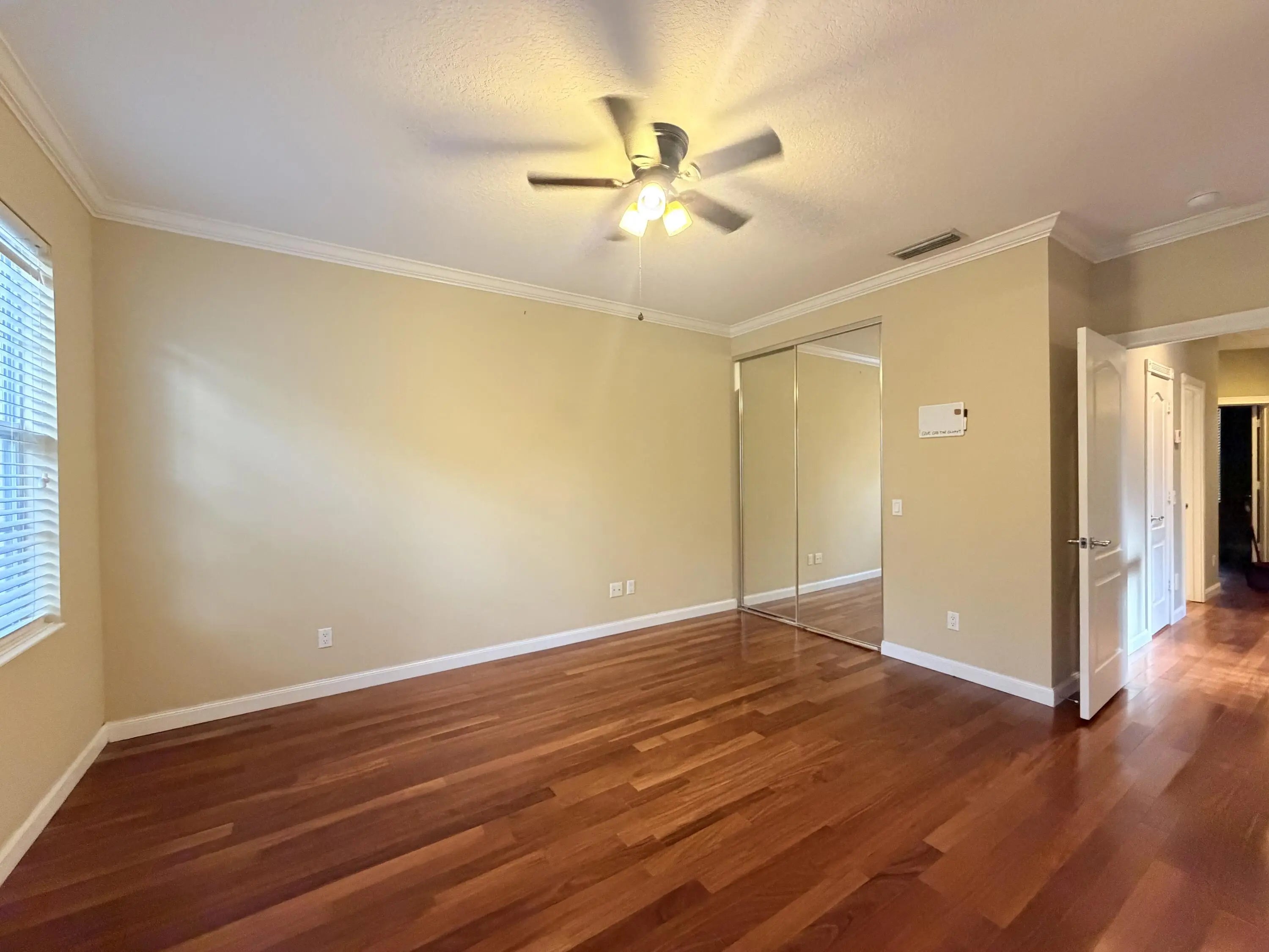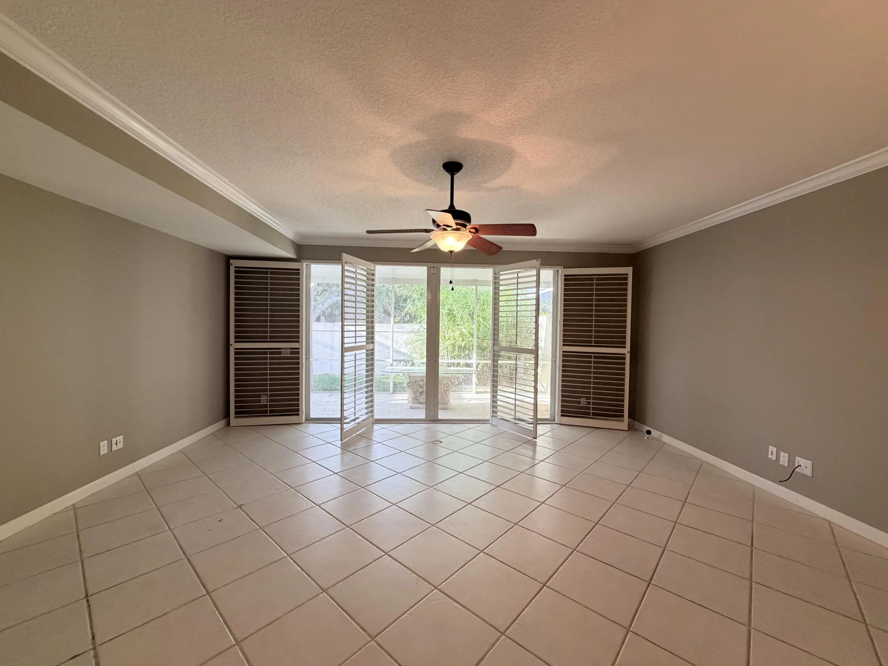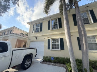 Beautifully maintained townhouse located in the highly sought-after community of Riverwalk. This spacious 3-bedroom, 2.5-bath home features a one-car garage plus two additional driveway spaces. The first floor offers tile flooring throughout, a laundry room with a basin sink, and a half bathroom. Large sliding doors open to a screened patio overlooking a generous backyard where pools are permitted. The kitchen is pristine with barstool seating, seamlessly flowing into an expansive living area perfect for entertaining or relaxing. Upstairs features real wood flooring, a large primary suite with a walk-in closet, double vanity, separate shower, and soaking tub. Two additional bedrooms and a full bathroom complete the second floor. Accordion shutters provide full storm protection, & cable internet, and lawn care are included. And only first month and security deposit is due before moving in! Riverwalk is a manned gated community offering resort-style amenities including a clubhouse with a café, swimming pools, tennis, pickleball, bocce ball, playgrounds, scenic lakes, and walking paths. Conveniently located between the Turnpike and I-95, and just a short drive to beautiful beaches and PBI Airport. Central A/C, ceiling fans in every bedroom, and pet friendly.