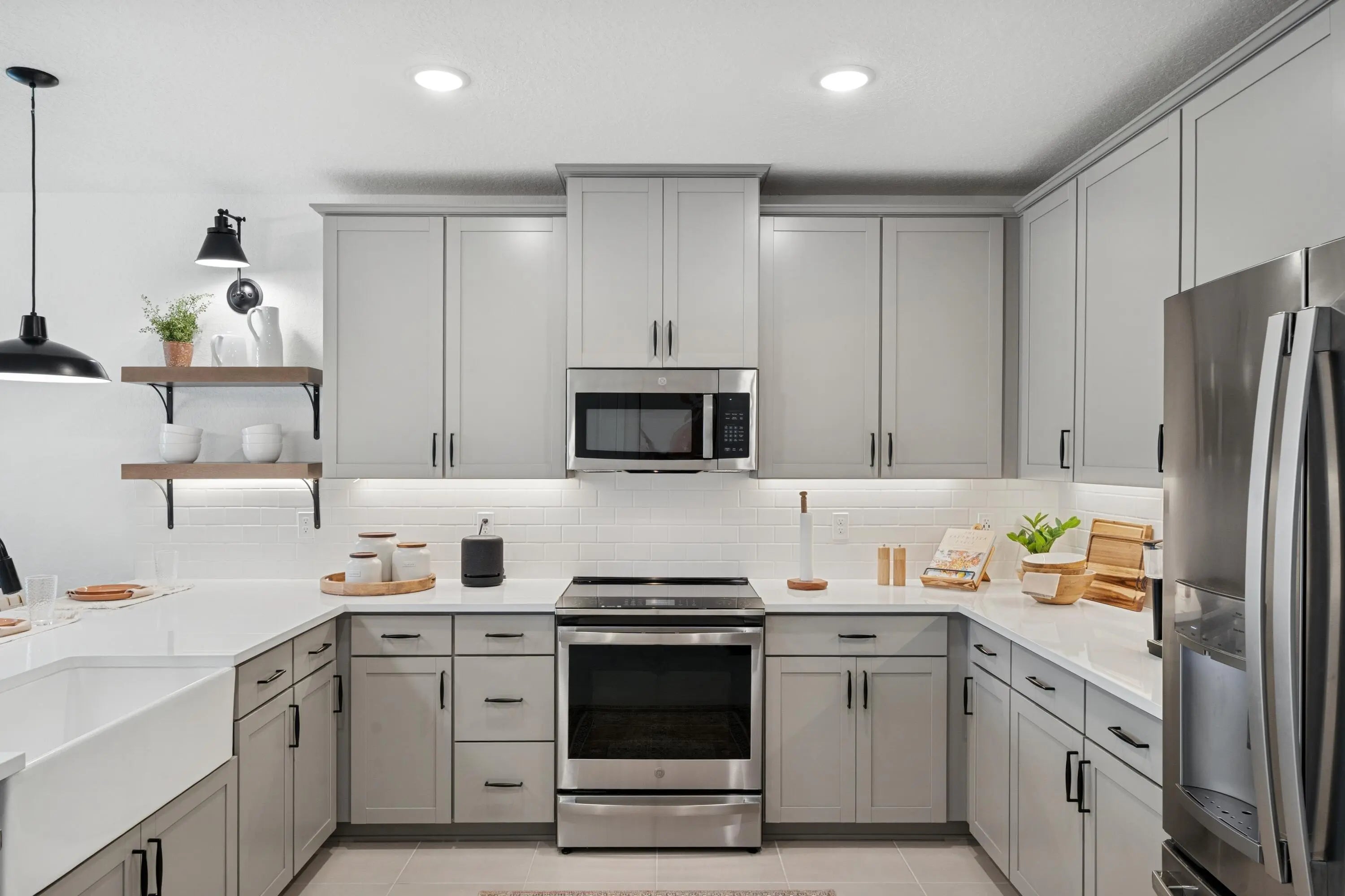 The Finlay II plan is a beautiful plan with 4BR, 2 BA, 2 Car garage. This well-designed home showcases a spacious peninsula-style kitchen with Ash Gray 42'' upper cabinets, Arctic White Quartz countertops, and GE stainless steel appliances. The open floorplan extends into a bright, airy great room with expansive windows, while the dining area connects seamlessly to the covered patio. Backing to tranquil wooded preserves, the homesite offers exceptional privacy—perfect for relaxed living and indoor-outdoor entertaining. The elegant primary suite features a spa-inspired bath with dual vanities and a generous walk-in closet. Three additional bedrooms offer ample space for family, guests, or a home office. Added conveniences include irrigation with St. Augustine grass, a washer and dryer whole-home gutters, and a two-car garage with opener. Aspire at Morningside is a vibrant community, boasting a state-of-the-art fitness center, sparkling outdoor pool, basketball court, and kid's tot lot. Ideally situated between downtown Fort Pierce and Tradition in Port St. Lucie, you're minutes from premier shopping, dining, entertainment, and renowned golf courses such as Fairwinds and Indian Hills. Whether you're enjoying a peaceful sunset stroll or connecting with neighbors at the clubhouse, this community offers an exceptional lifestyle. Don't miss your opportunity to own this one-of-a-kind home. The Finlay II blends luxury, livability, and thoughtful design into one beautifully crafted package.