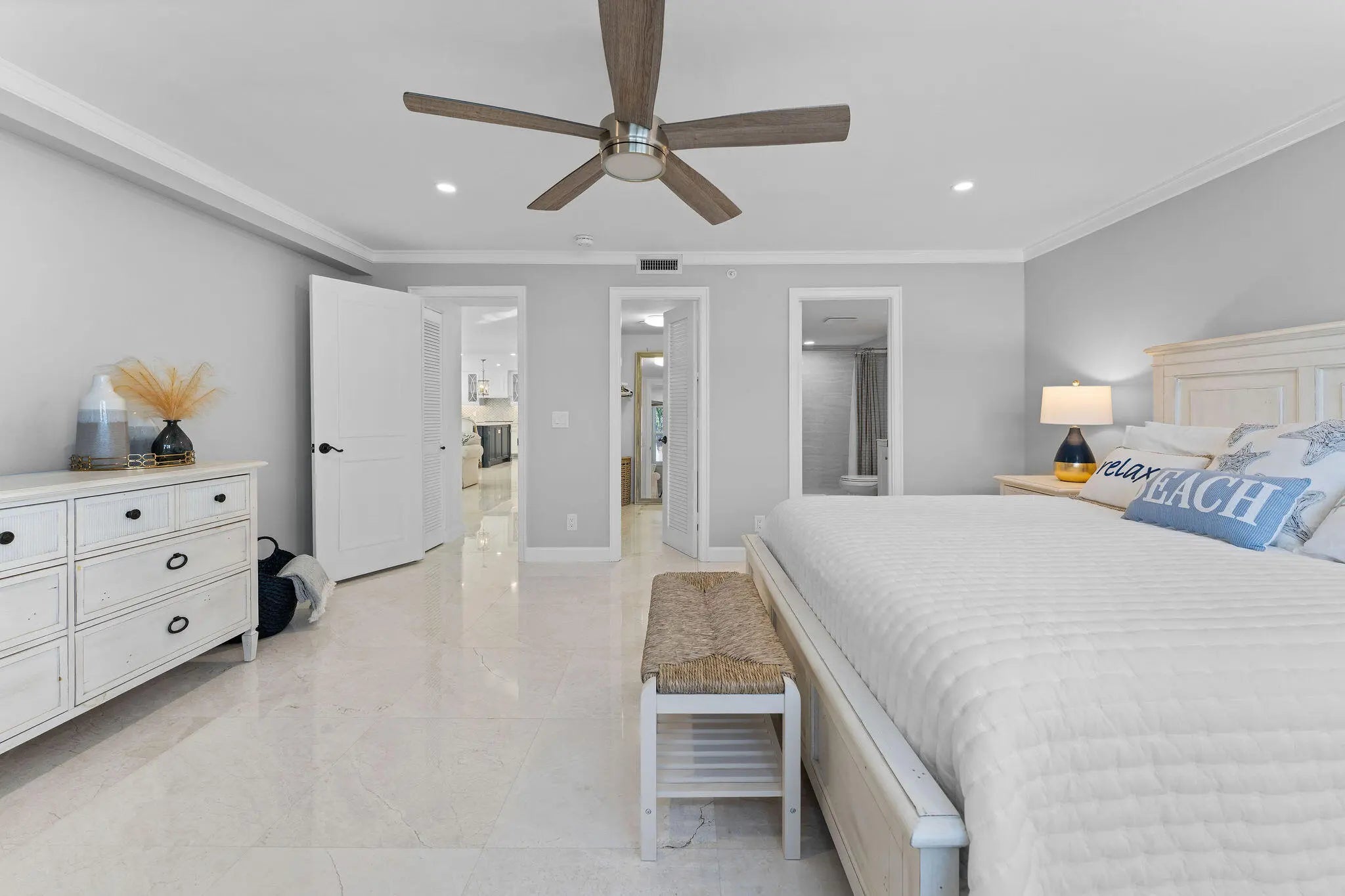 Beautifully upgraded oceanfront residence in the private gated community of Brigadoon in Juno Beach. Crisp, clean, & meticulously maintained, this turnkey condo is move-in ready. Wake up to unobstructed ocean views, sip your coffee as sea breezes roll in, & enjoy the soothing rhythm of the Atlantic.Interior features elegant marble floors thru out, enhancing the light, open feel & reflecting the beauty of the coastline. The spacious chef's kitchen is designed for everyday living & entertaining, showcasing quartz countertops, top-tier appliances, & thoughtful finishes.Open, light-filled living spaces frame panoramic ocean views, creating a seamless connection between refined interiors & coastal living. Located just steps from the sand & minutes from Juno Beach's best dining & shopping.